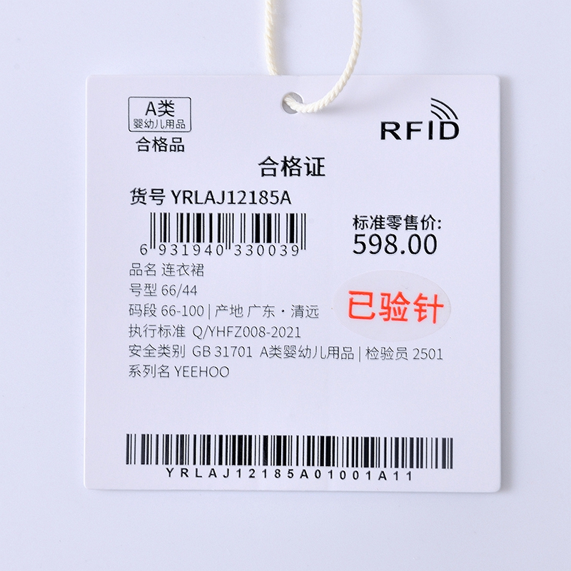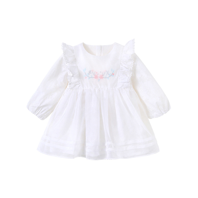 英氏-童衣类(春)F2英梭长袖连衣裙英氏白100CM