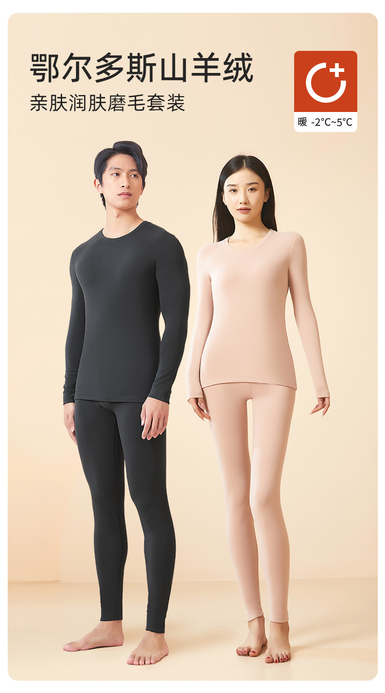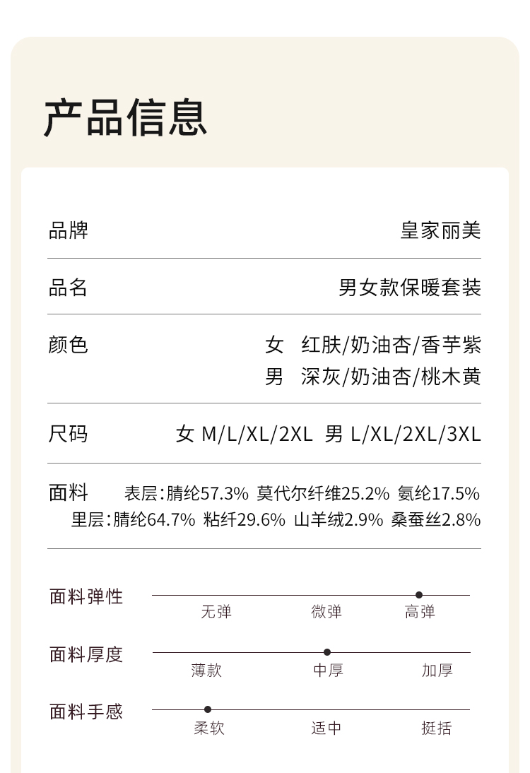 皇家丽美秋冬保暖内衣男女打底内衣套装鄂尔多斯山羊绒桑蚕丝300g保暖套装BNN8F03BNM8F04