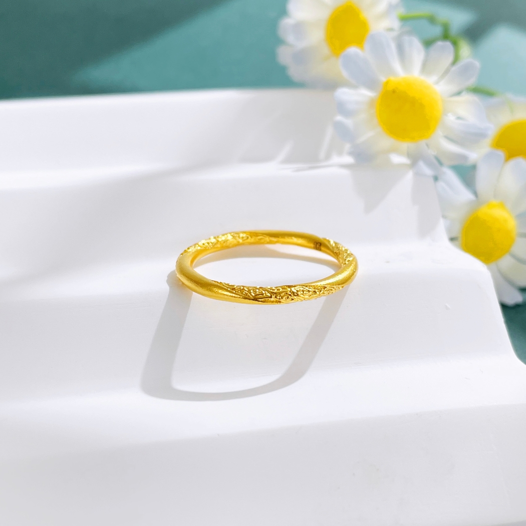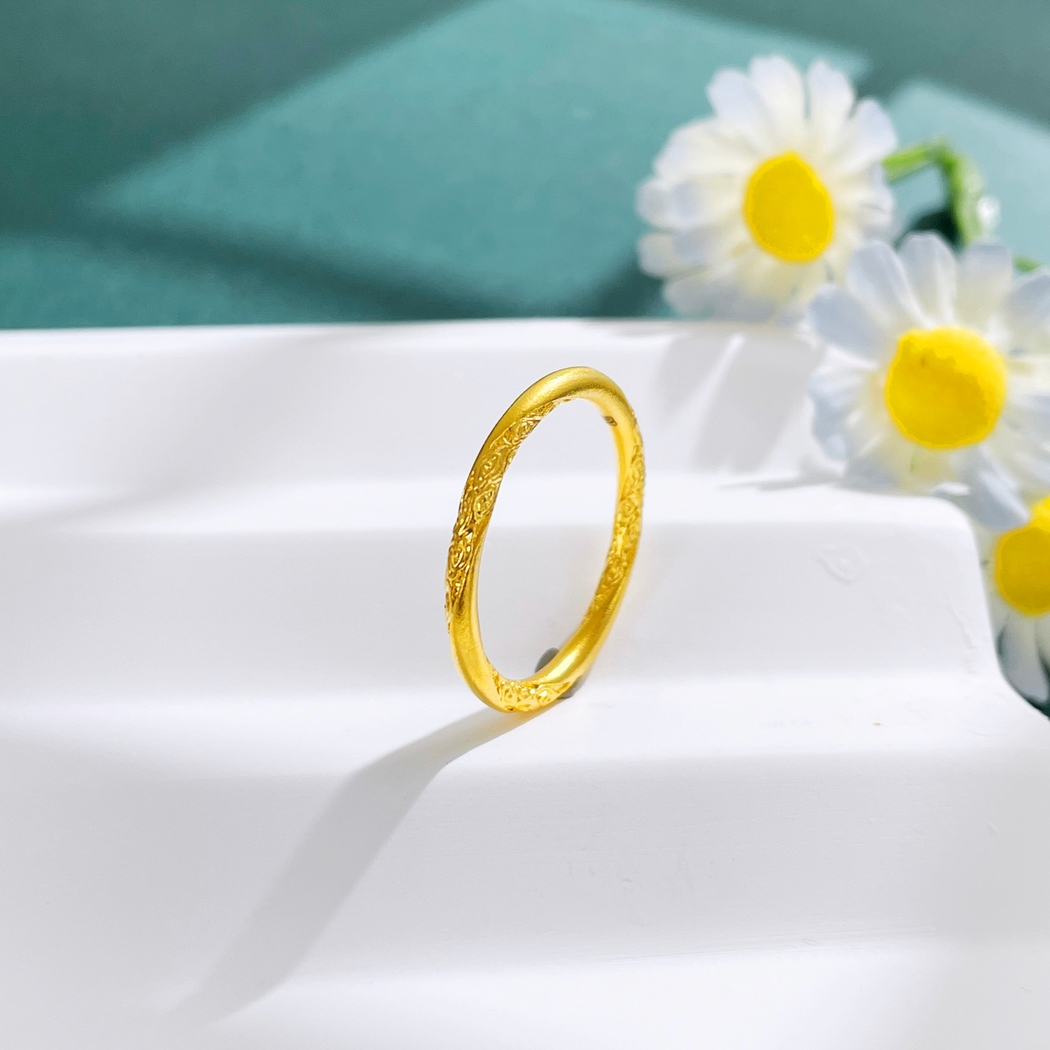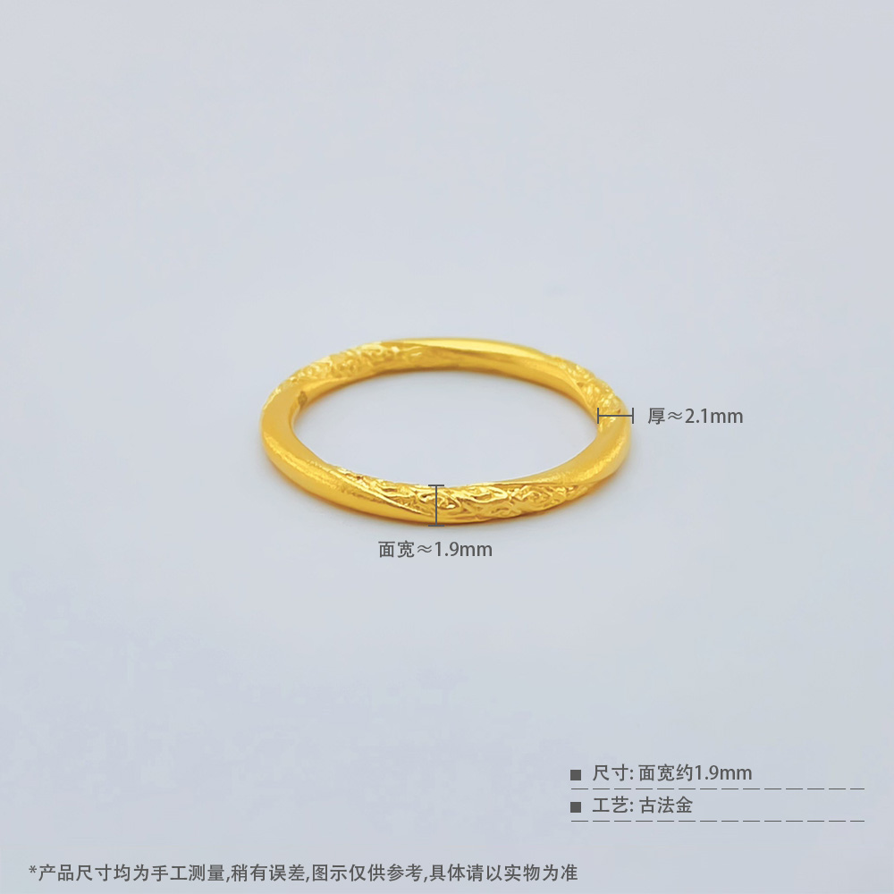 【限时克减150元】足金999.9 #招财纳福 #祈福 古法实心固口吉祥平安祥云纹圈戒(面宽约1.7-2.1mm)(AIGFJZ00282)预售产品下单后不退款不退货不换货不补差价