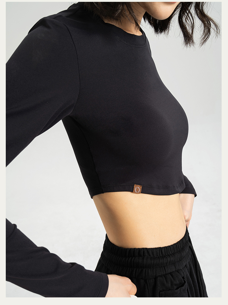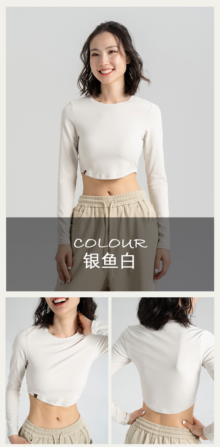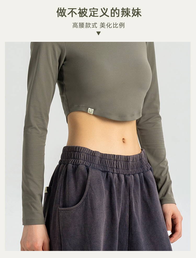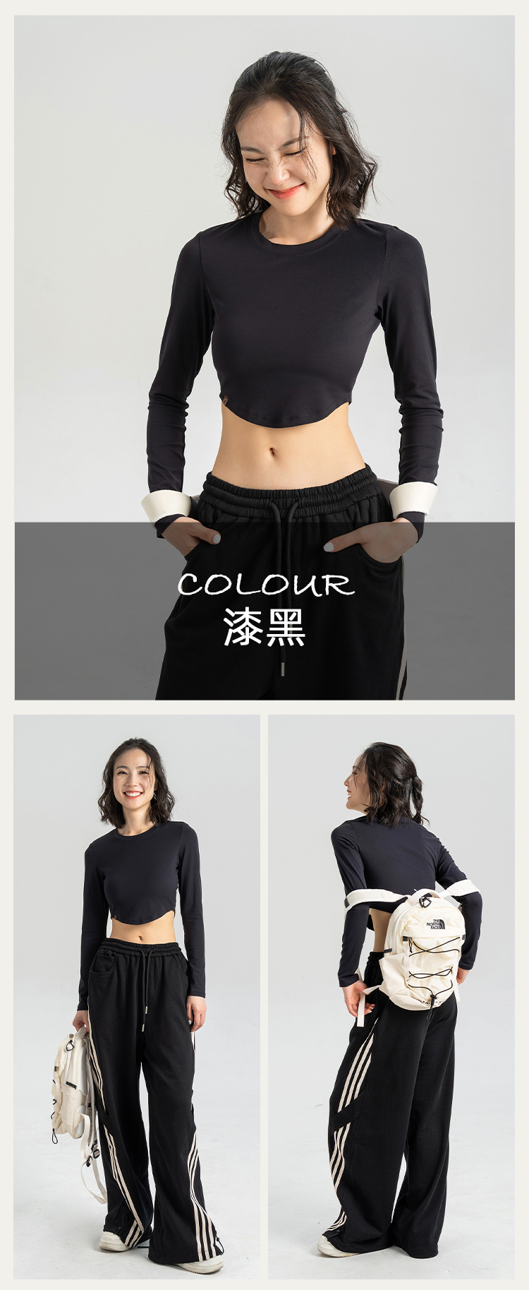 【高弹裸感抗起球】圆领辣妹长袖打底衫 高腰弧形下摆健身瑜伽T恤 显腹肌 马甲线 超显瘦