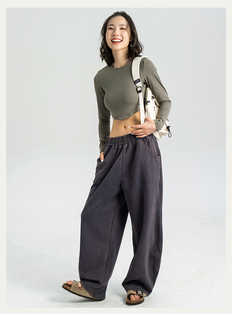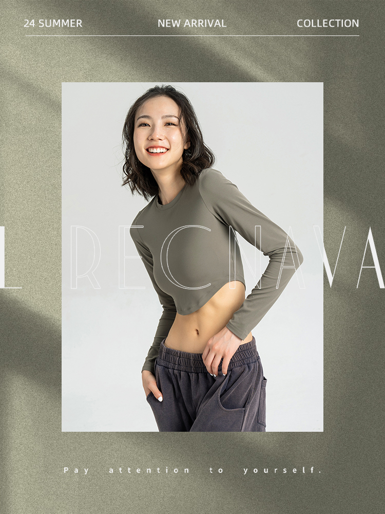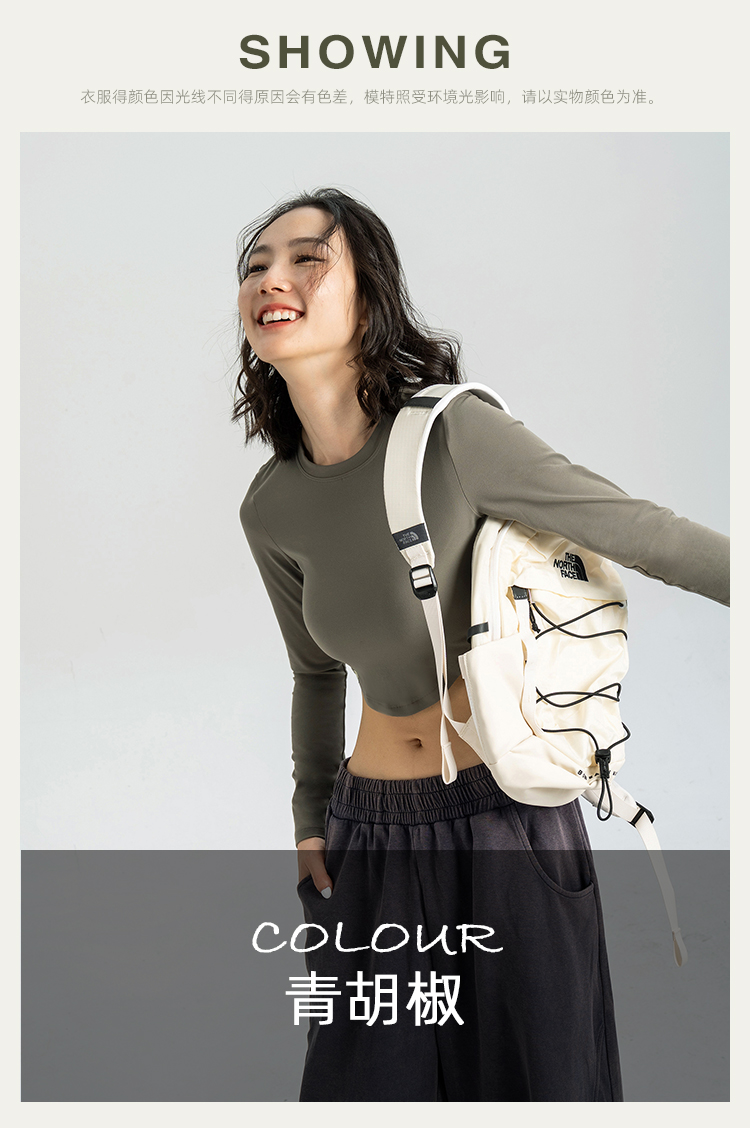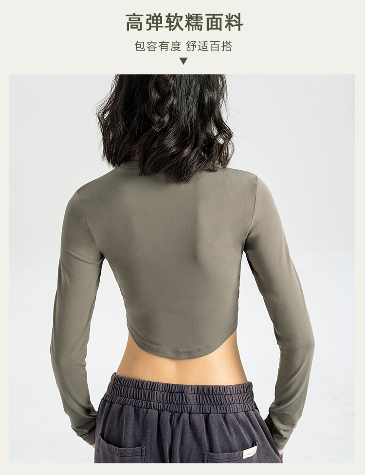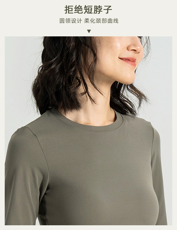 【高弹裸感抗起球】圆领辣妹长袖打底衫 高腰弧形下摆健身瑜伽T恤 显腹肌 马甲线 超显瘦