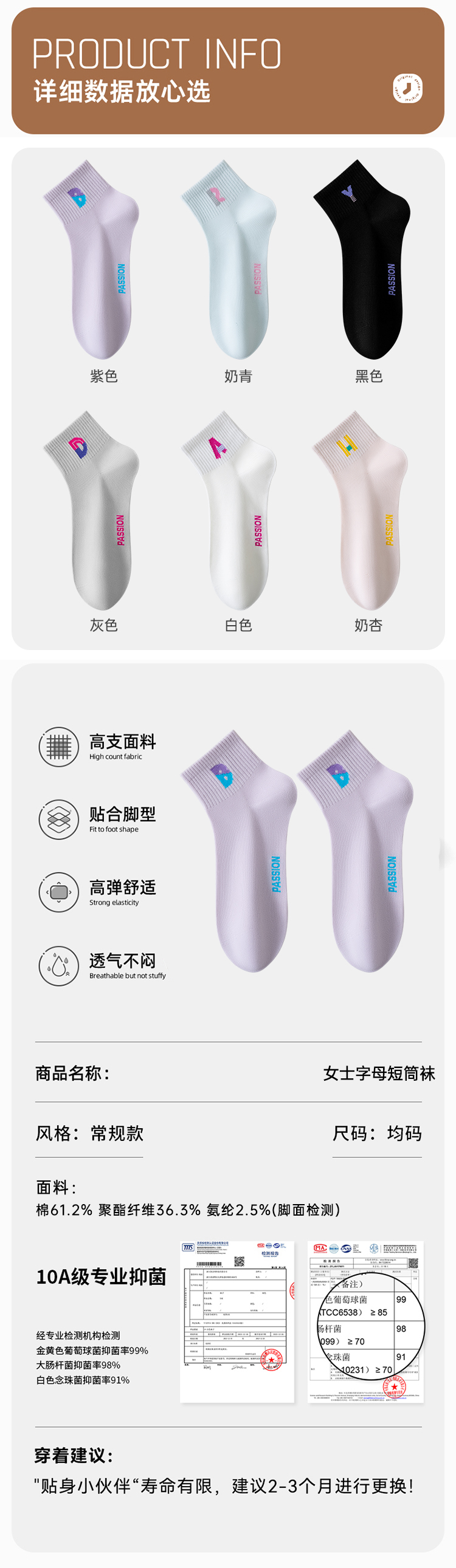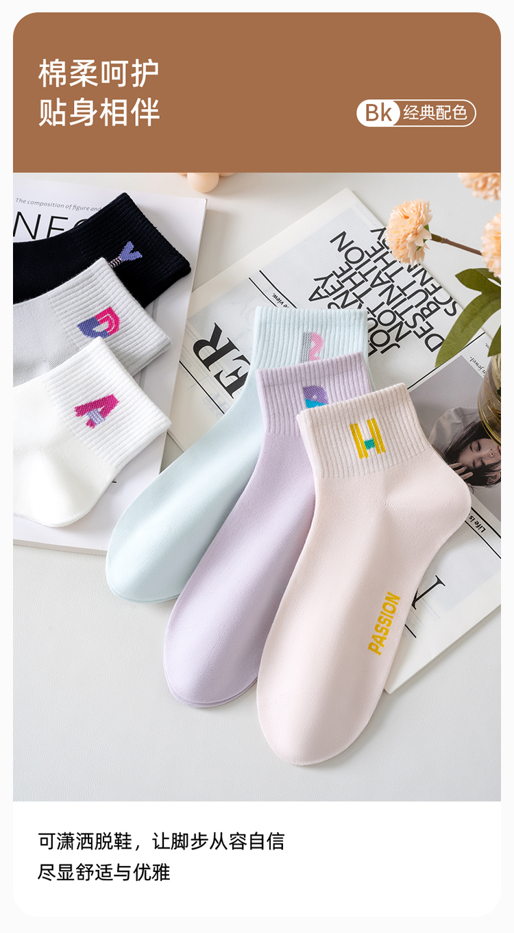 女士字母短筒袜