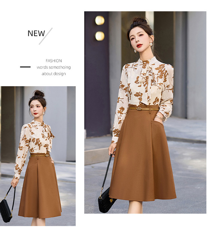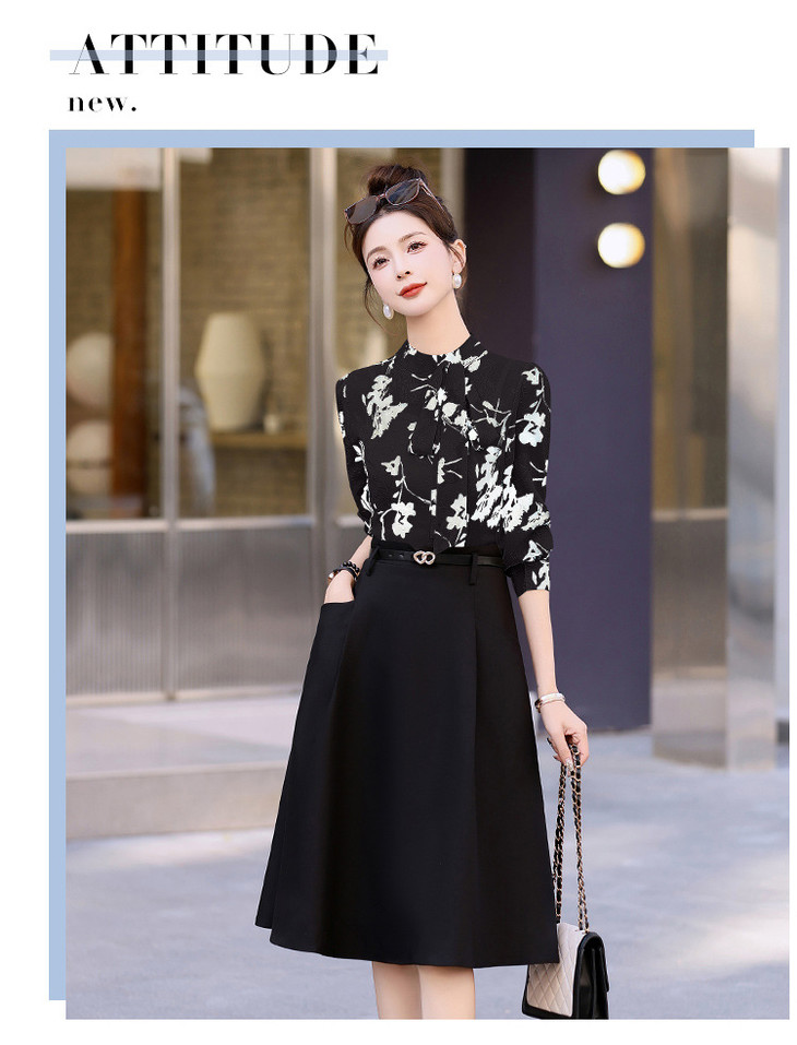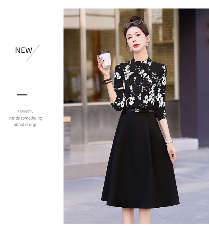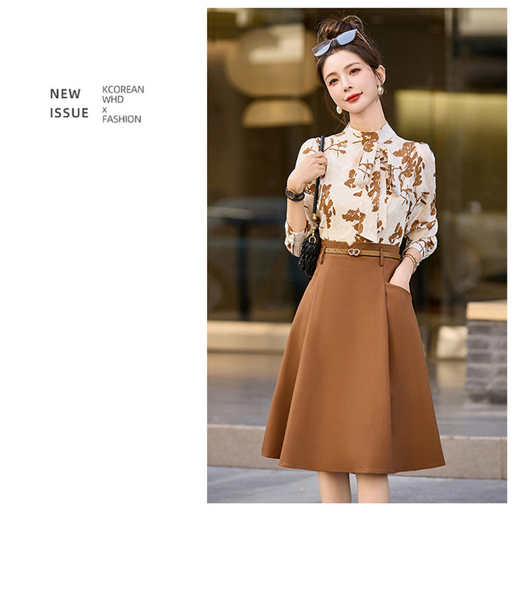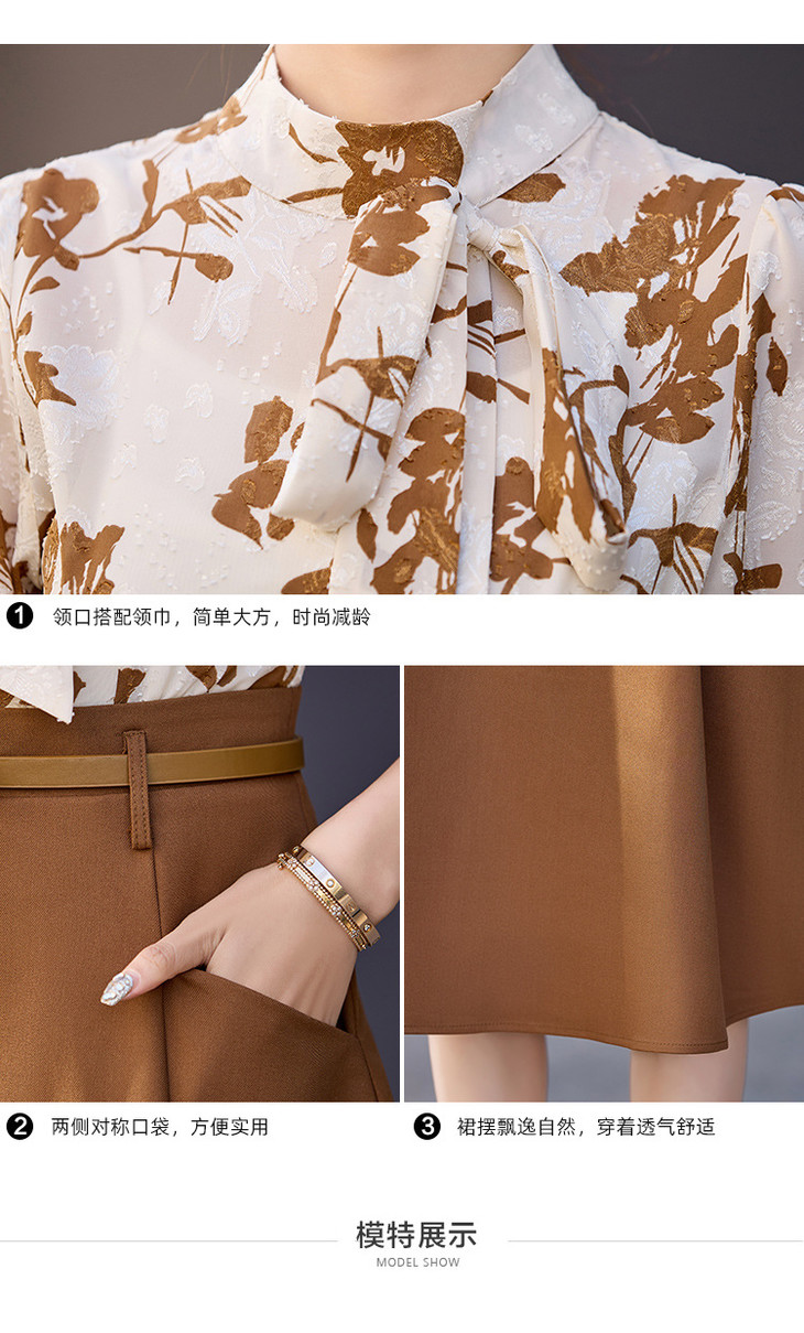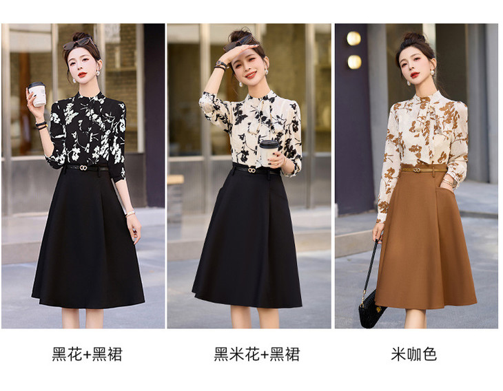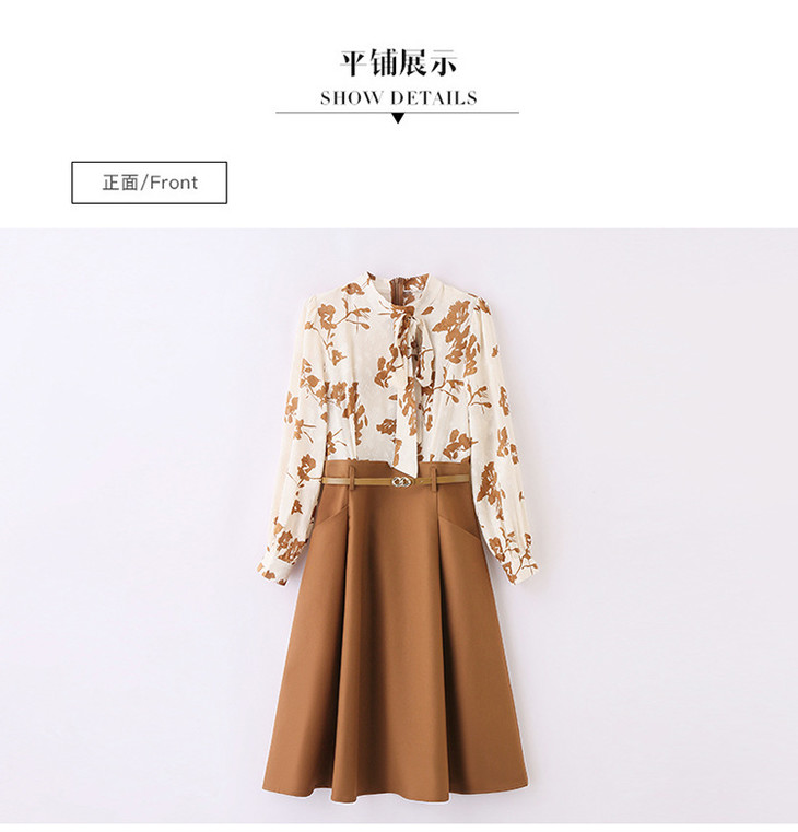2024秋装新款领口搭配领巾简单显瘦时尚 时尚配送腰带连衣裙HR-SNXF2901 商品图3