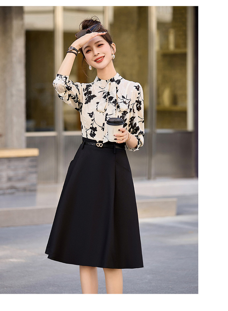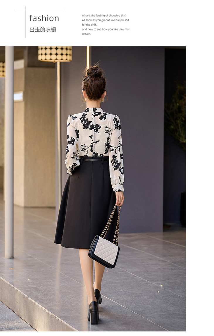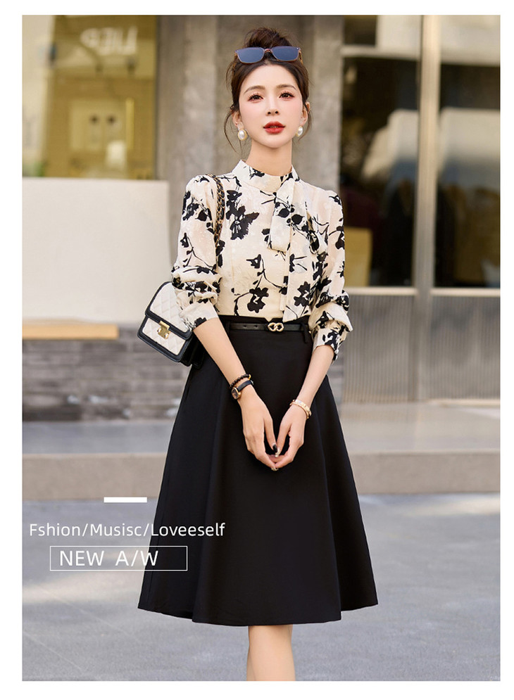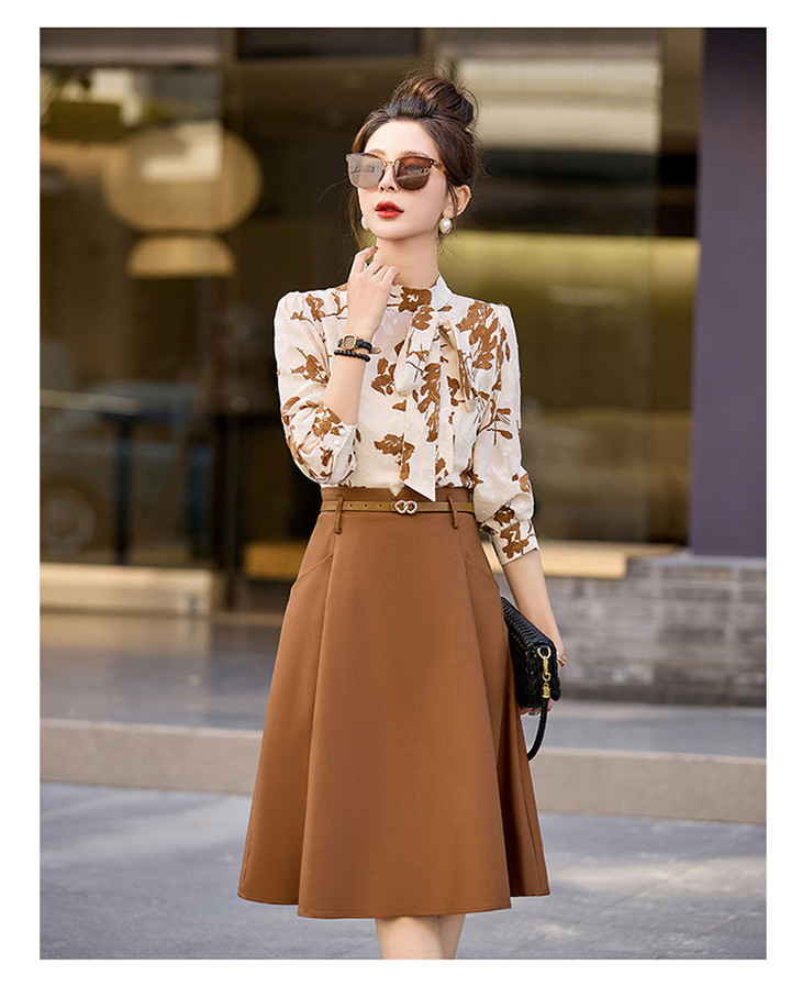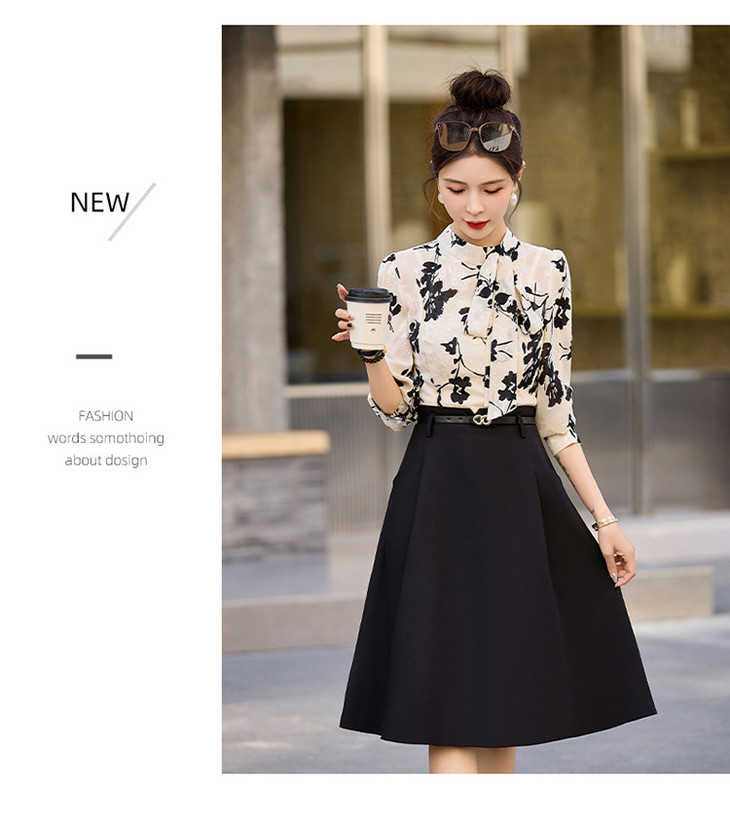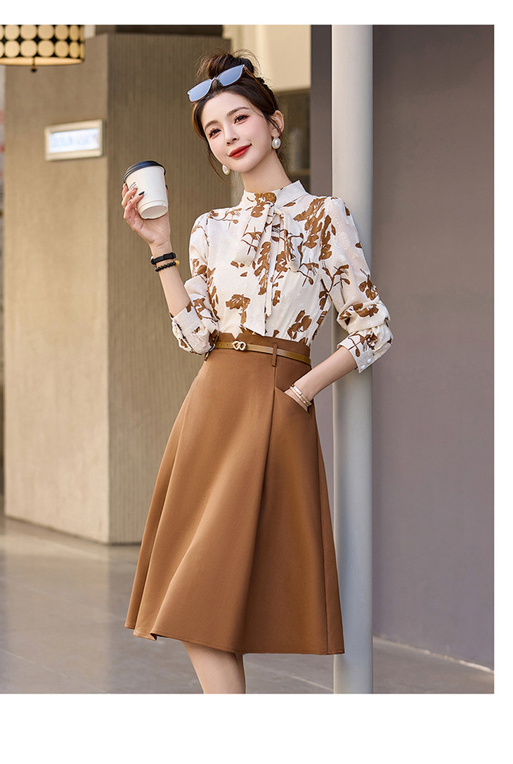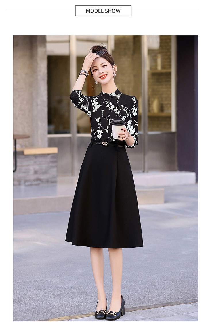 2024秋装新款领口搭配领巾简单显瘦时尚 时尚配送腰带连衣裙HR-SNXF2901 商品图3