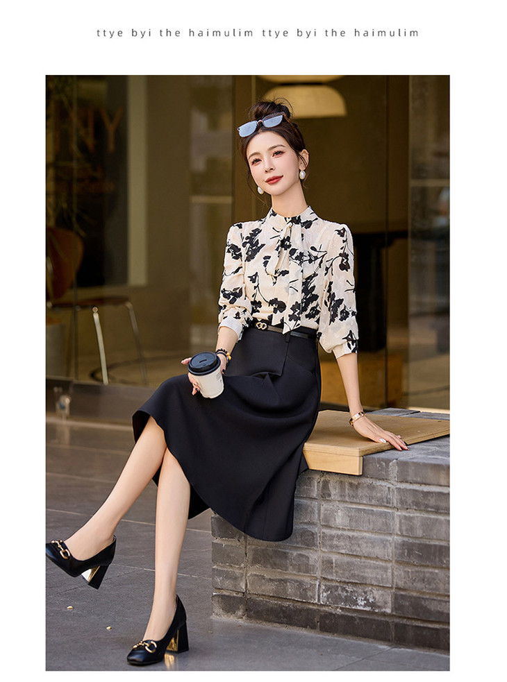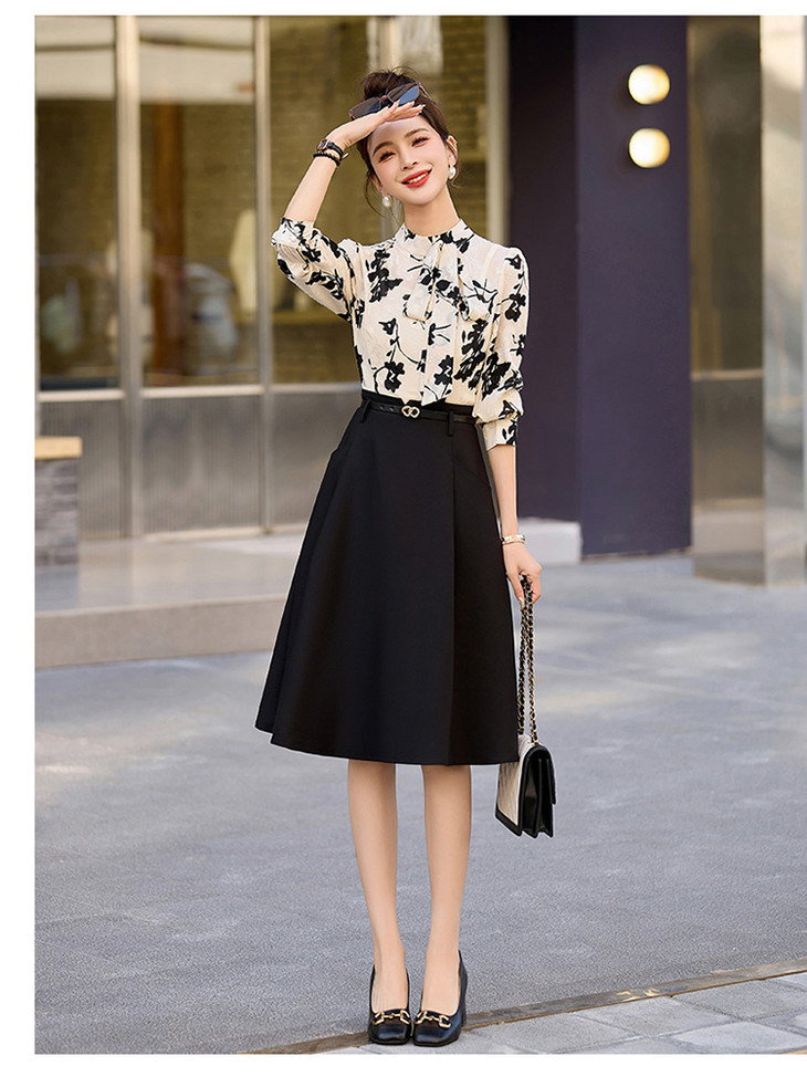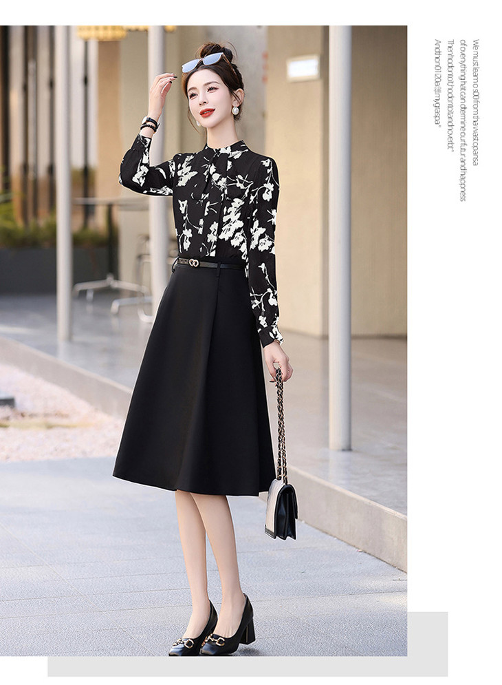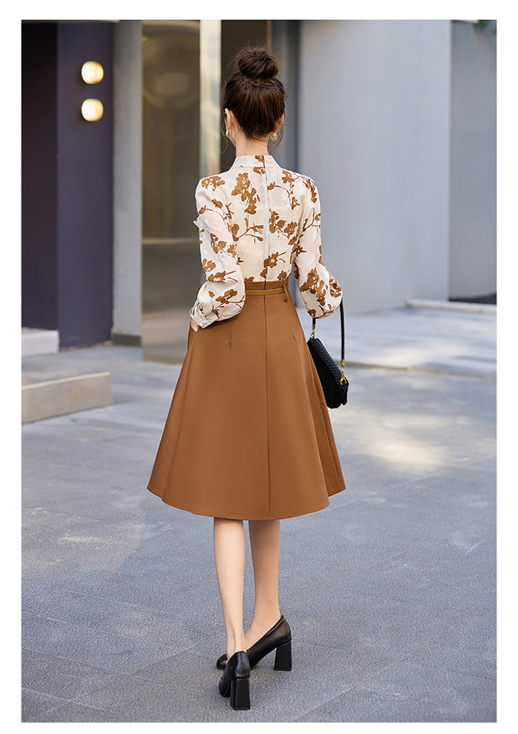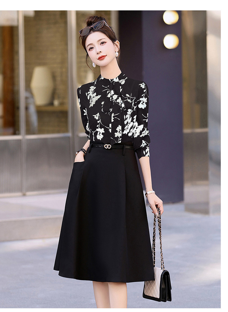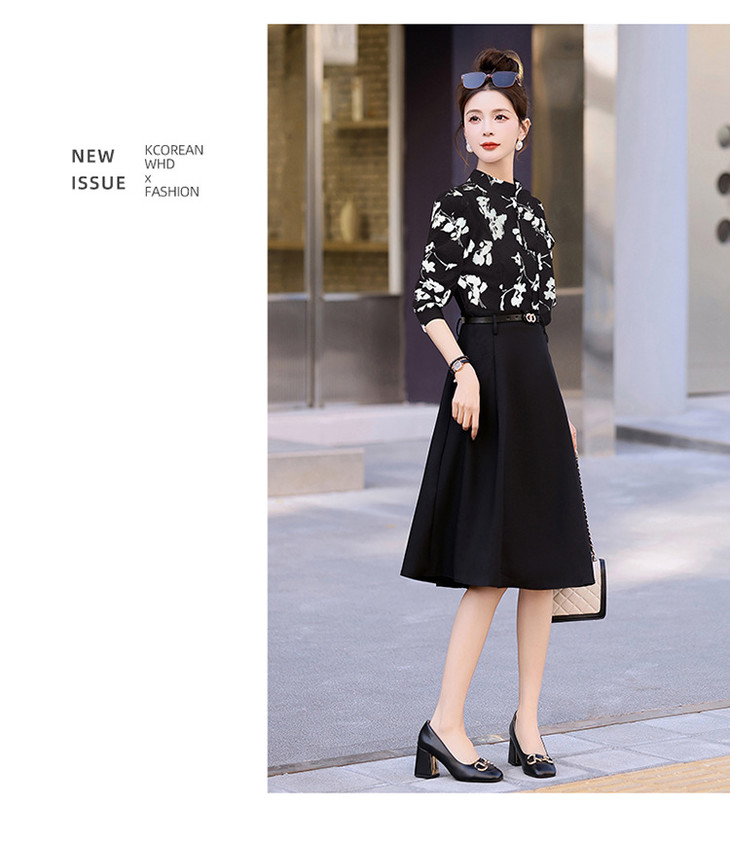 2024秋装新款领口搭配领巾简单显瘦时尚 时尚配送腰带连衣裙HR-SNXF2901 商品图3