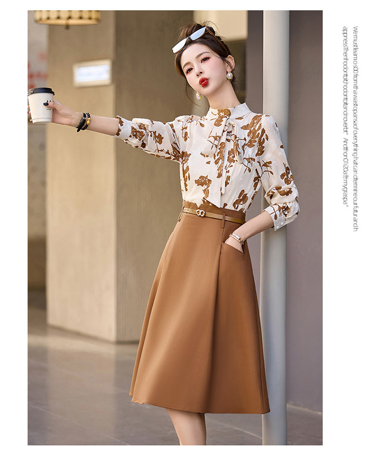 2024秋装新款领口搭配领巾简单显瘦时尚 时尚配送腰带连衣裙HR-SNXF2901 商品图0