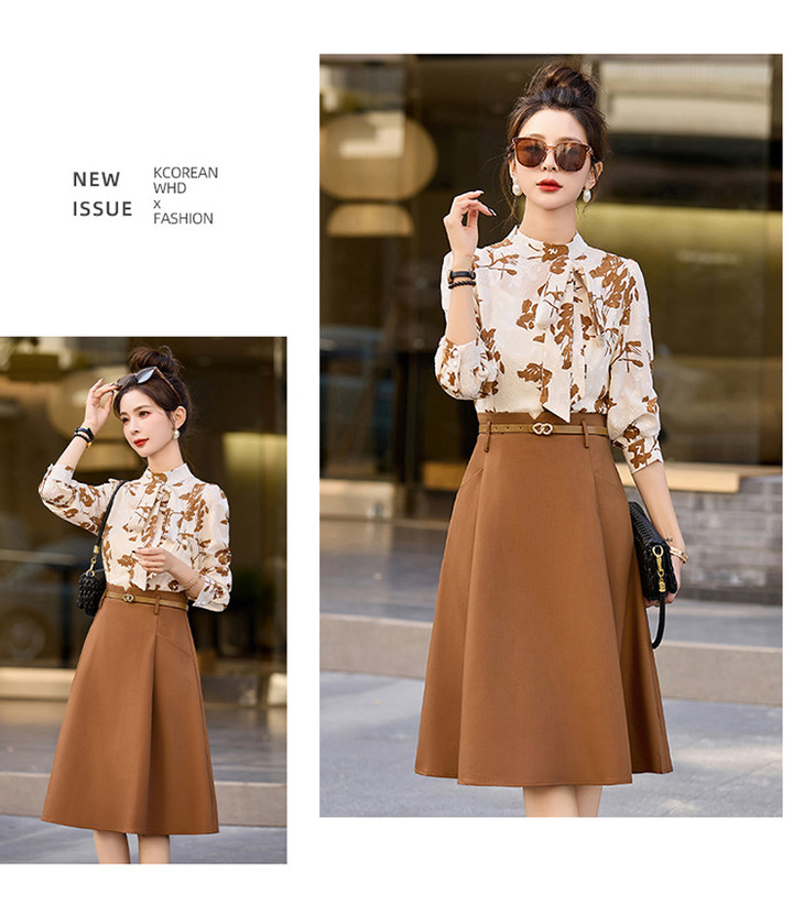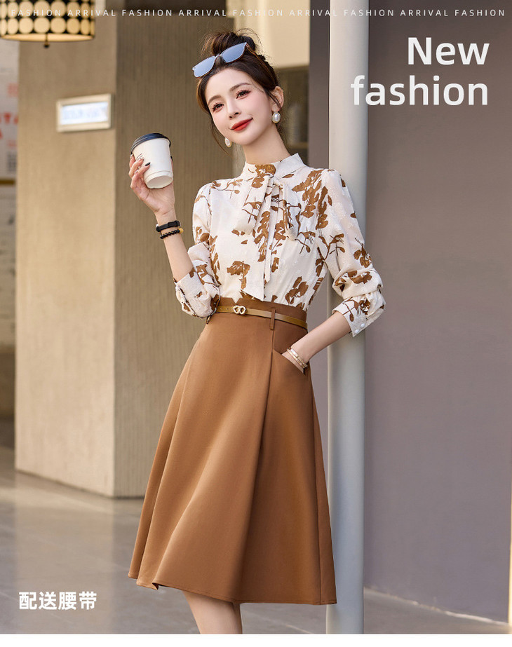 2024秋装新款领口搭配领巾简单显瘦时尚 时尚配送腰带连衣裙HR-SNXF2901 商品图1