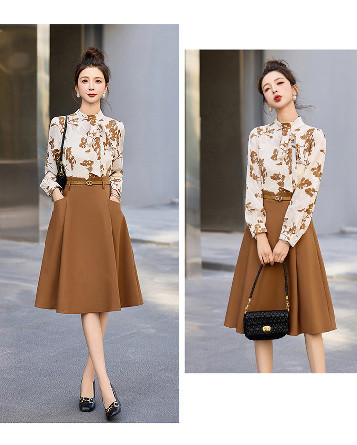 2024秋装新款领口搭配领巾简单显瘦时尚 时尚配送腰带连衣裙HR-SNXF2901