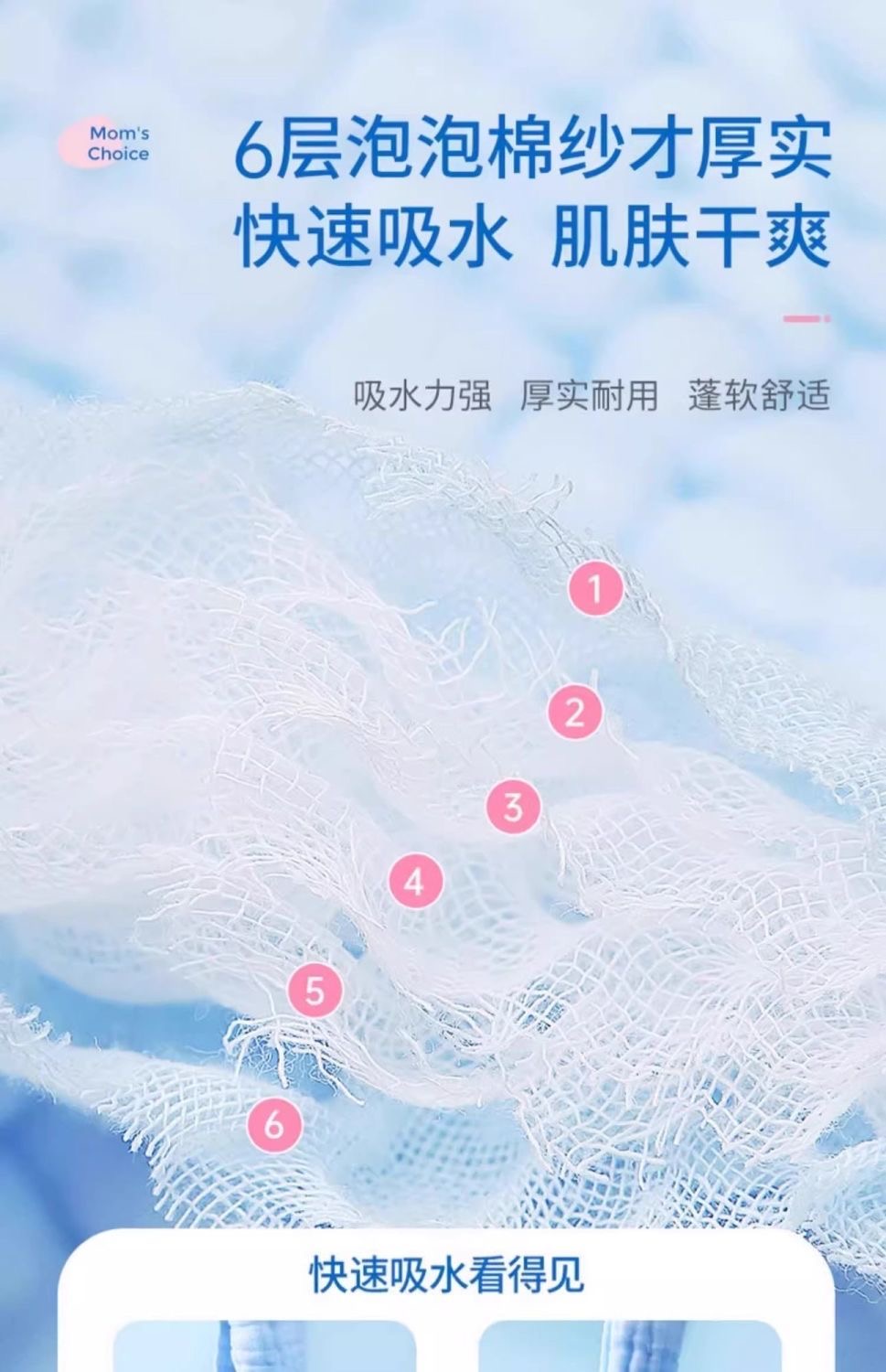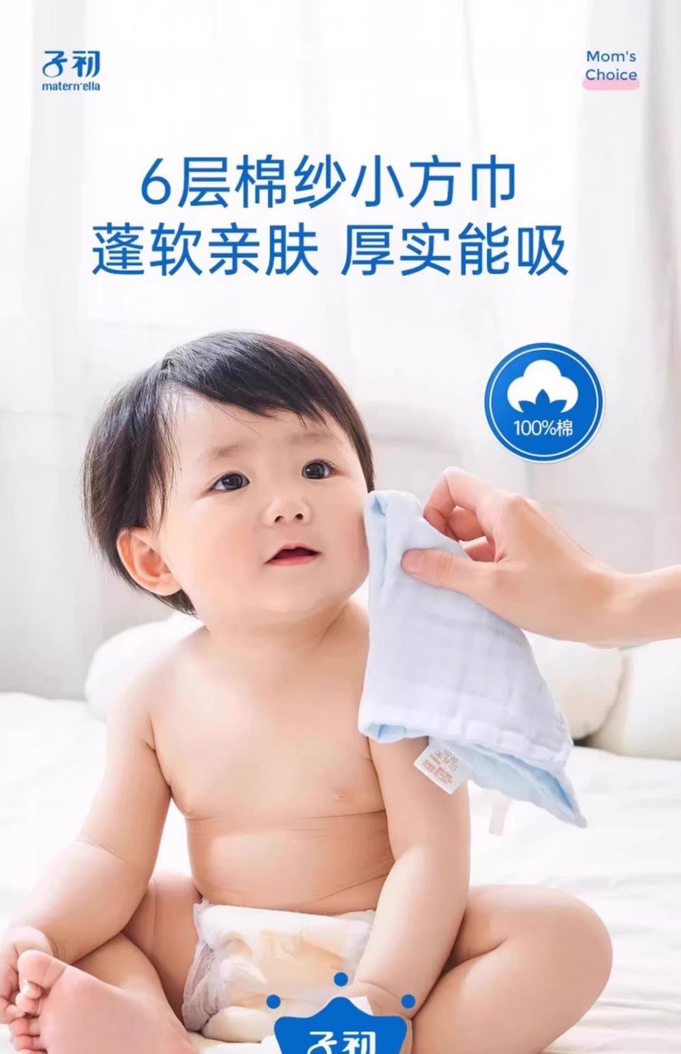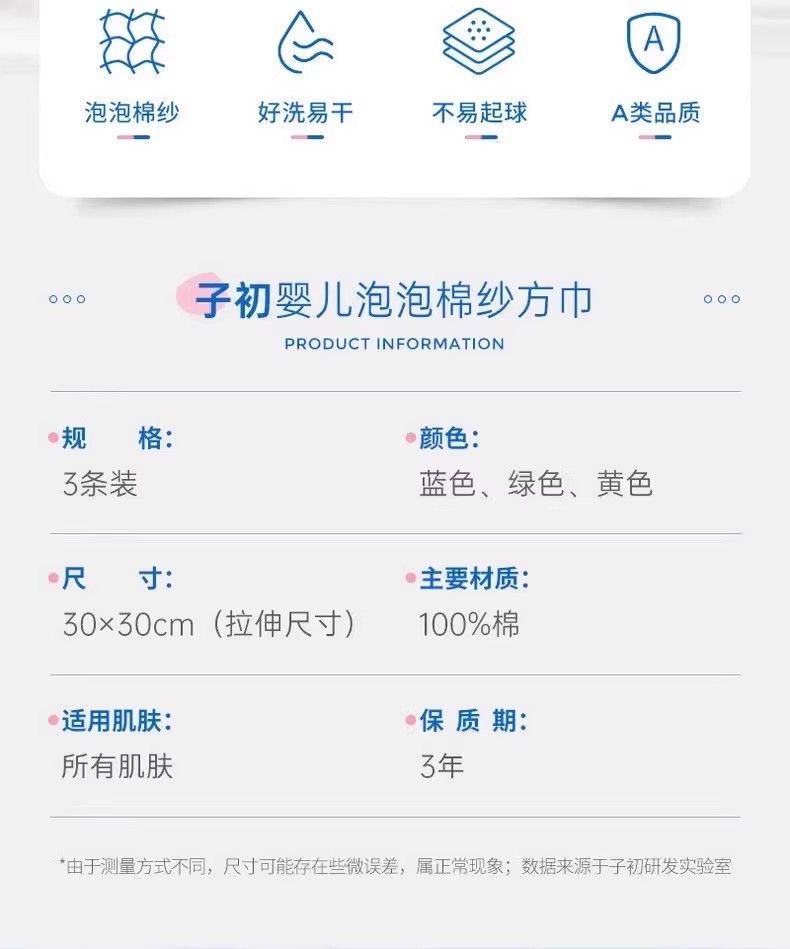 子初 婴儿泡泡棉纱方巾(纯色3条装)6层 30*30cm
