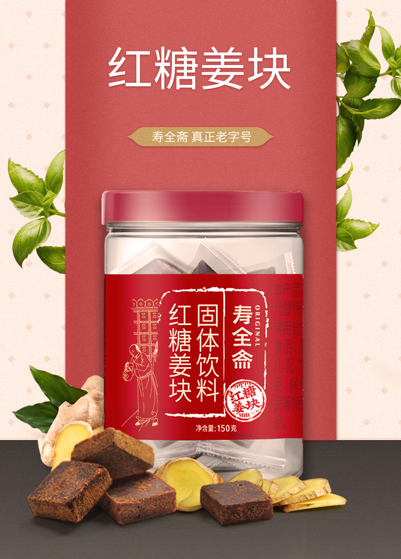 【女神节】【中华老字号】寿全斋 红糖姜块 150g*2