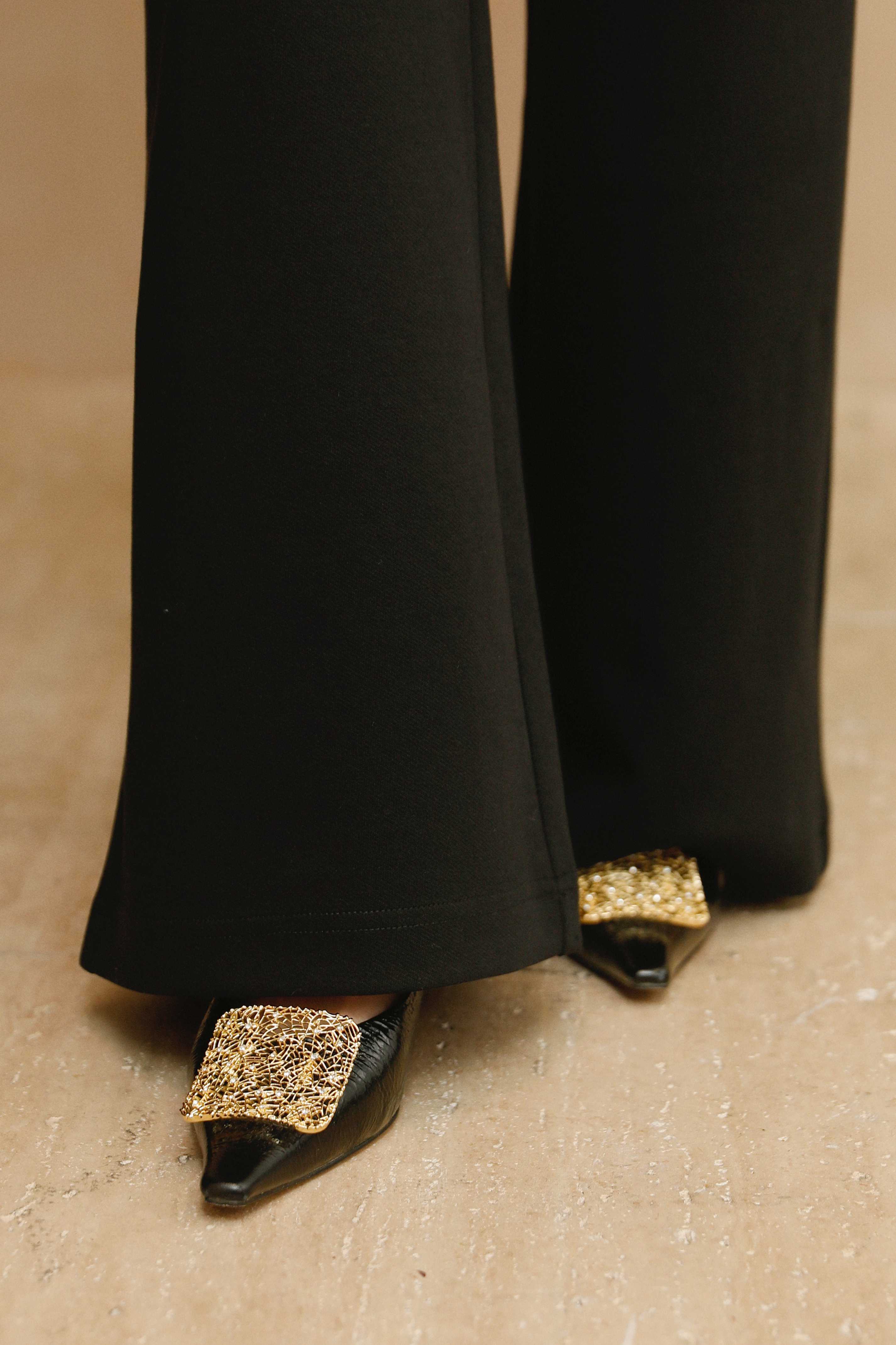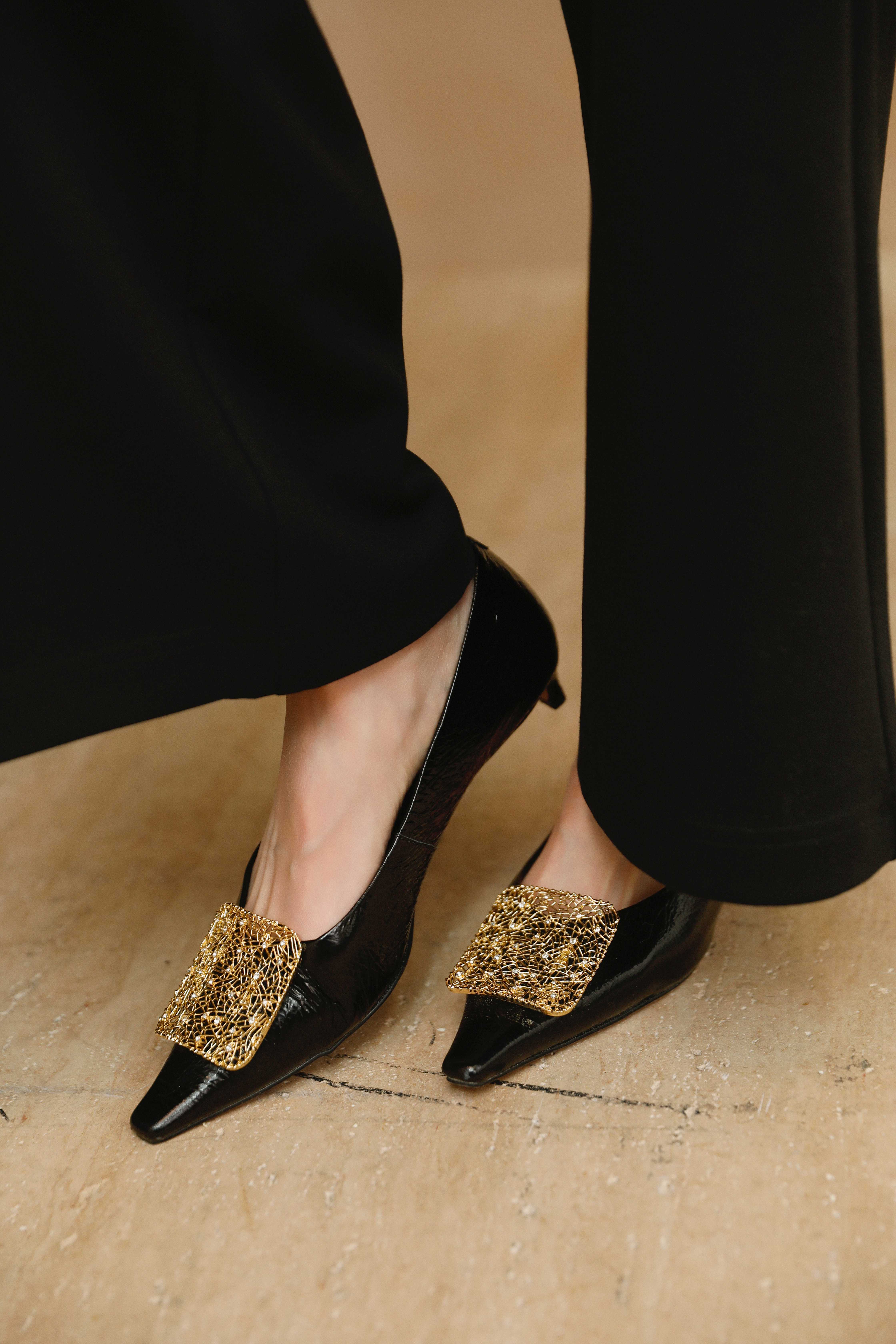 这次给姐妹们带来的一款小牛皮金属方扣猫跟鞋(黑/金)