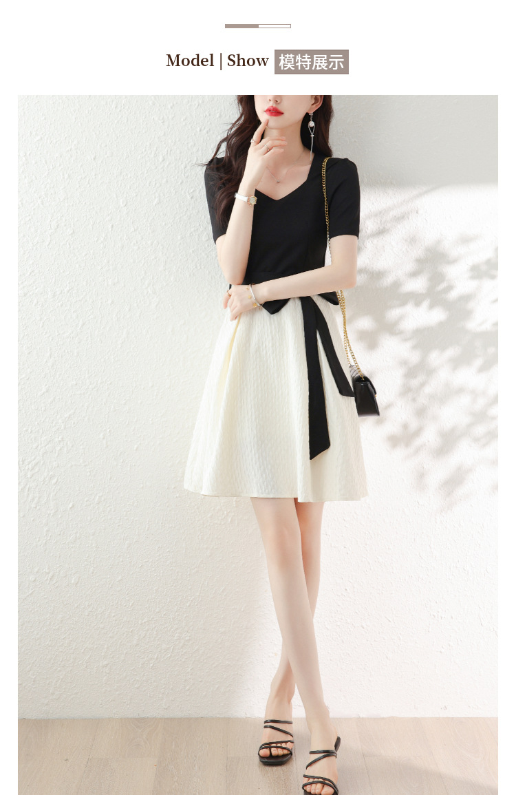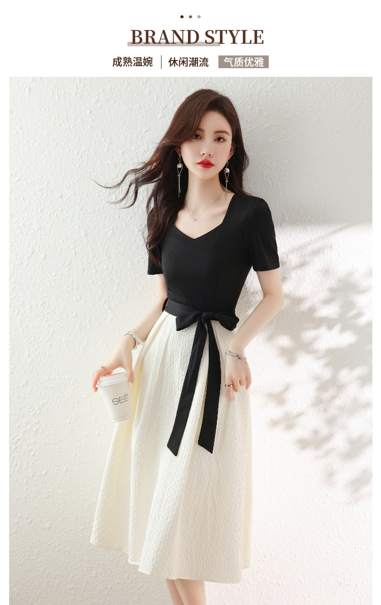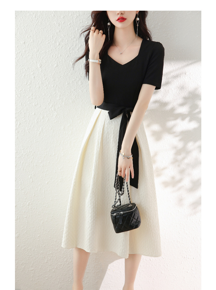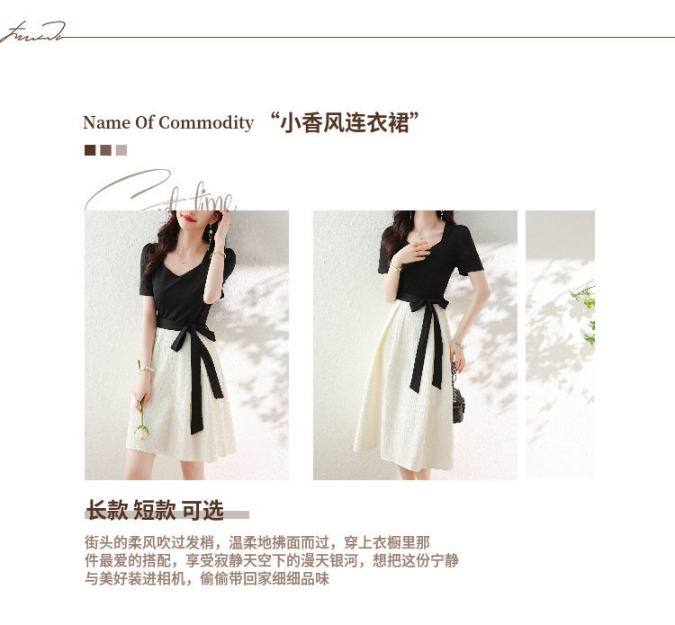 百搭2023新款梨形身材茶歇法式气质名媛中长款短袖小香风连衣裙女
