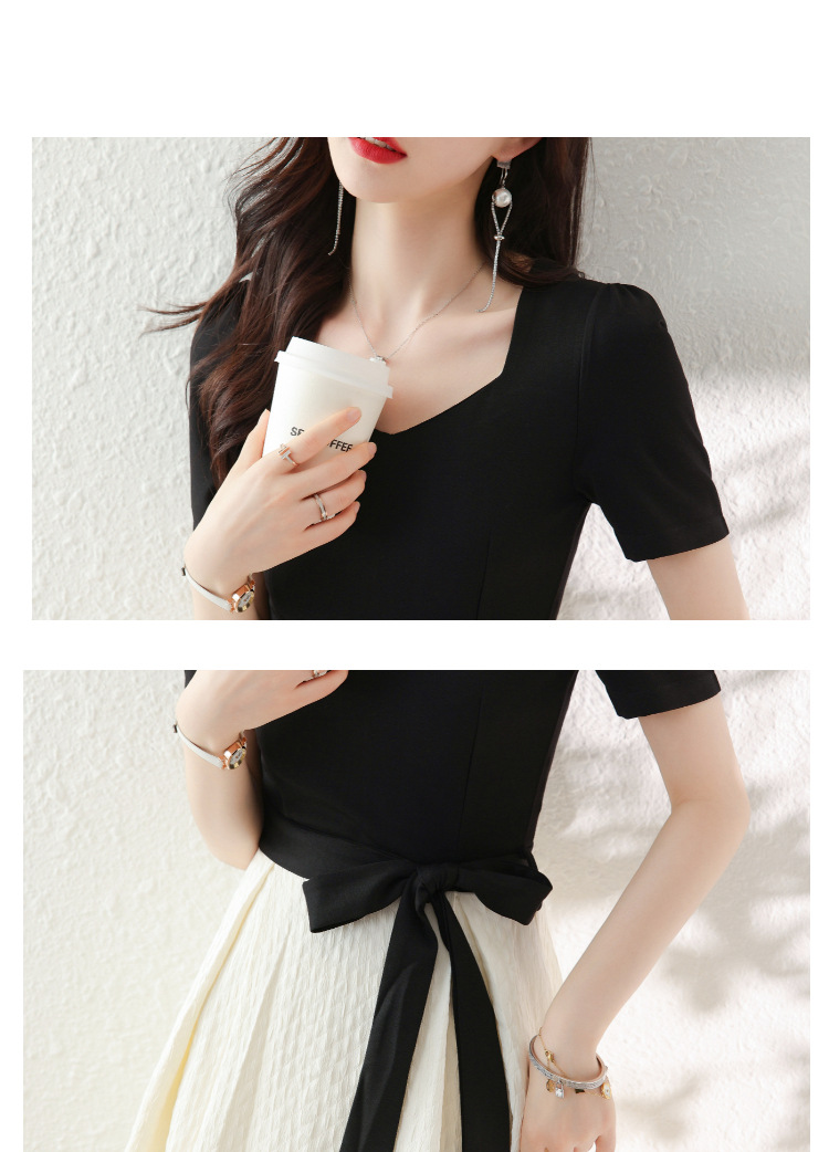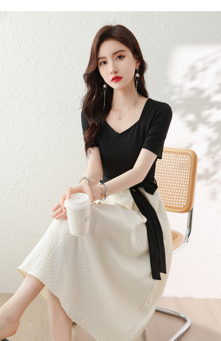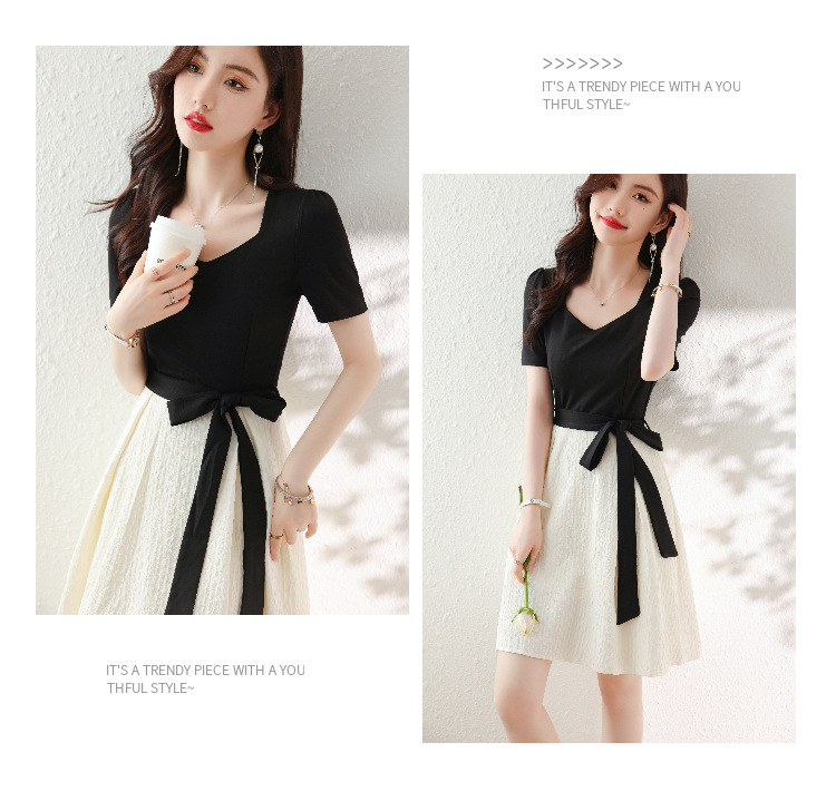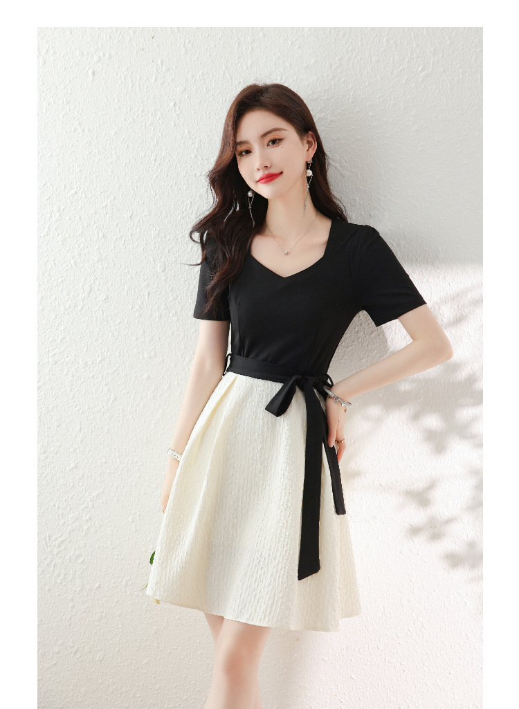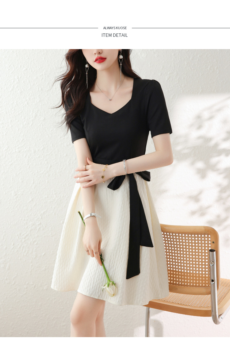 百搭2023新款梨形身材茶歇法式气质名媛中长款短袖小香风连衣裙女