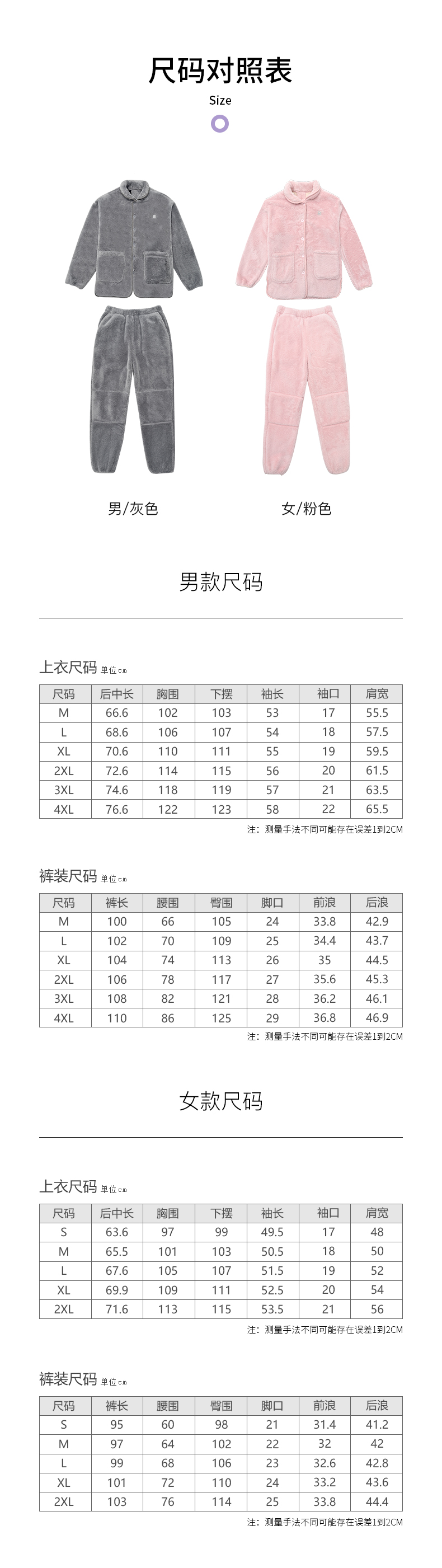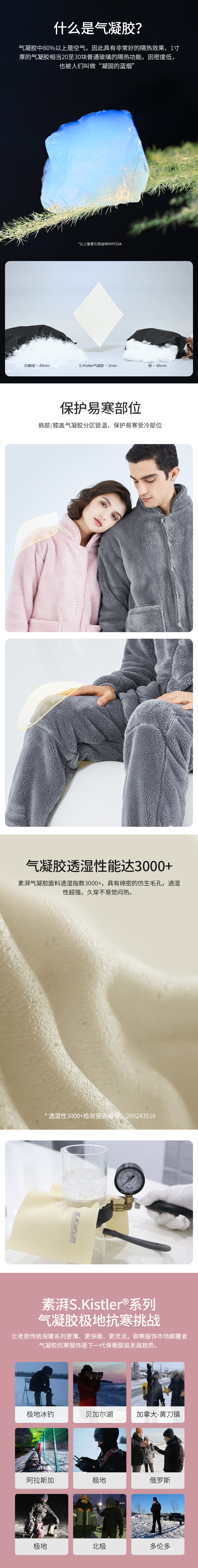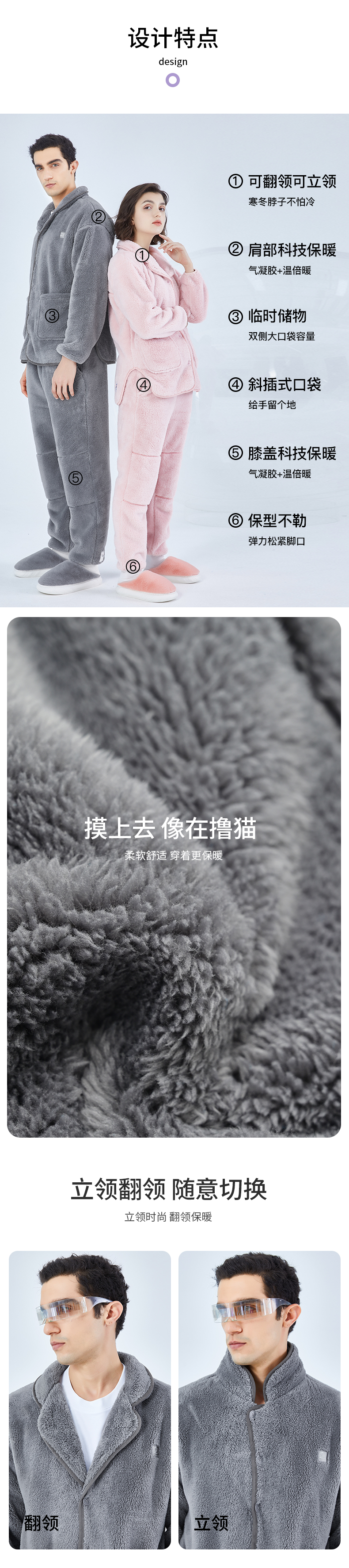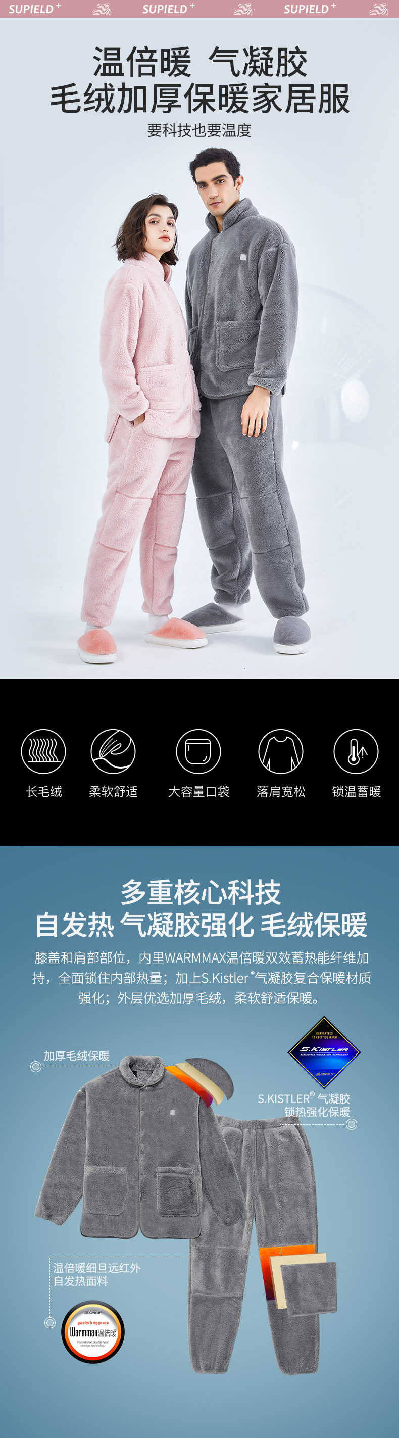 Supield素湃气凝胶强化防寒家居服室内保暖加绒居家睡衣套装男女