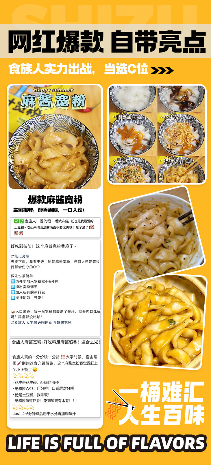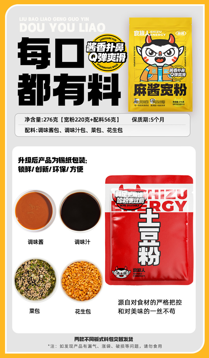 【酱香流汁 柔韧爽滑】食族人麻酱宽粉/麻酱米线 纯正土豆粉Q弹爽滑 工作熬夜旅游追剧夜宵方便速食粉 276g/118g