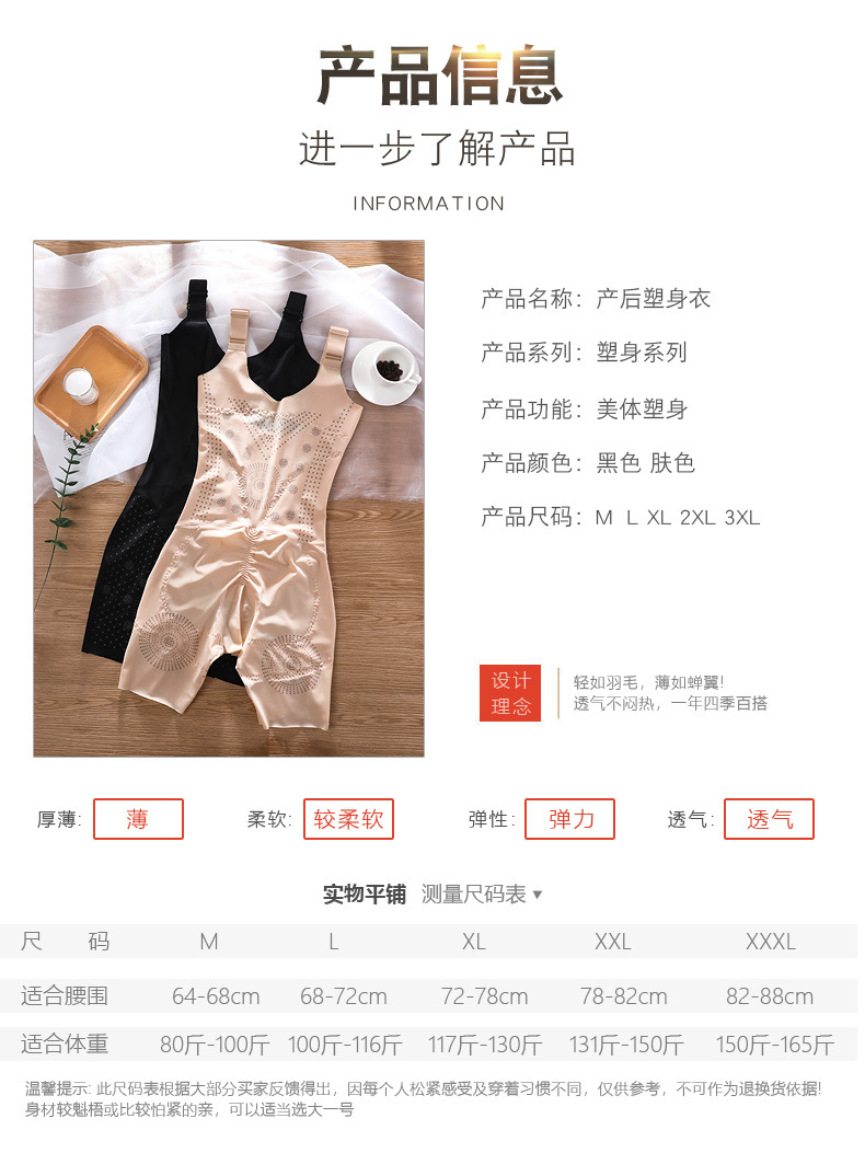 收腹提臀束腰薄款,平角美体全身塑形束身连体塑身衣BLJ- 2889