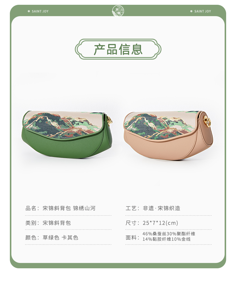 SAINTJOY/上久楷 宋锦斜背包 锦绣山河 BWS23B0201