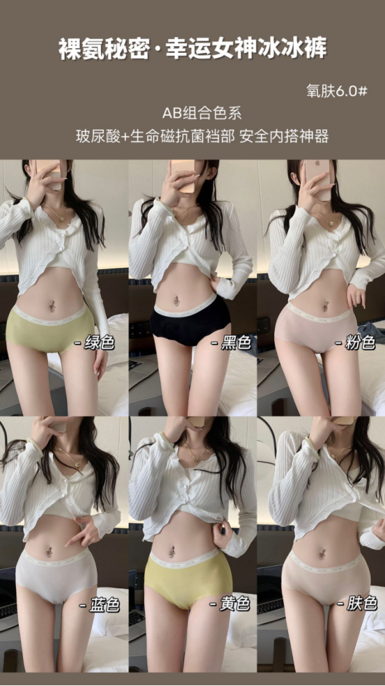 今日好物分享 玻尿酸:滋润肌肤拒绝干燥让私处 生命磁:生命磁温变底裆吸湿透气 A级抗菌穿着不刺激、都是黑科技的产物哇~ 高品质!高舒适! 少女心内内俘获心思狠狠拿捏住 包臀版型简约大弹力 实力安排不夹pp!完全不挑人系列