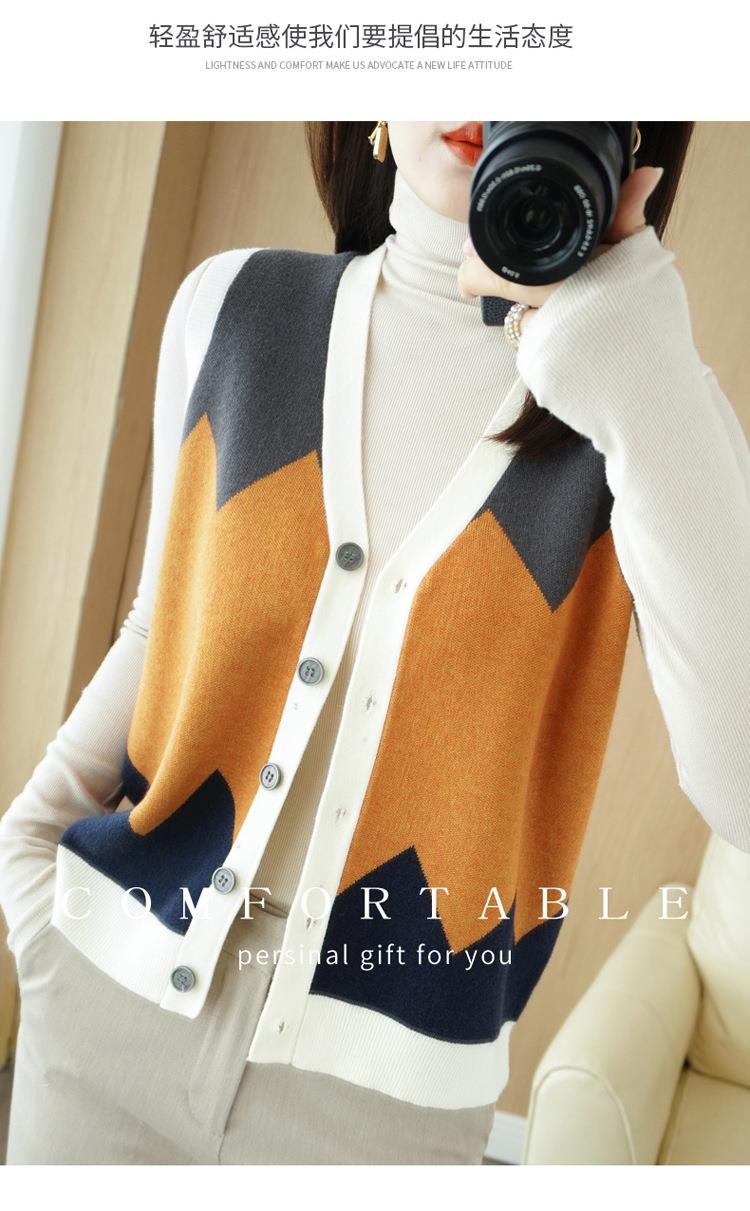 时尚2023秋季风气质安迪绒开衫V字领直筒型毛衣女式针织衫