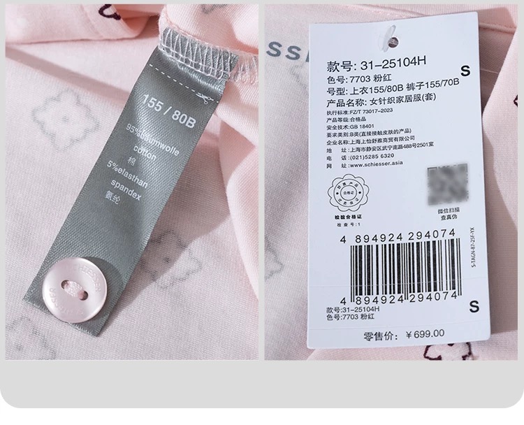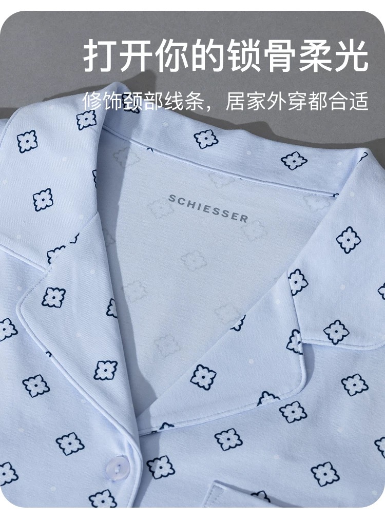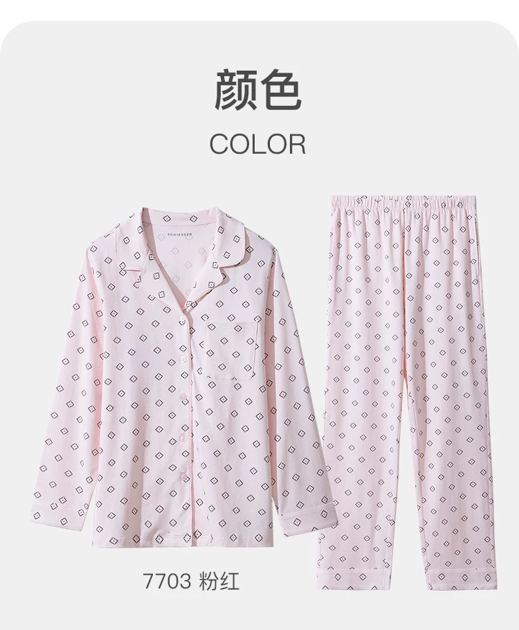 【棉氨经典】SCHIESSER德国舒雅女长袖长裤套装棉氨纶 单面 95%棉 5%氨纶 160g/m2 31/25104H