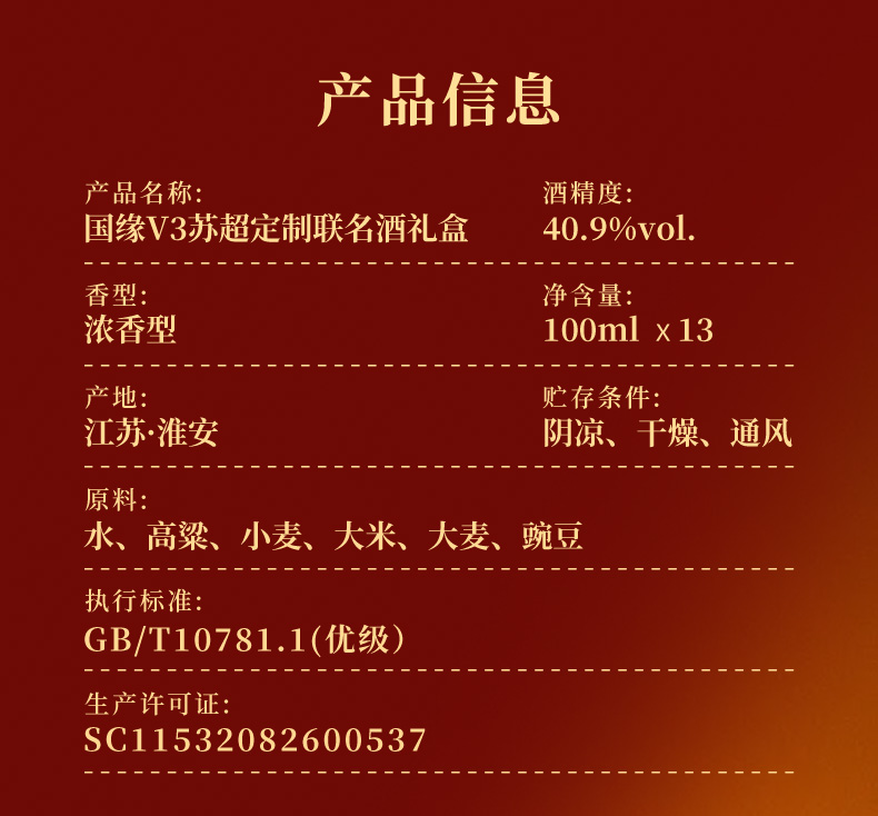 【年货送礼】国缘 V3 浓香型 白酒 苏超定制联名款 40.9度 100ml*13瓶
