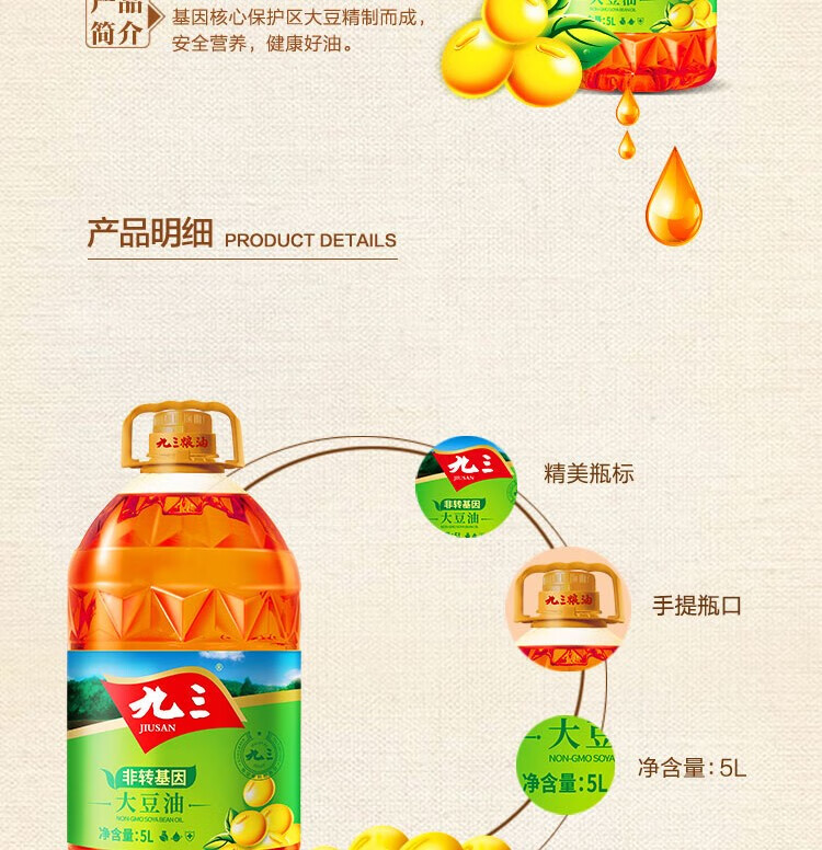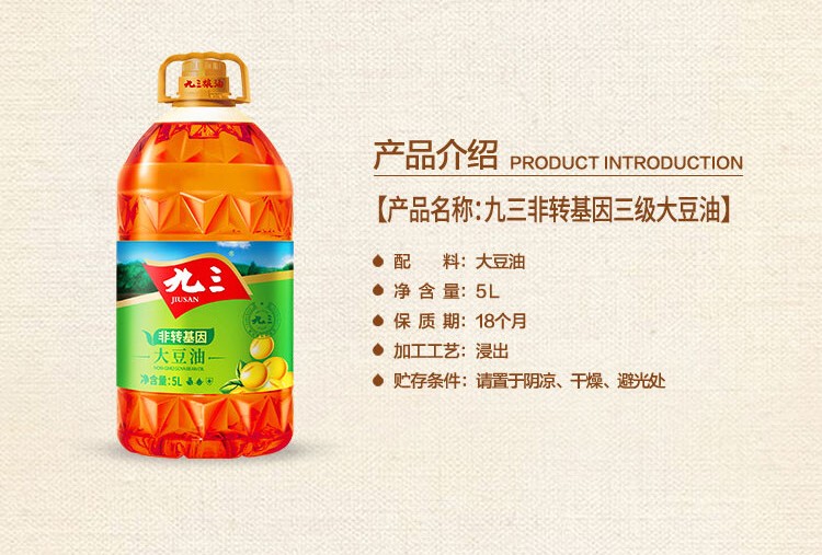 九三 非转基因大豆油食用油三级大豆油 桶装 5L