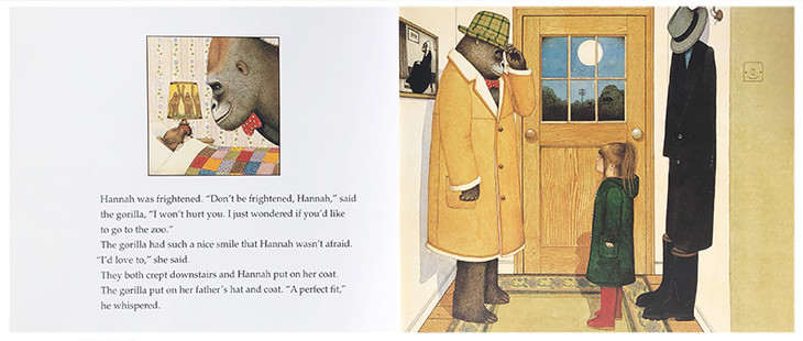 《Gorilla》一经出版,就一举荣获多项重要大奖,并且将作者安东尼•布朗推进图画书创作者之林,成为布 朗经典而重要的代表作。书中,布朗利用“父亲”和“大猩猩”的共同点一一高大威武却亲切温和,描绘了一个忙 忙碌碌、不擅表达,却用行动来体现伟大的父爱的感人故事。也细致地刻画了孩子心中,孤独害怕,渴望父亲所给予 安全感的心理。大狸猩的梦幻形象之出现,更是使孩子产生强烈的认同感。随着大狸猩成为深受孩子喜爱的形象, 《Gorilla》也成为历经时间验证而经典的童书绘本。