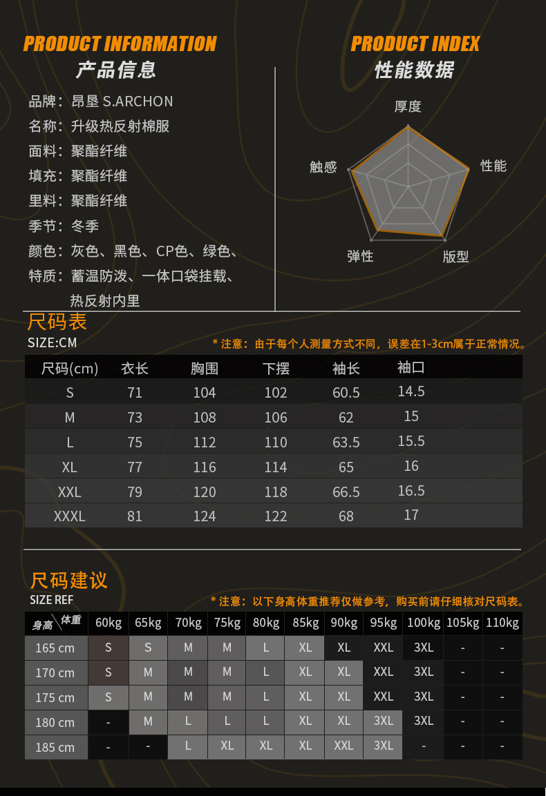 【新品】S.archon昂垦户外战术热反射棉服二代男秋冬防风保暖御寒冲锋衣棉衣外套