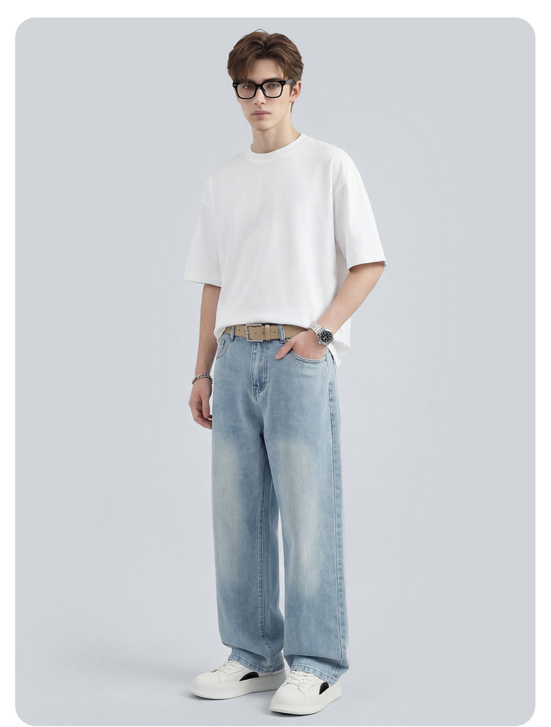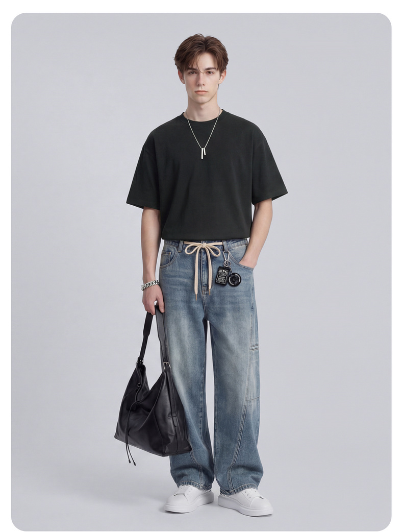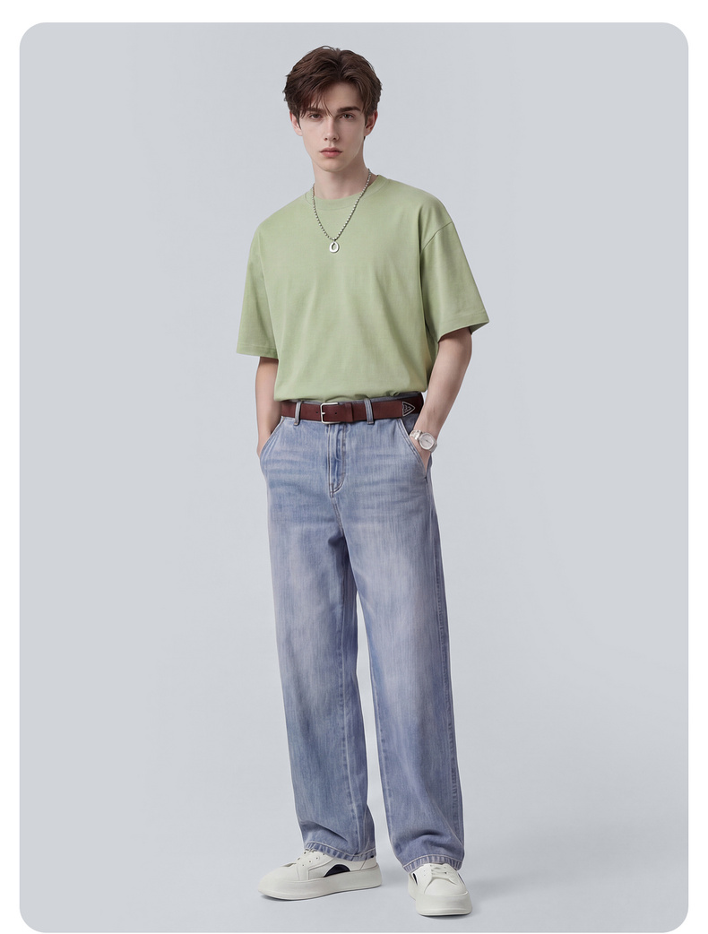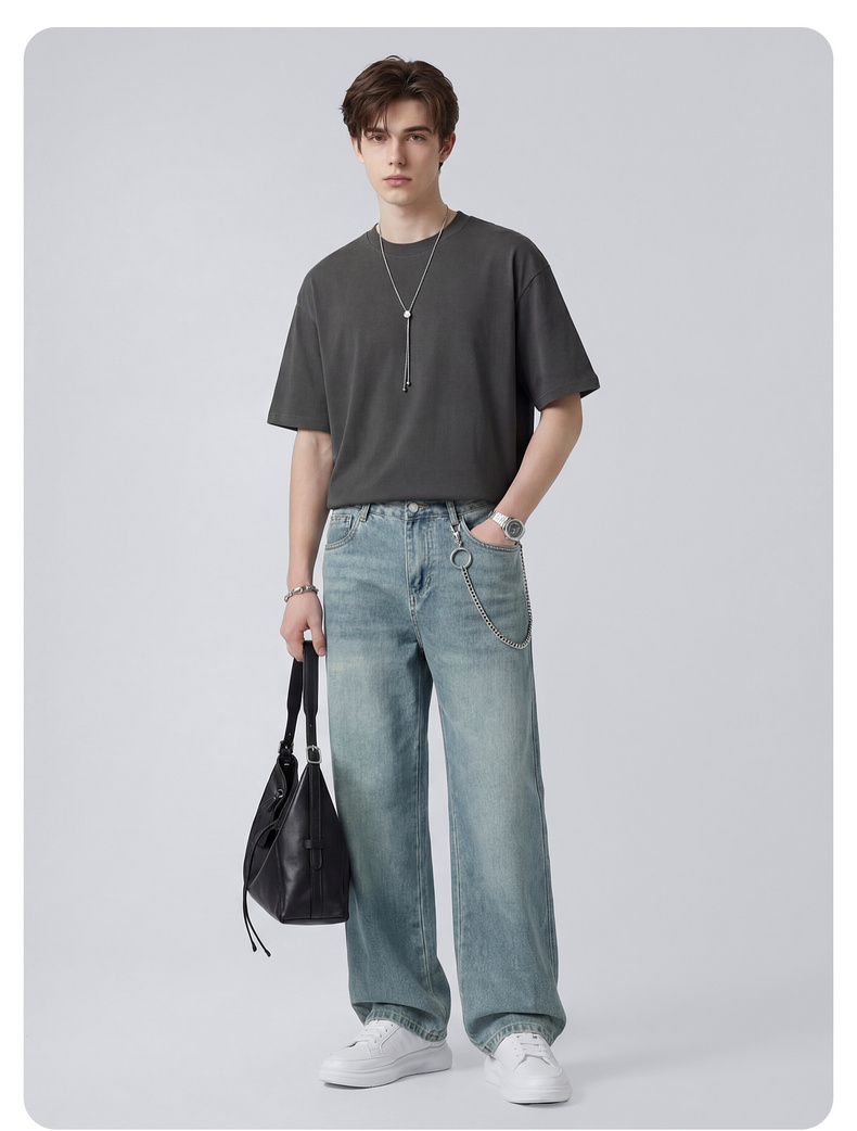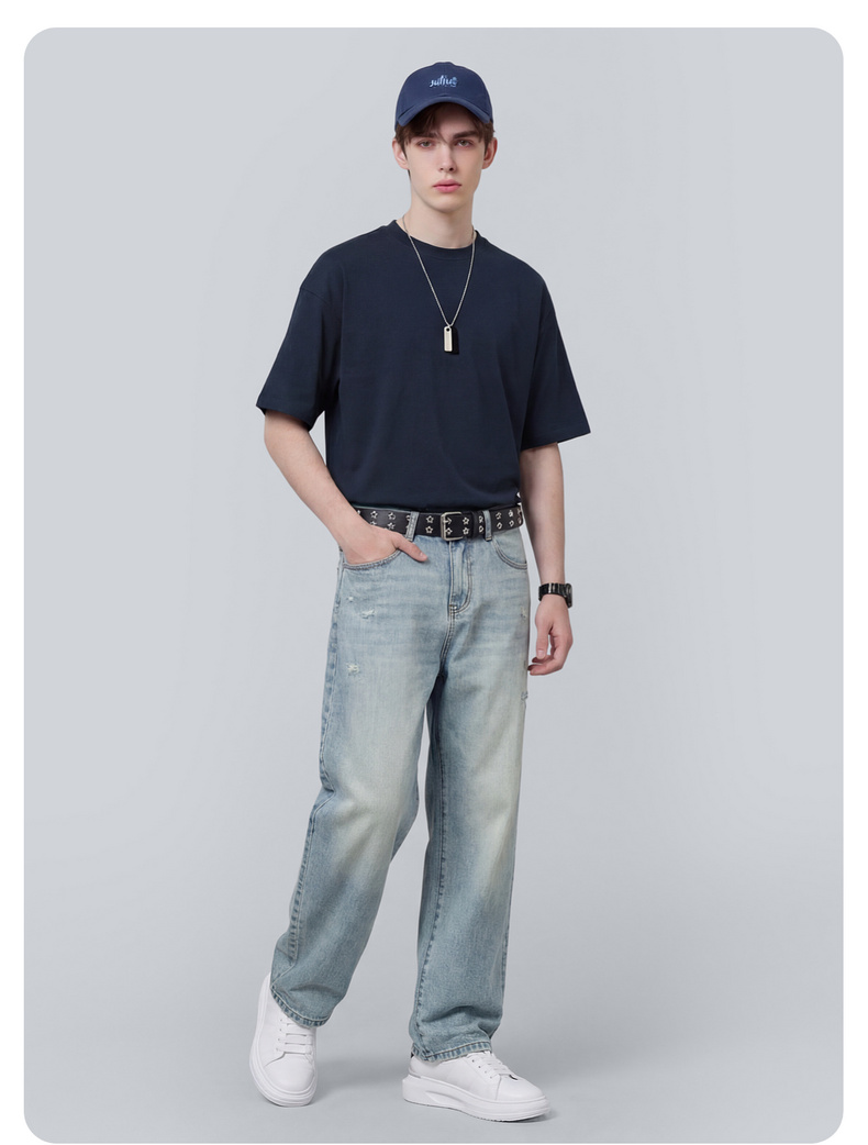 圣得西男士复古水洗舒适牛仔裤2025秋季款百搭潮流微弹直筒裤