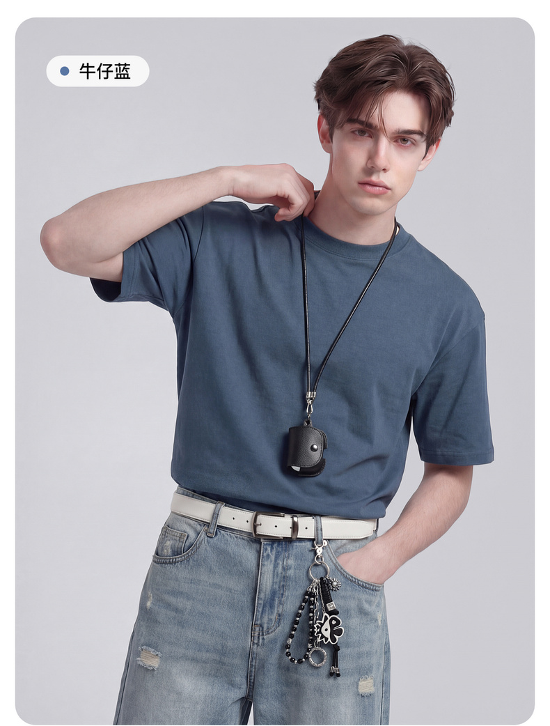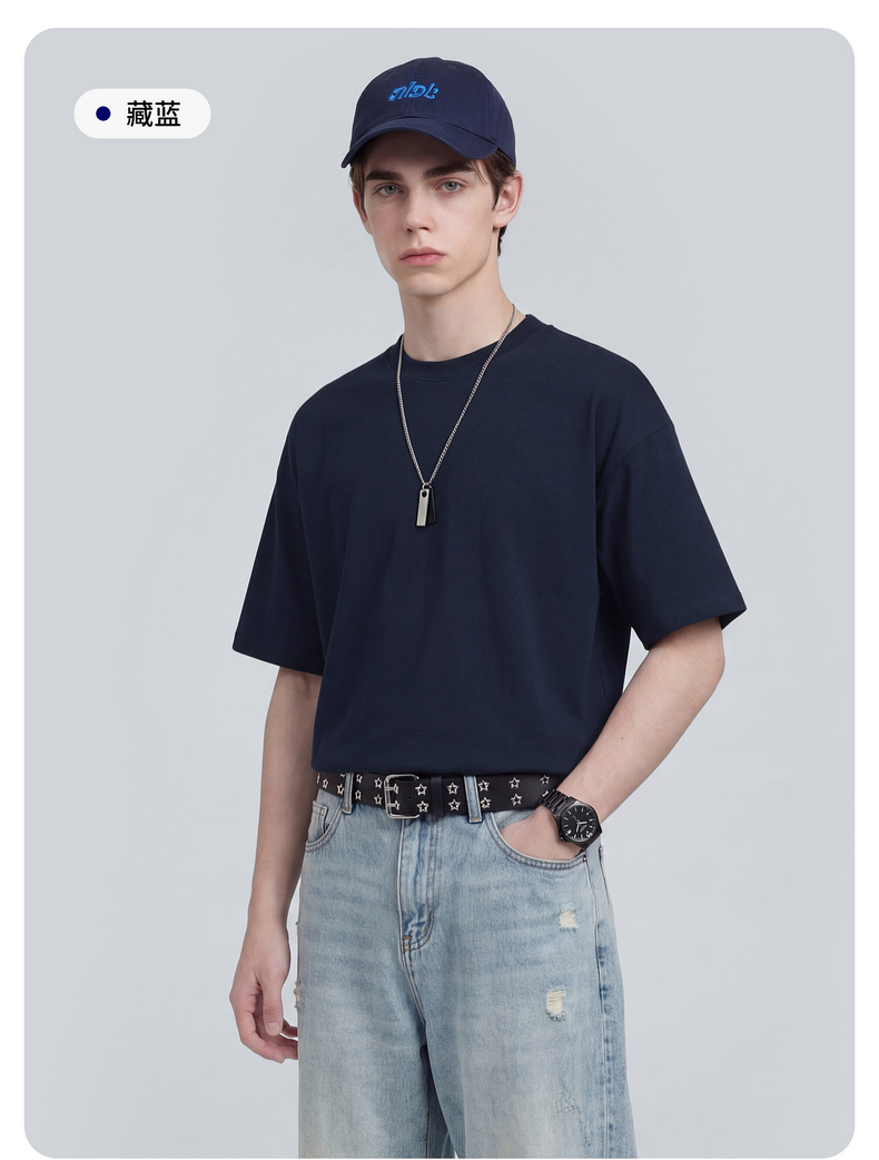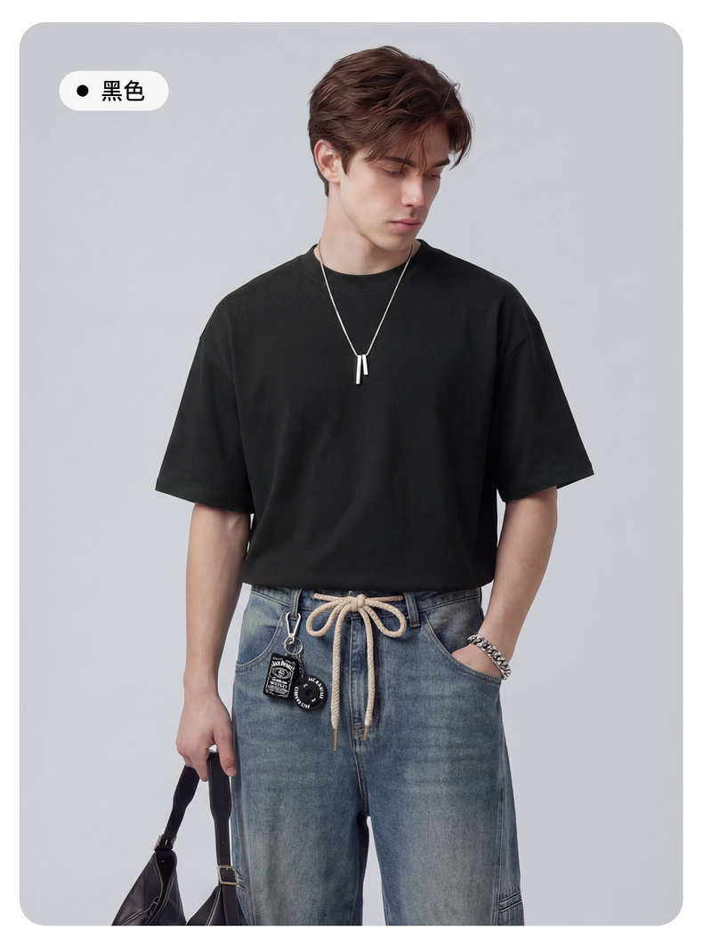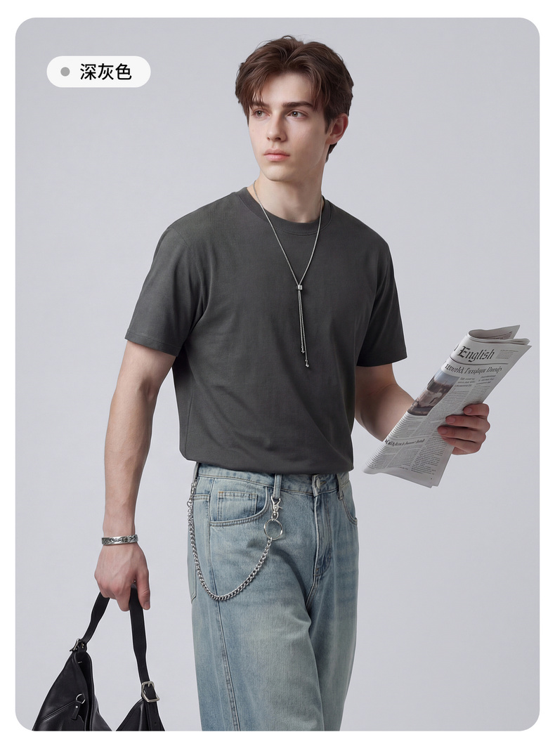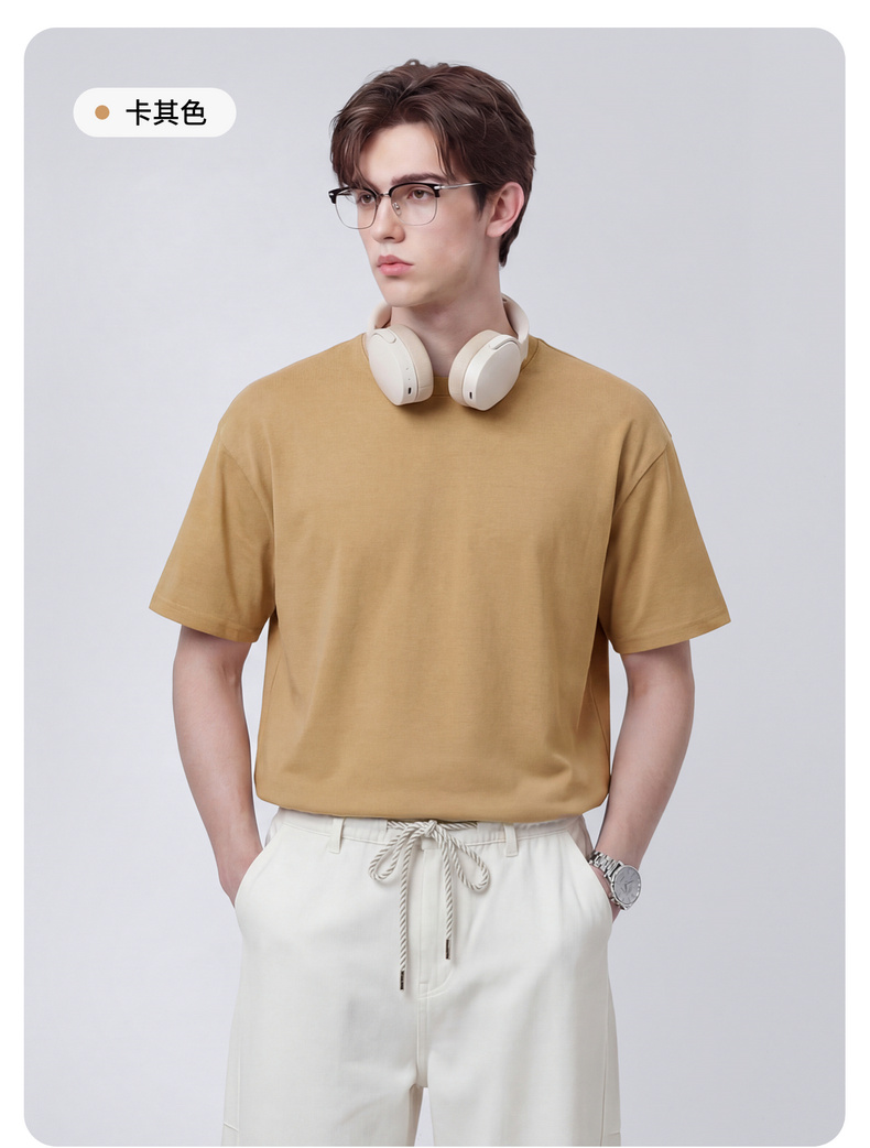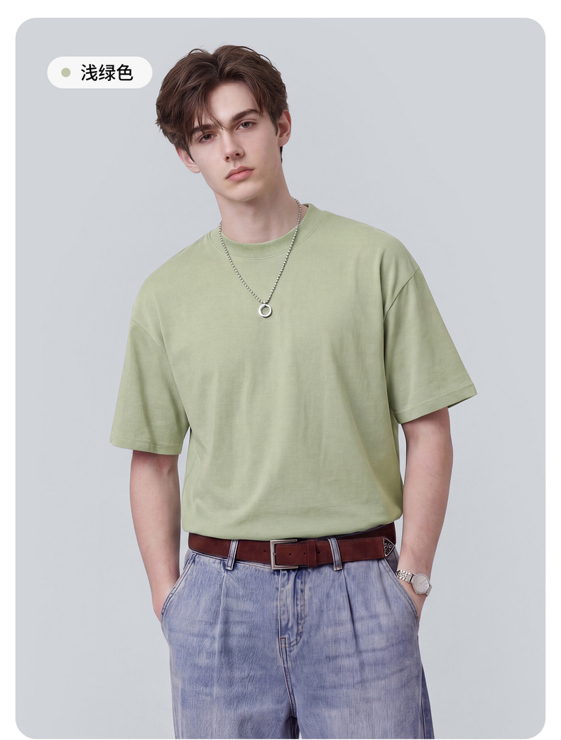 【100%棉】圣得西男士短袖t恤2026新款春季简约日常休闲圆领上衣