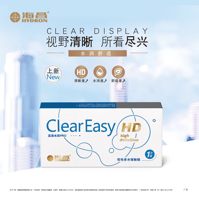 海昌隐形眼镜clear easy高清系列半年抛1片