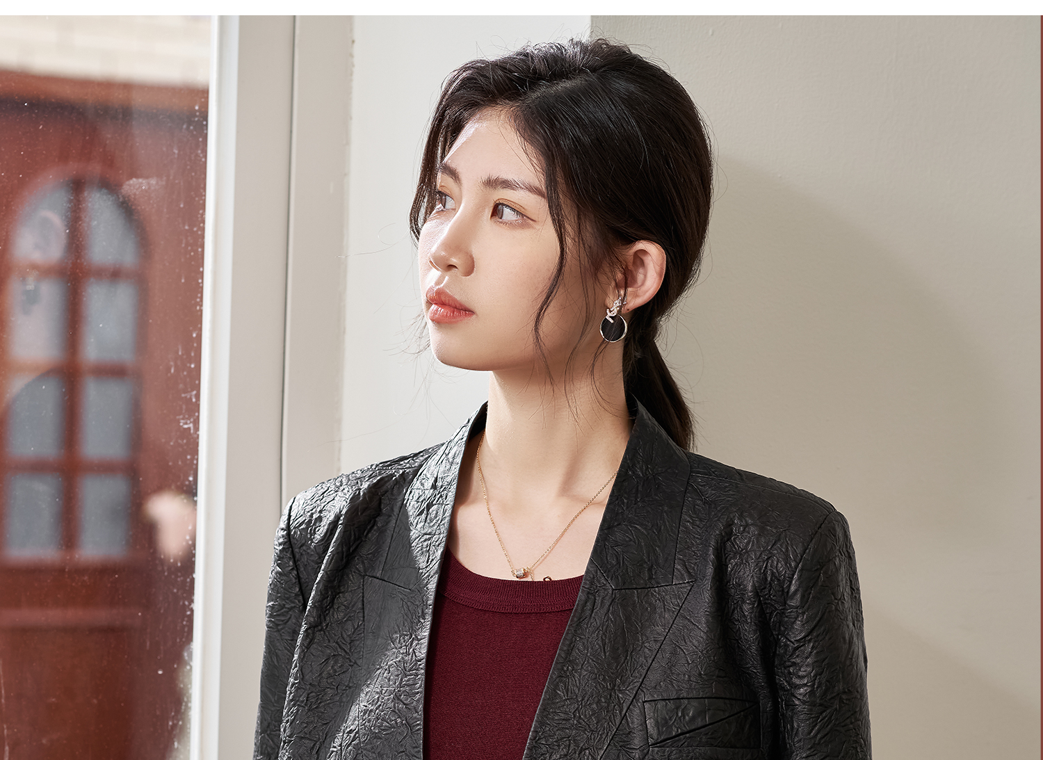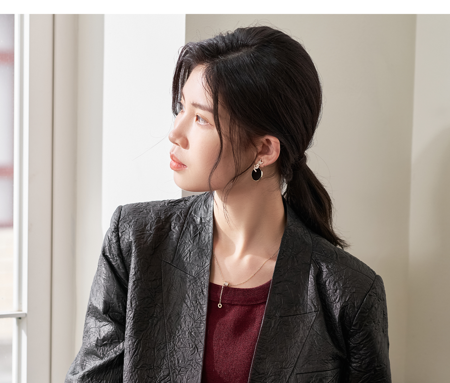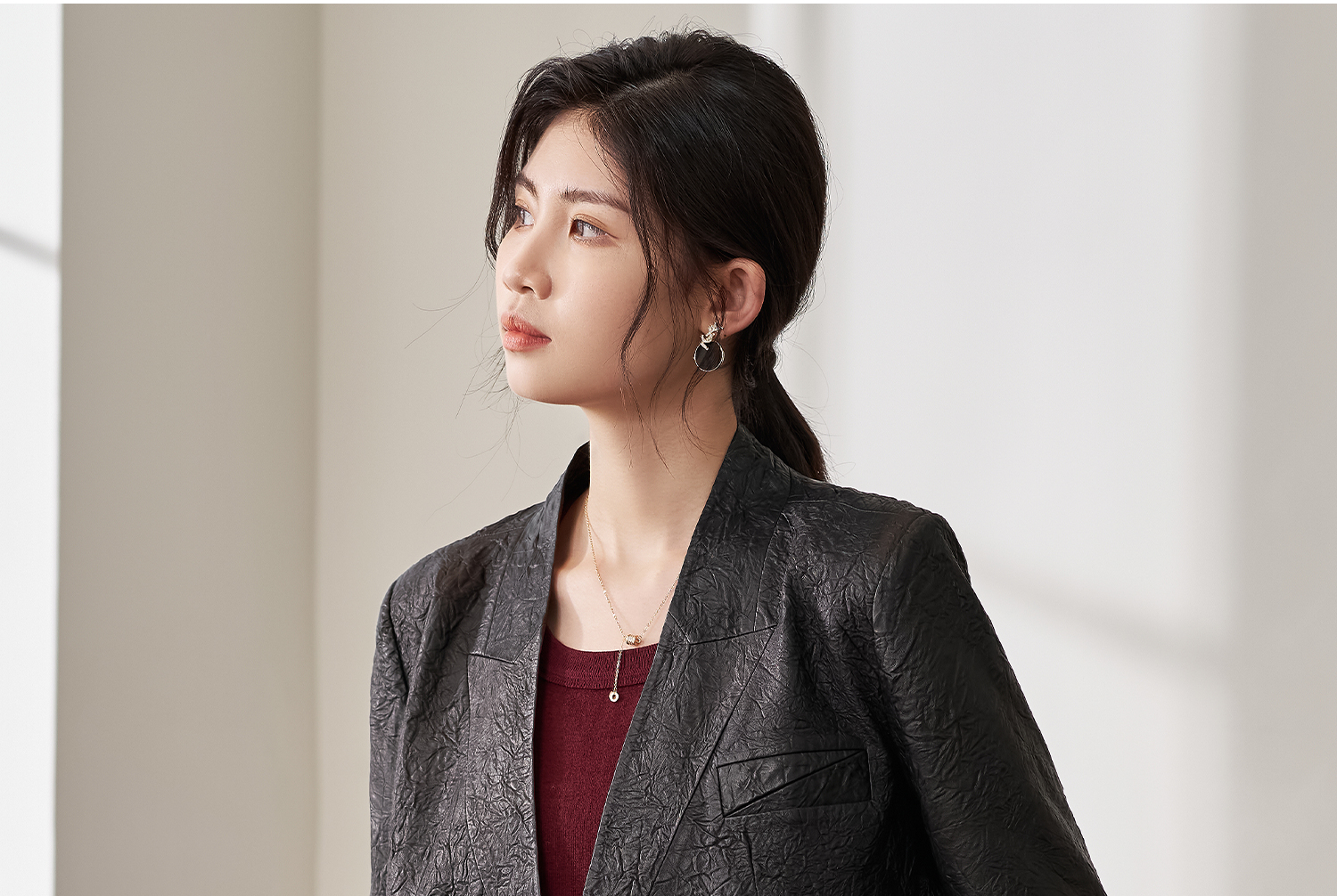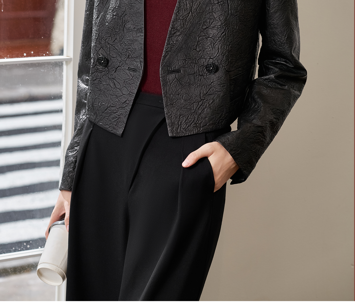 剩S/L 米思阳2026春季新款真皮绵羊皮轻奢褶皱设计感短外套复古气质皮衣外搭上衣女4376