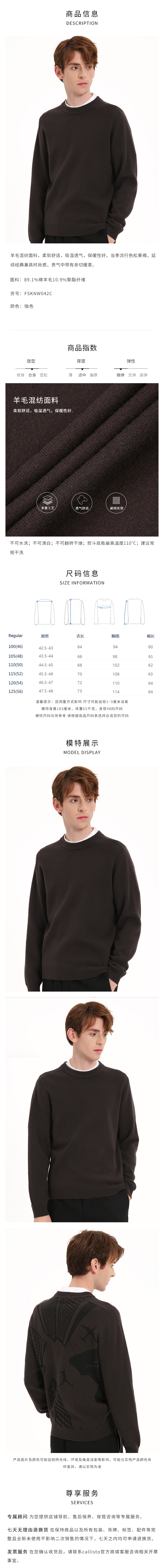 callisto松果褐绵羊毛混纺休闲长袖毛衣 FSKNW042C BR