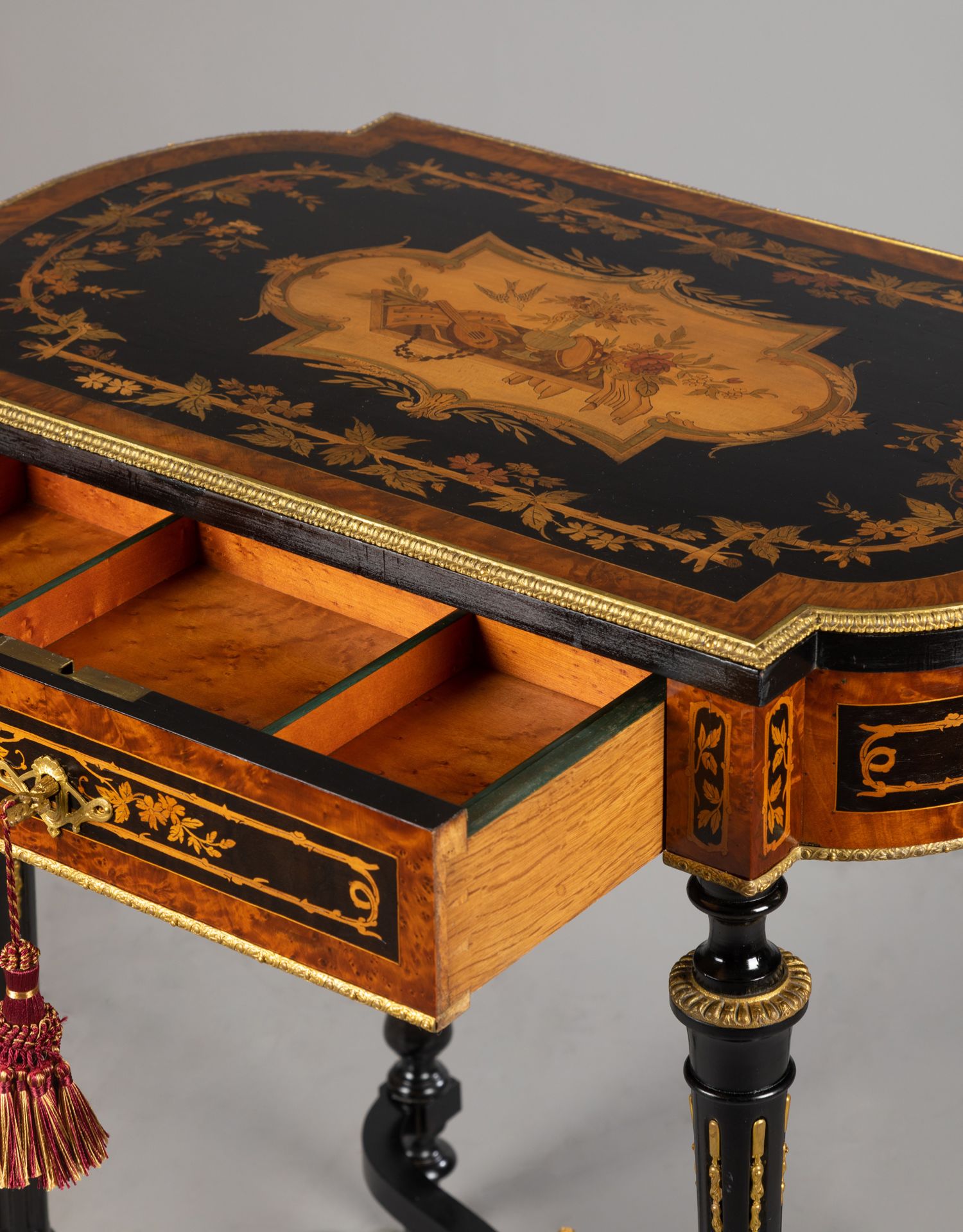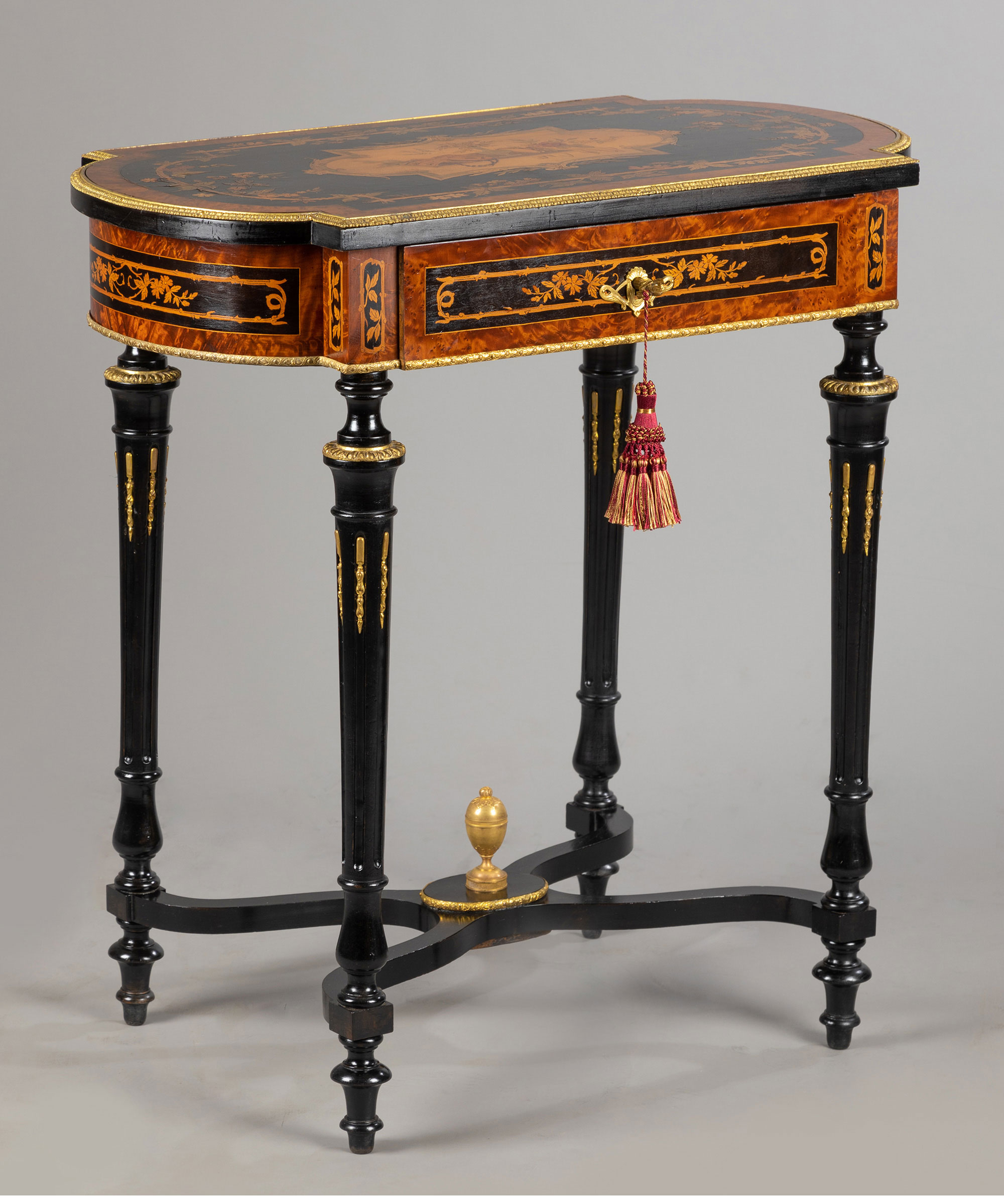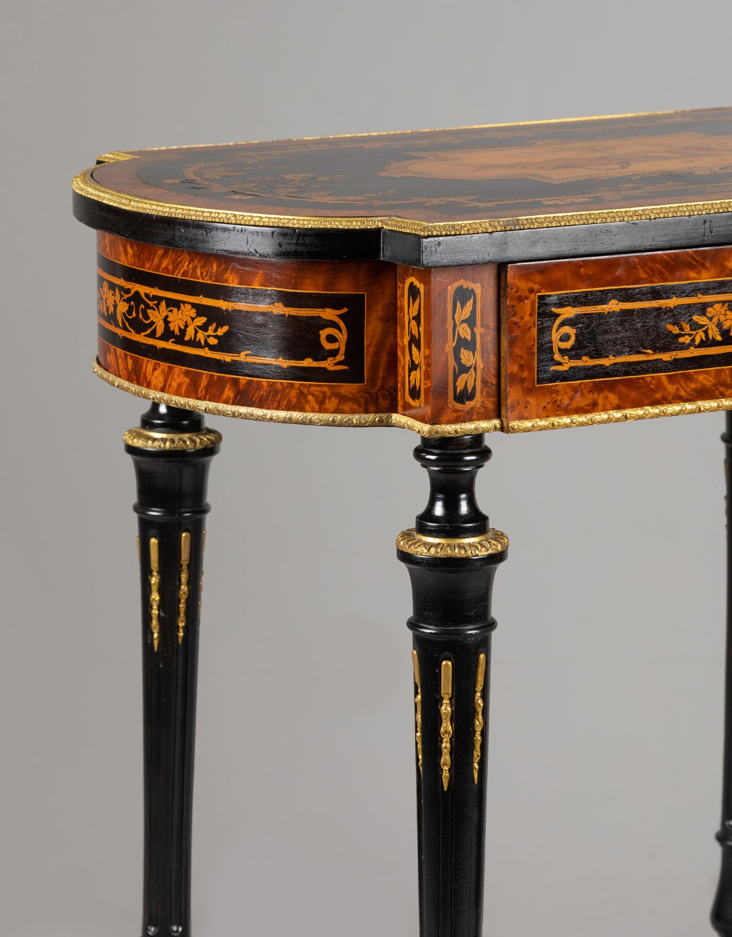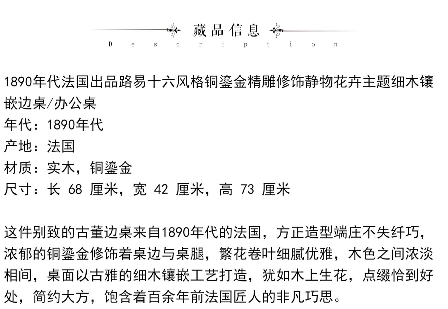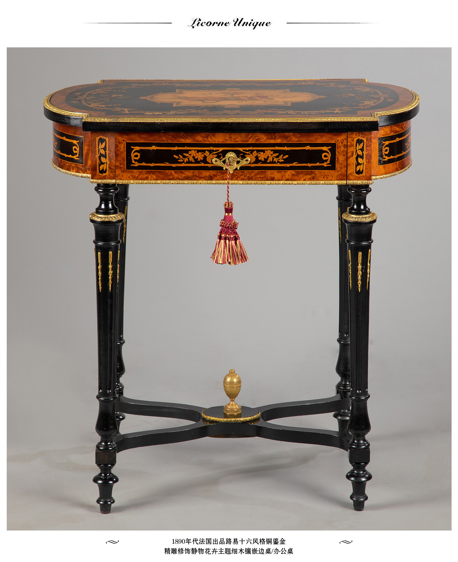 独角鹿西洋古董家具路易十六风铜鎏金静物花卉细木镶嵌边桌办公桌