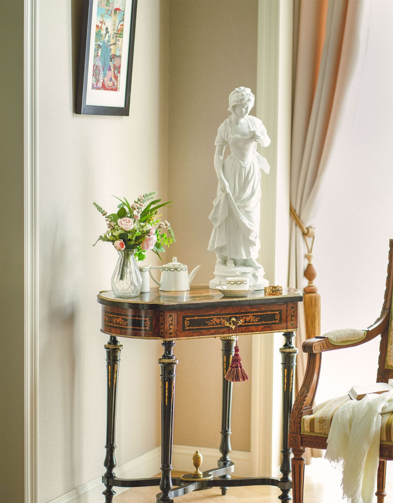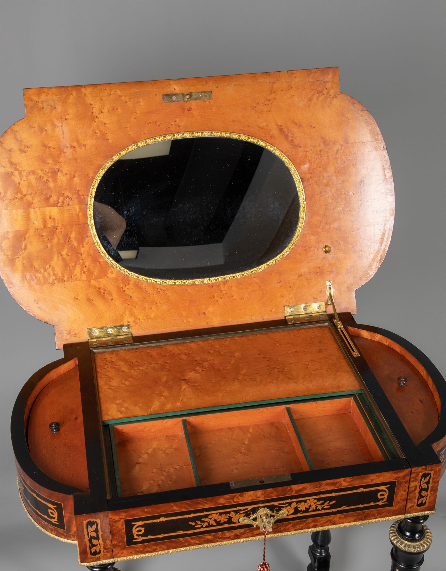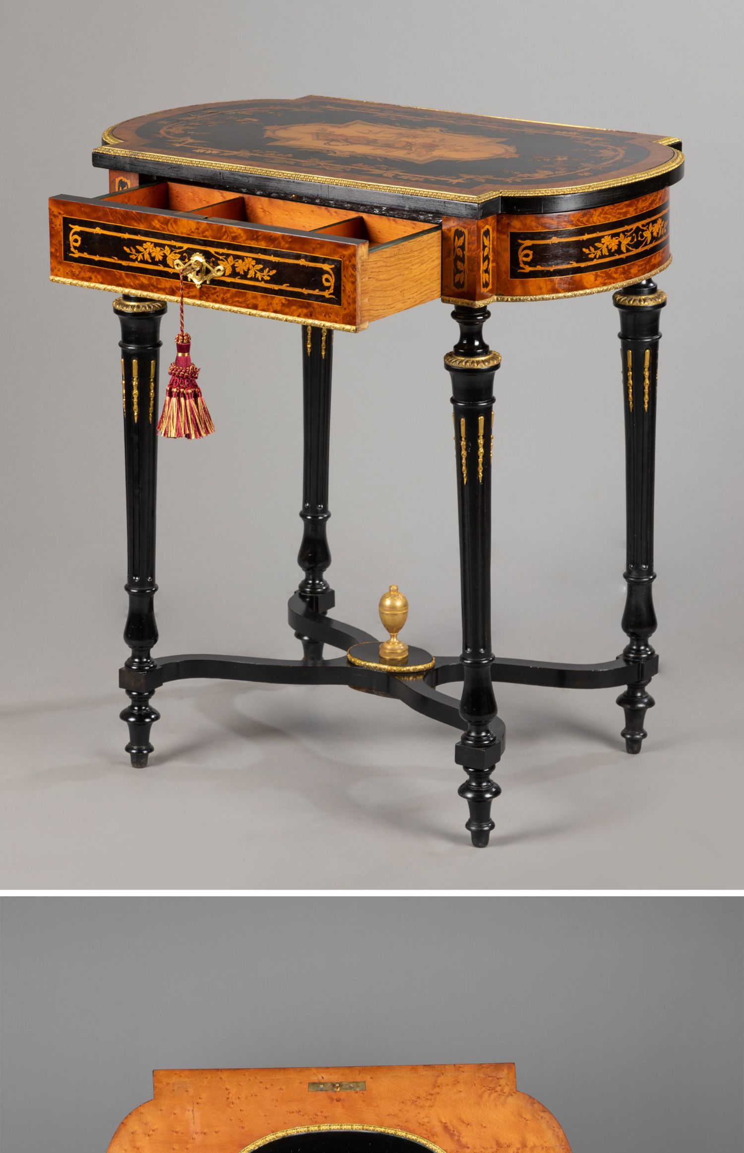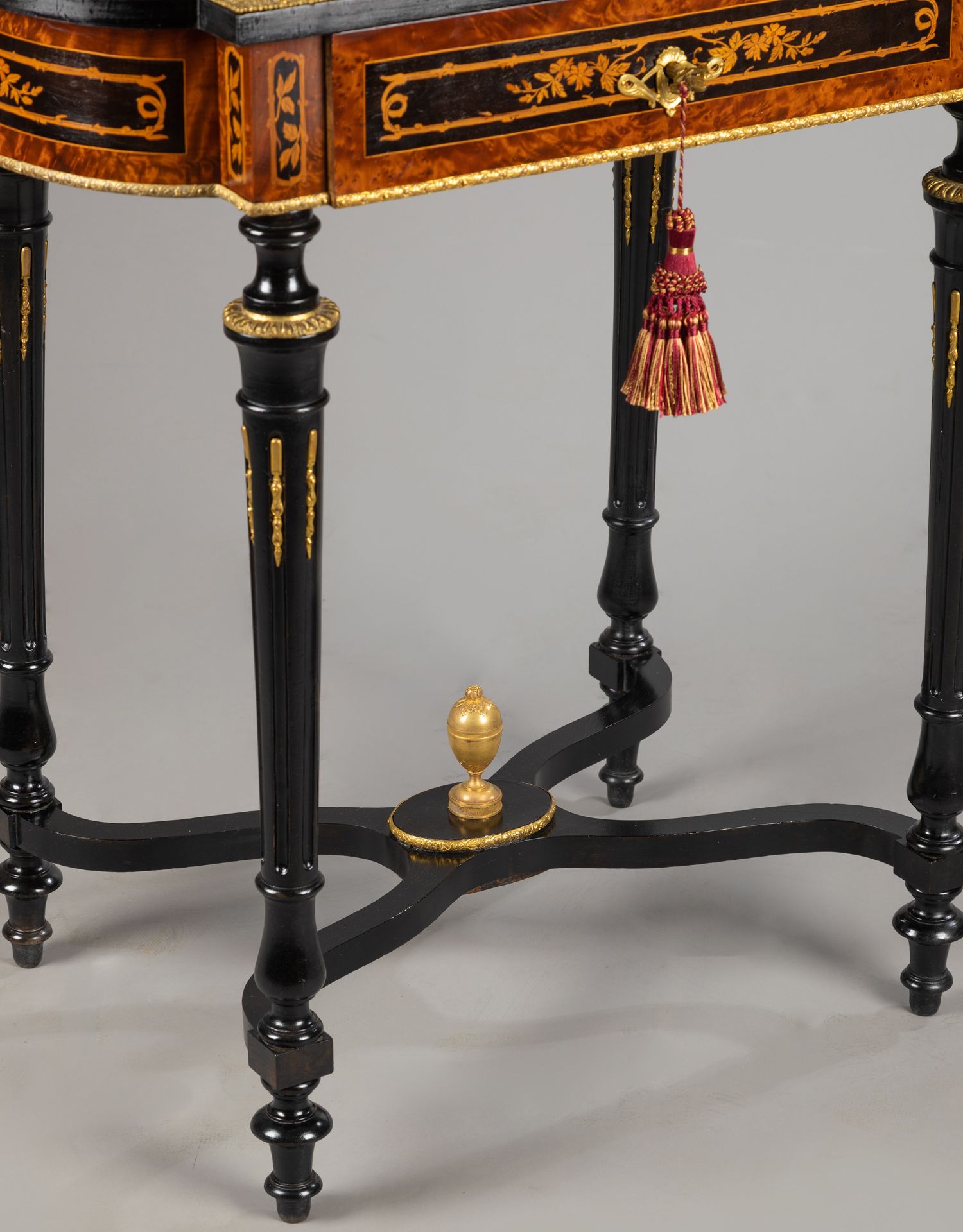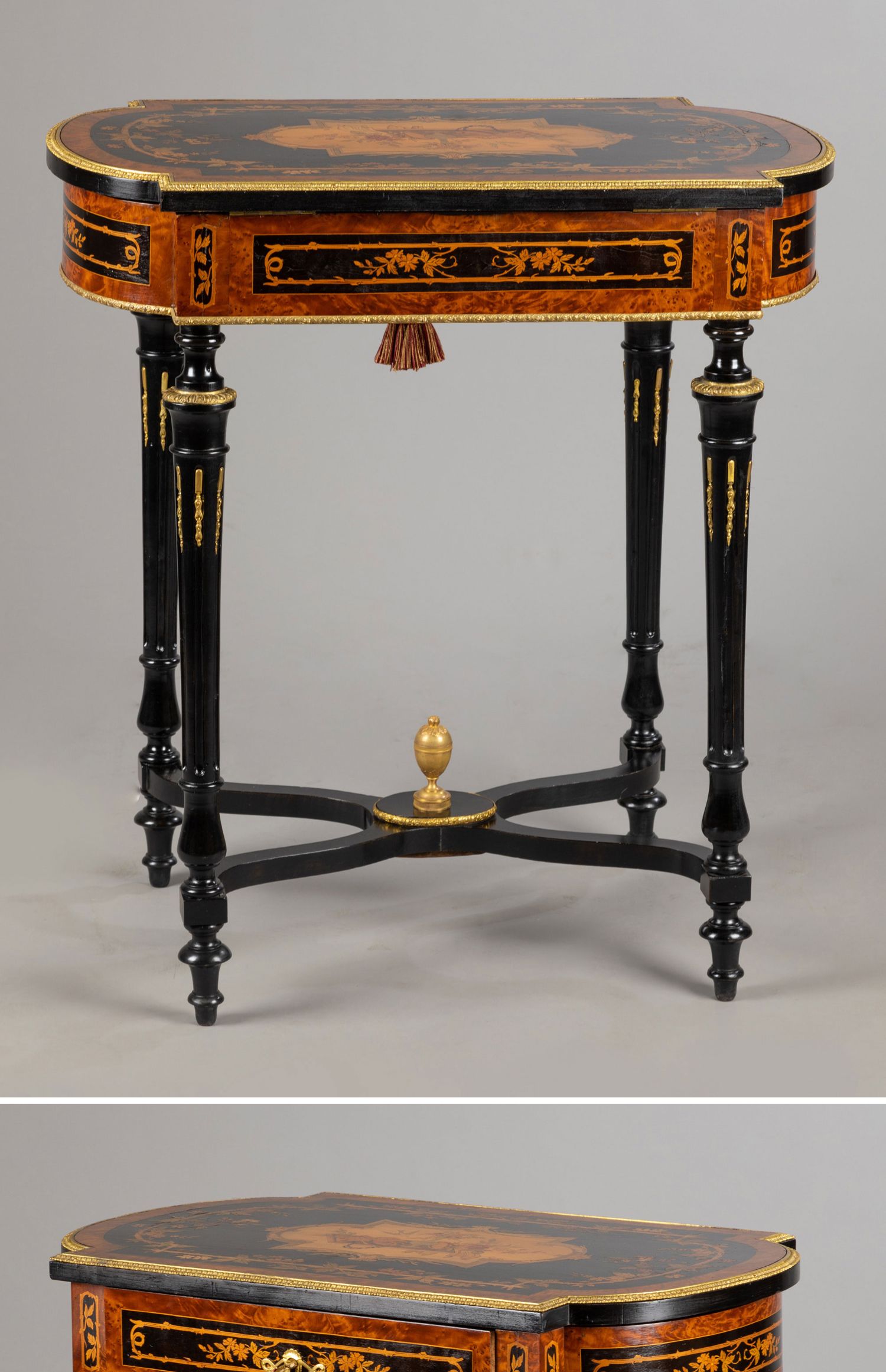 独角鹿西洋古董家具路易十六风铜鎏金静物花卉细木镶嵌边桌办公桌
