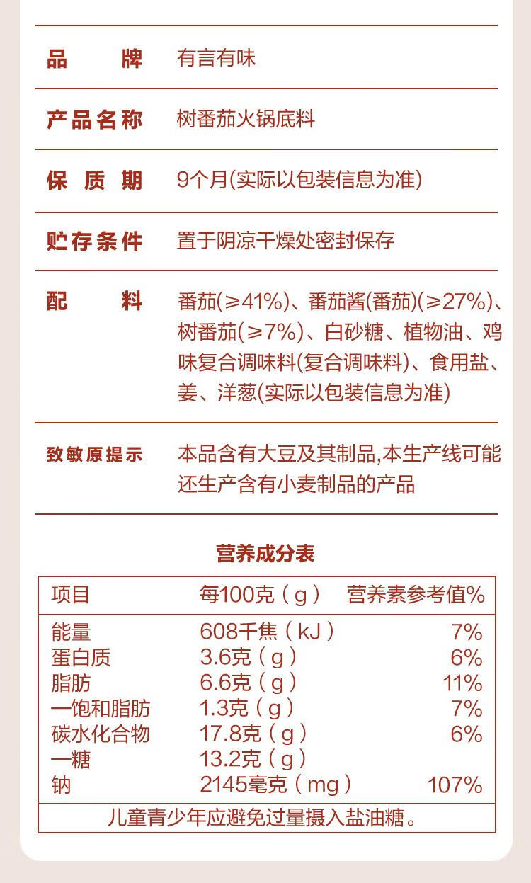 【山姆限定】有言有味 树番茄火锅底料 300g/袋
