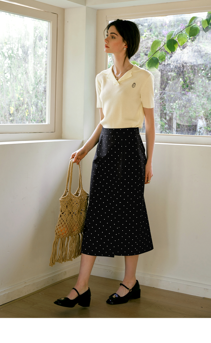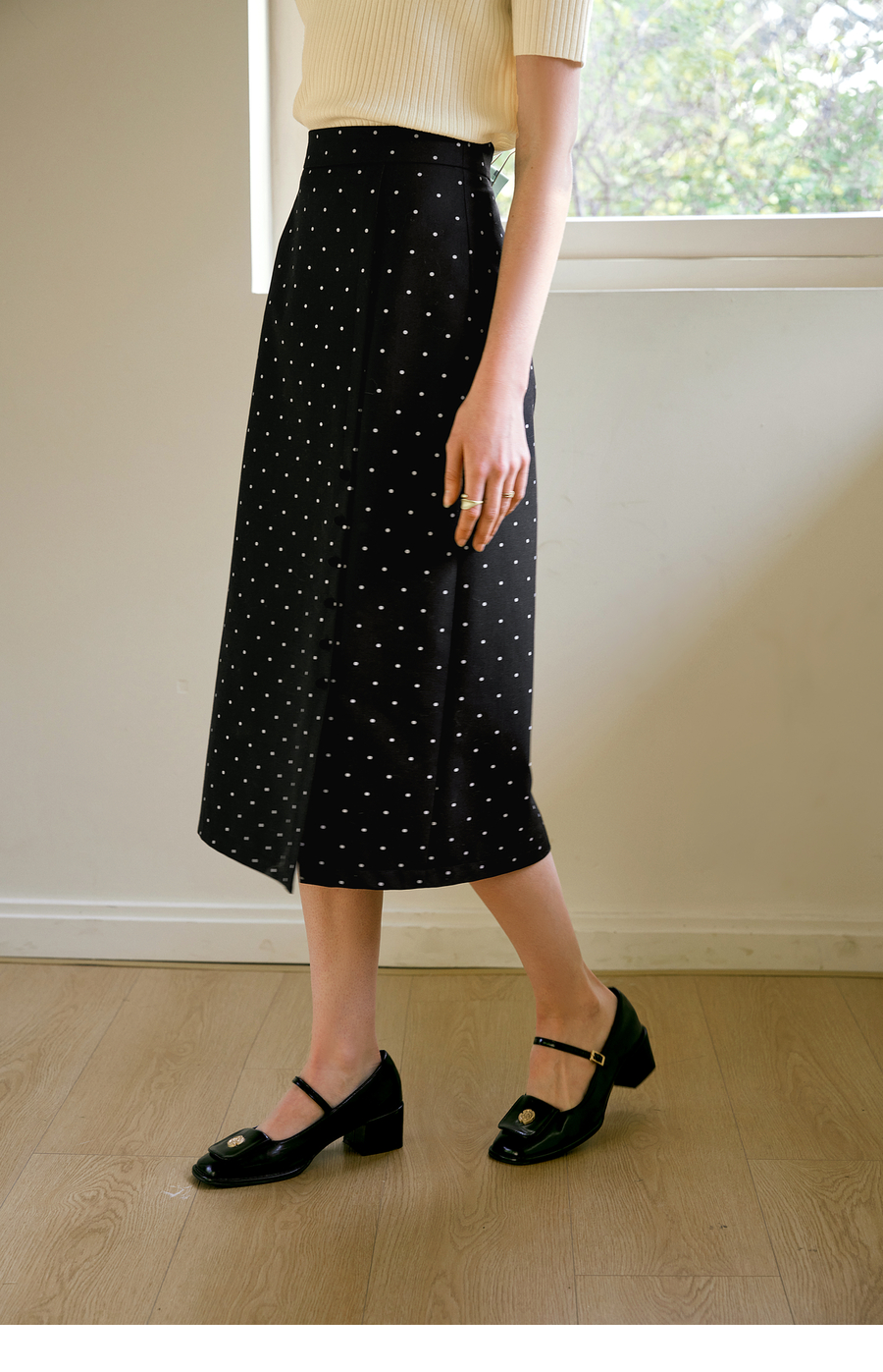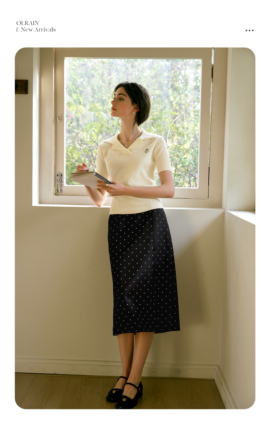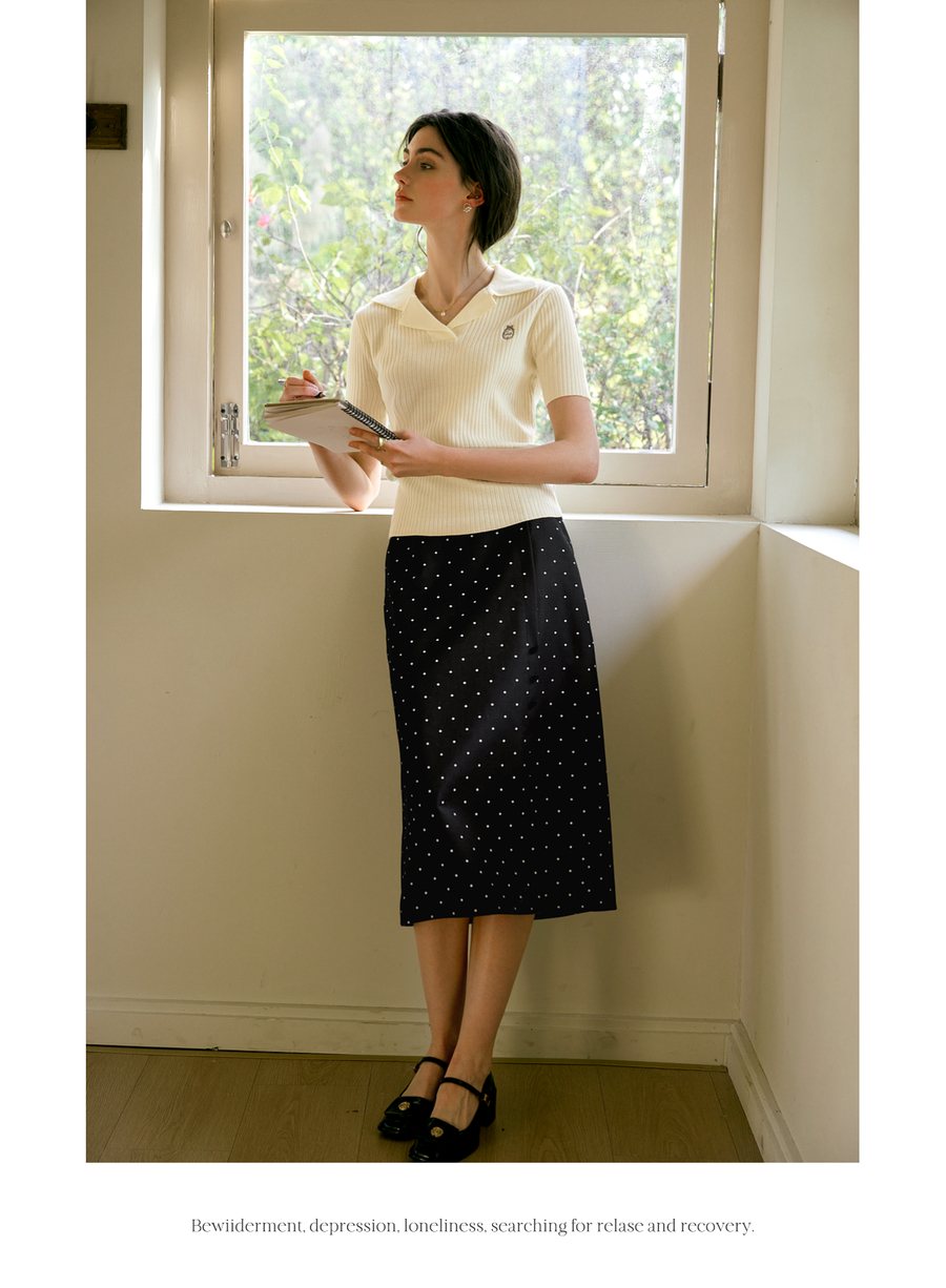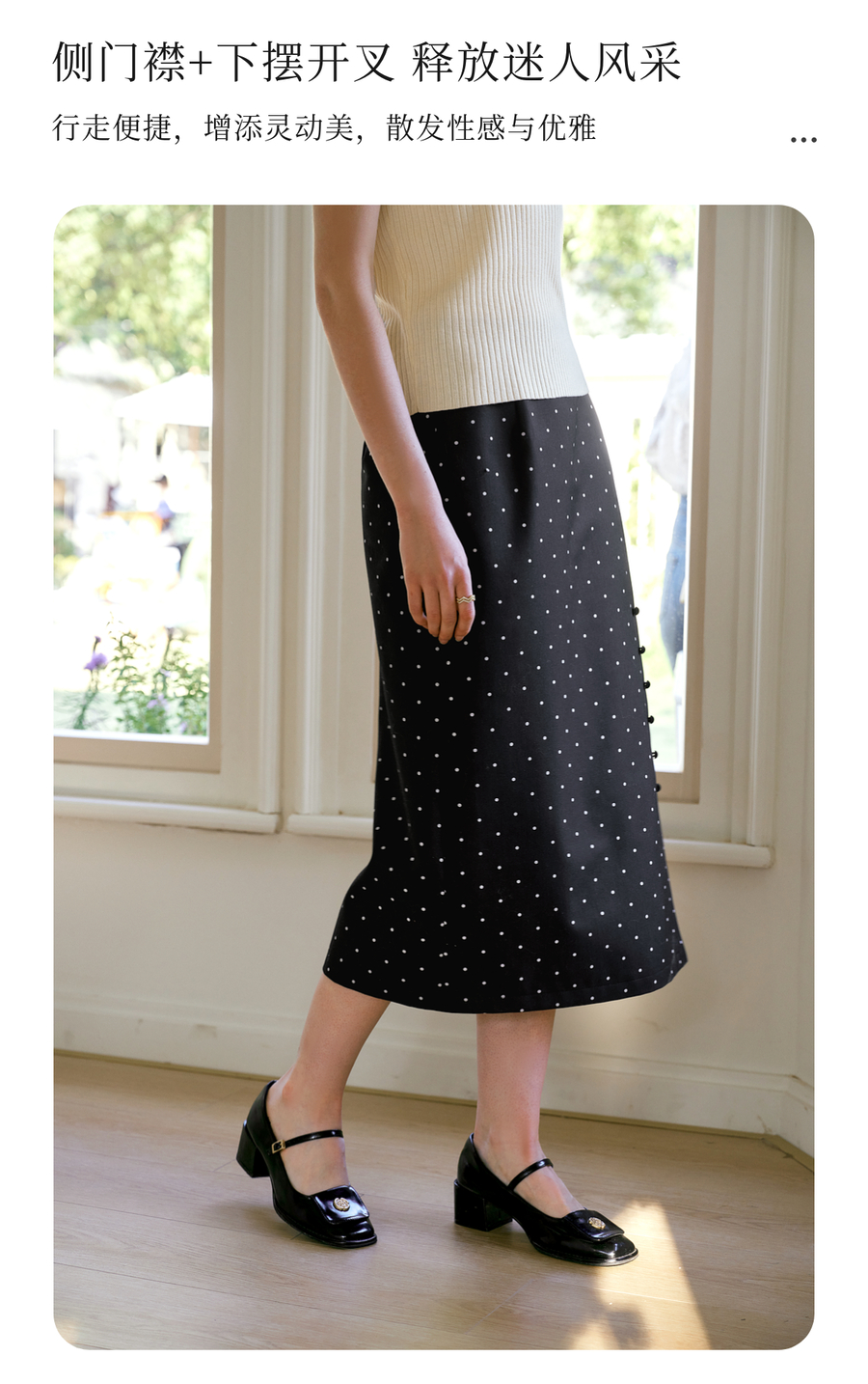 OLrain欧芮儿2025春季新款法式复古波点开叉纽扣高腰中长半身裙女