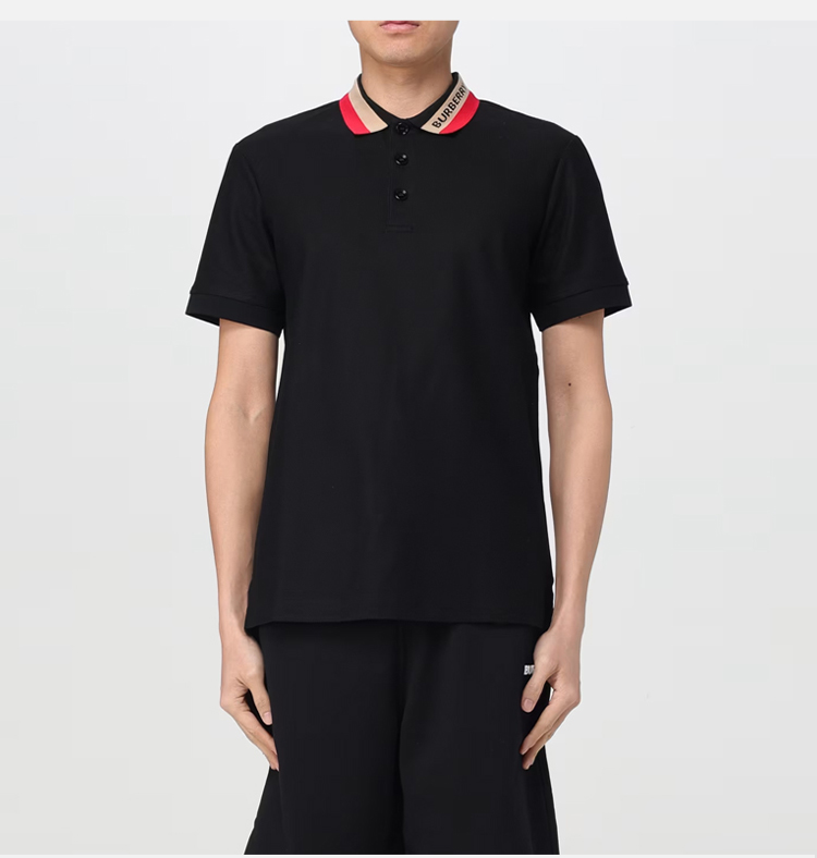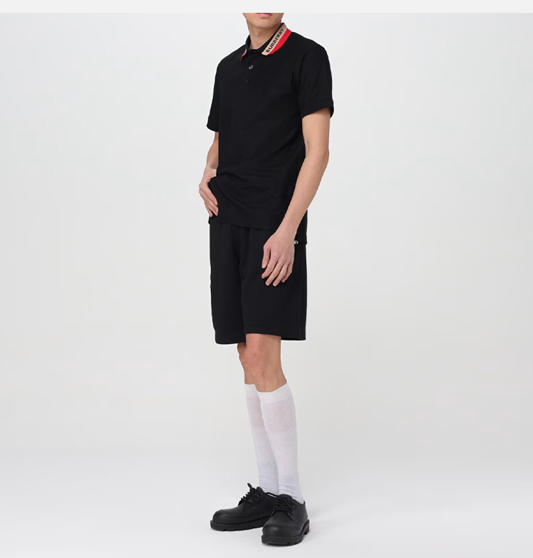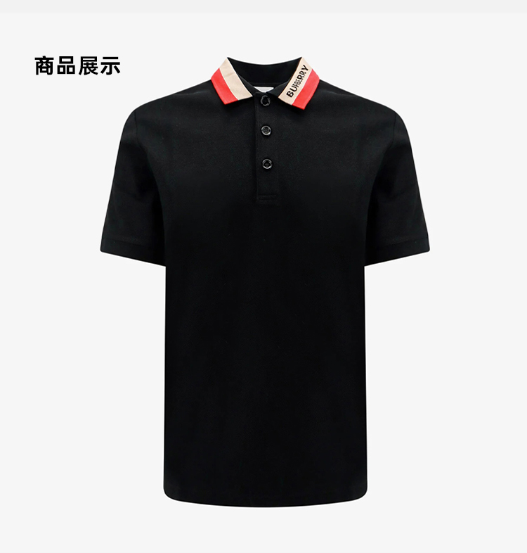 BURBERRY 巴宝莉 男士条纹衣领棉质短袖polo衫 黑色 8083154 A1189
