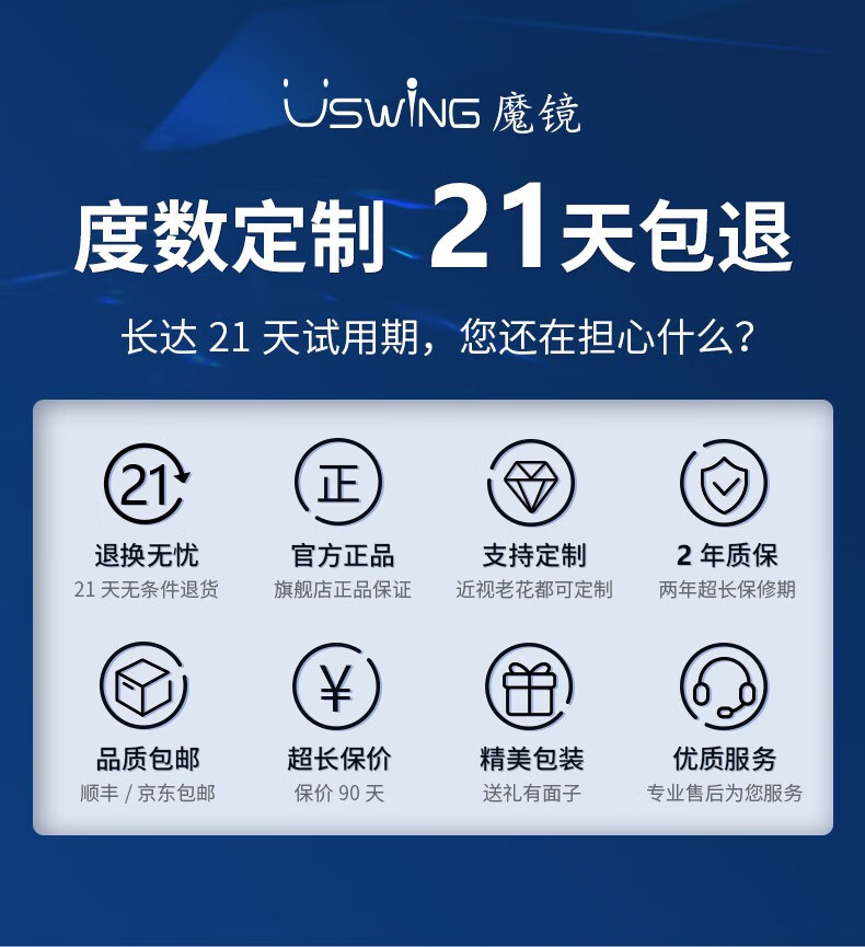 USWING【度数定制】Uswing魔镜太阳镜 蓝色魔彩定制 800度以下太阳眼镜