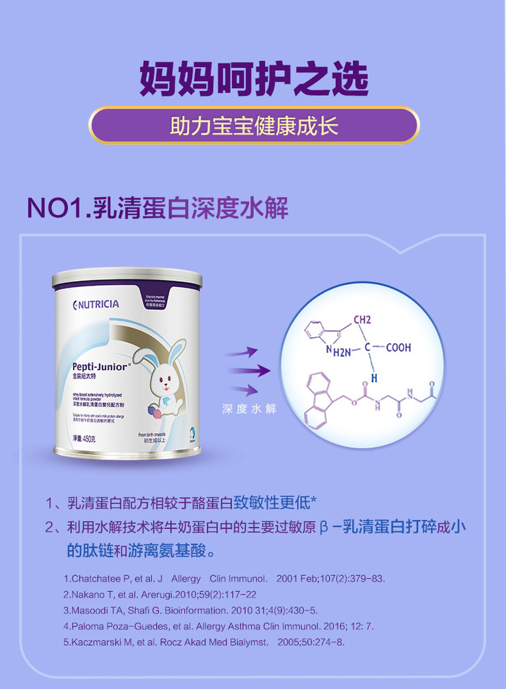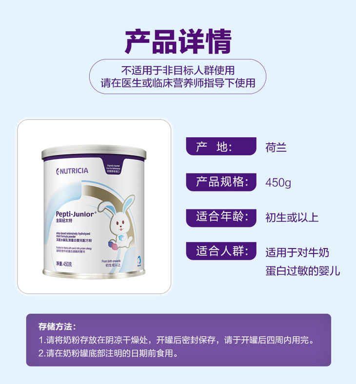 纽太特中文版 乳蛋白深度水解奶粉450g抗过敏奶粉