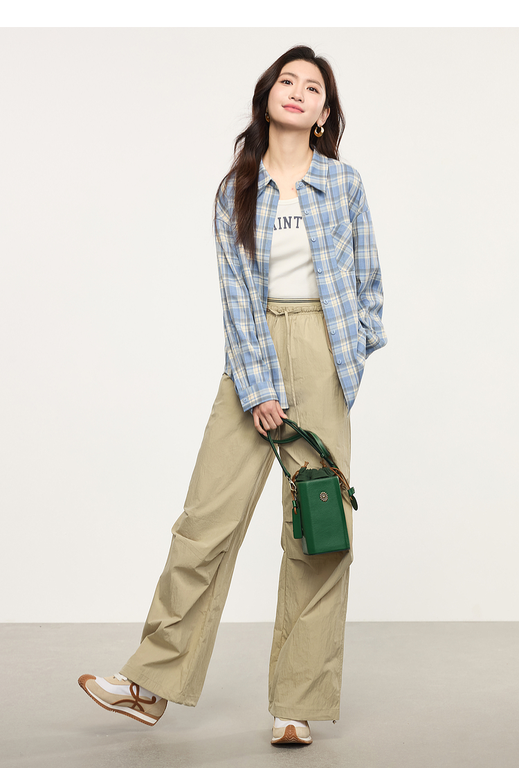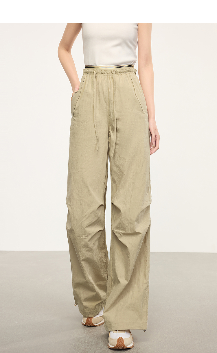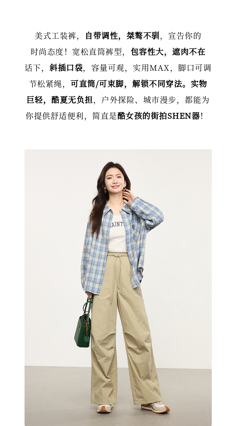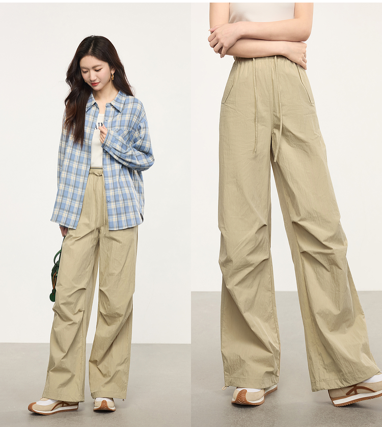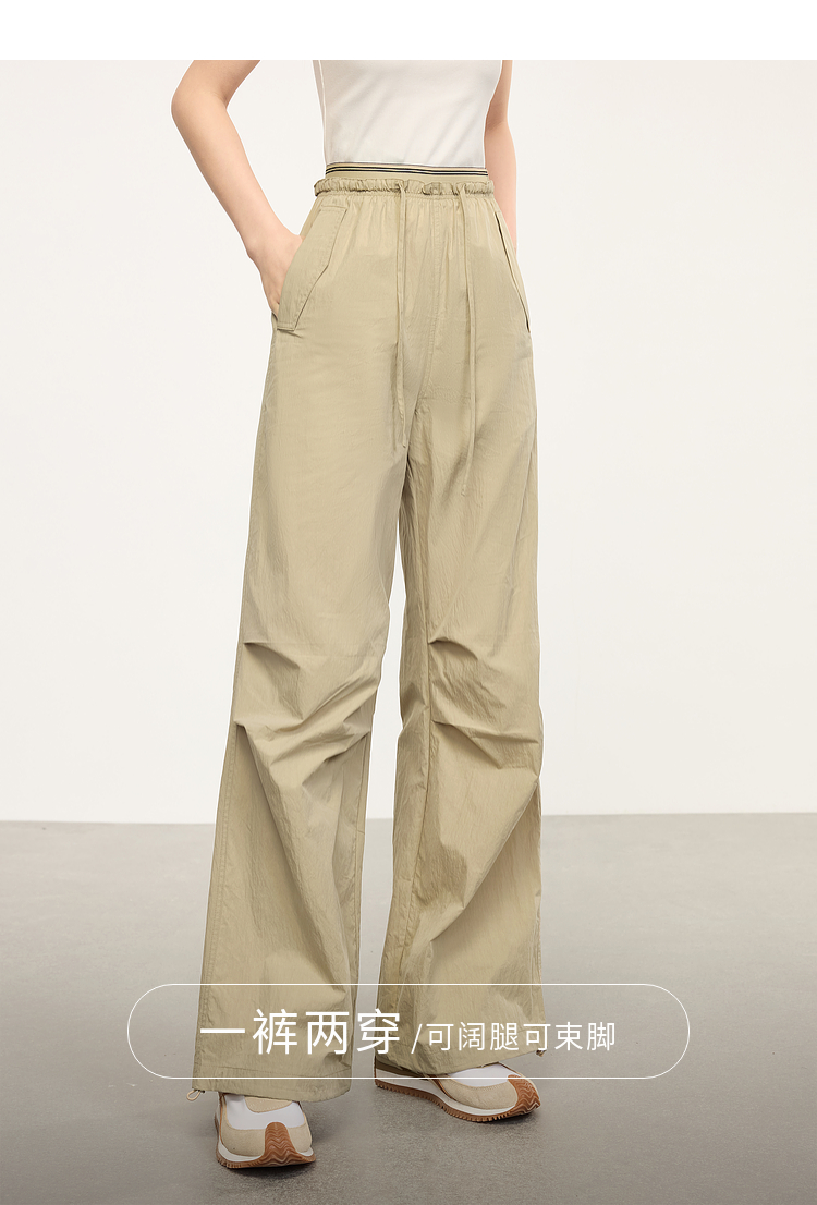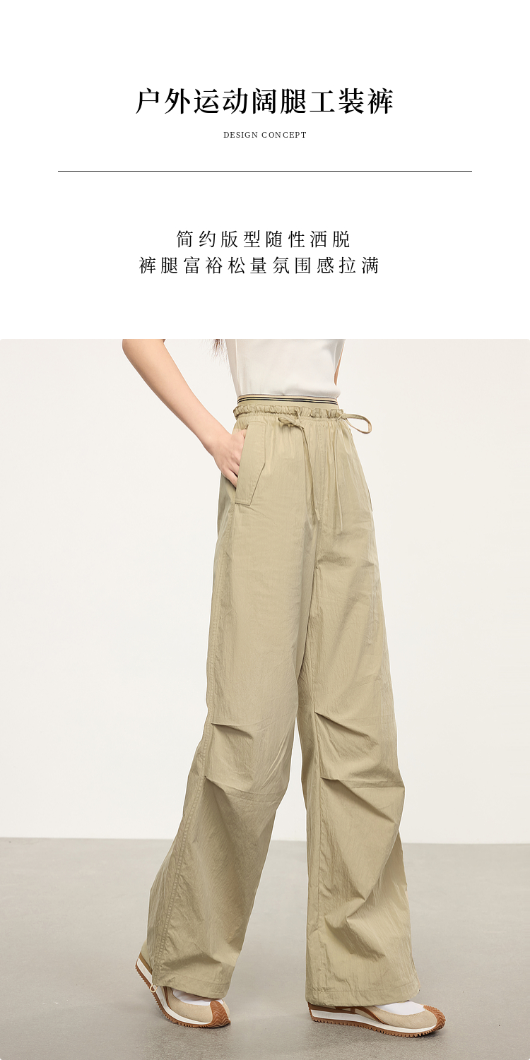 【专属特价】熙世界户外运动风阔腿工装裤女2025春秋新款美式宽松束脚直筒长裤