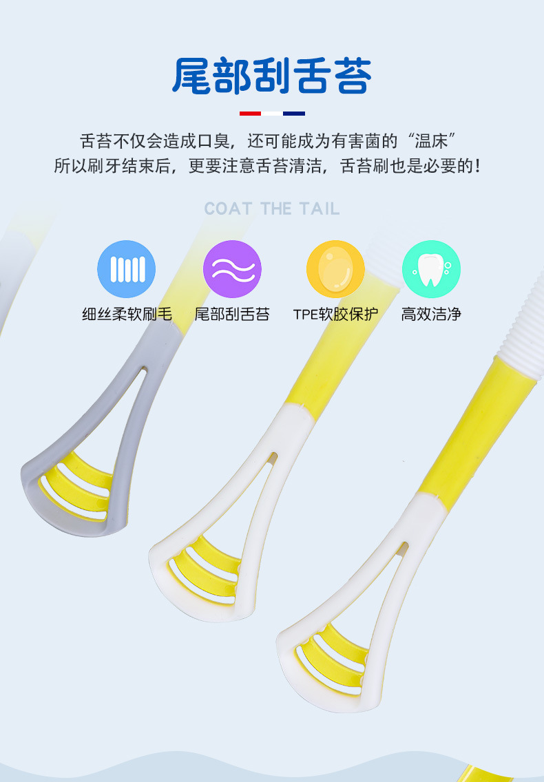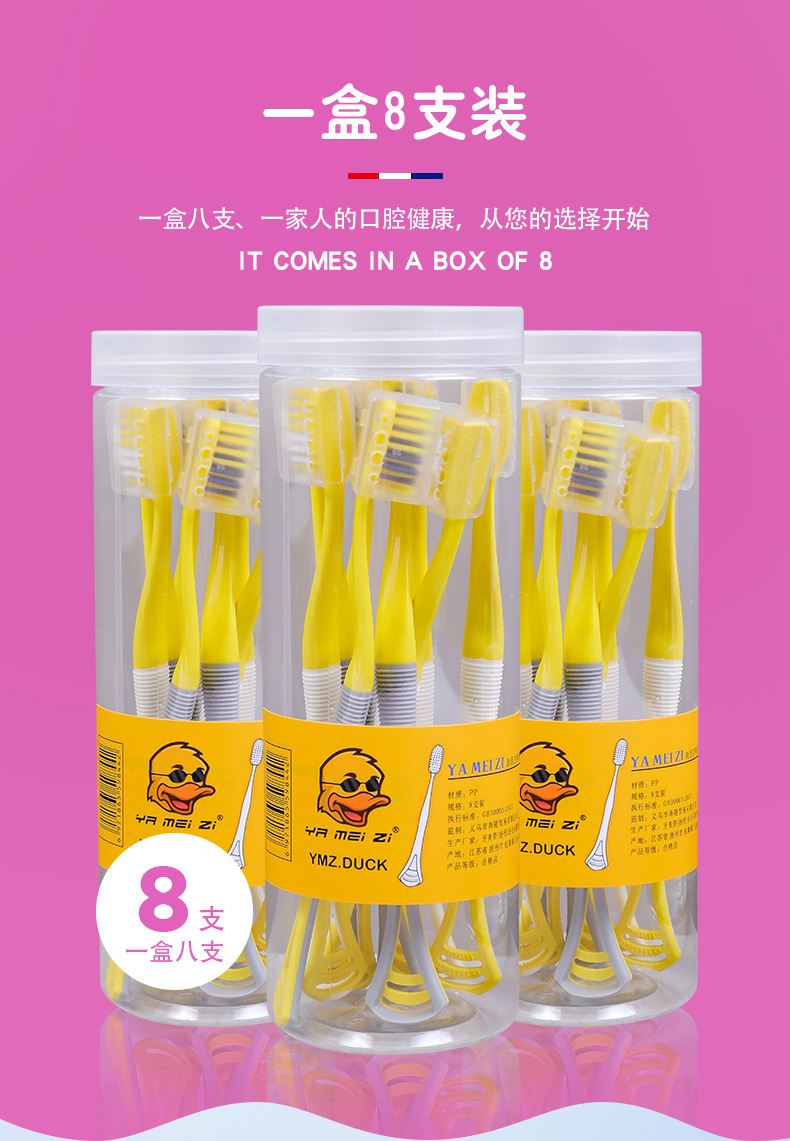 「9.9元包邮!8支装」黄鸭款刮舌苔牙刷 软毛成人便携式旅行家庭装家用口腔护理牙缝刷细去口臭
