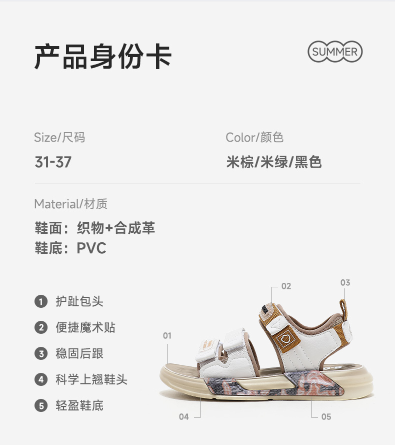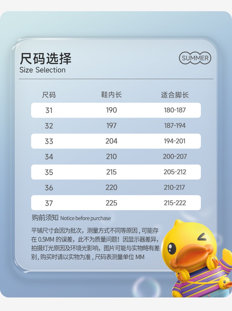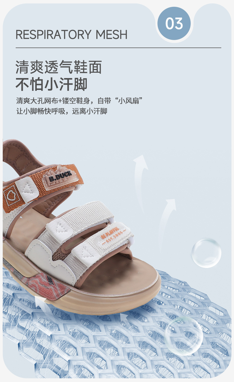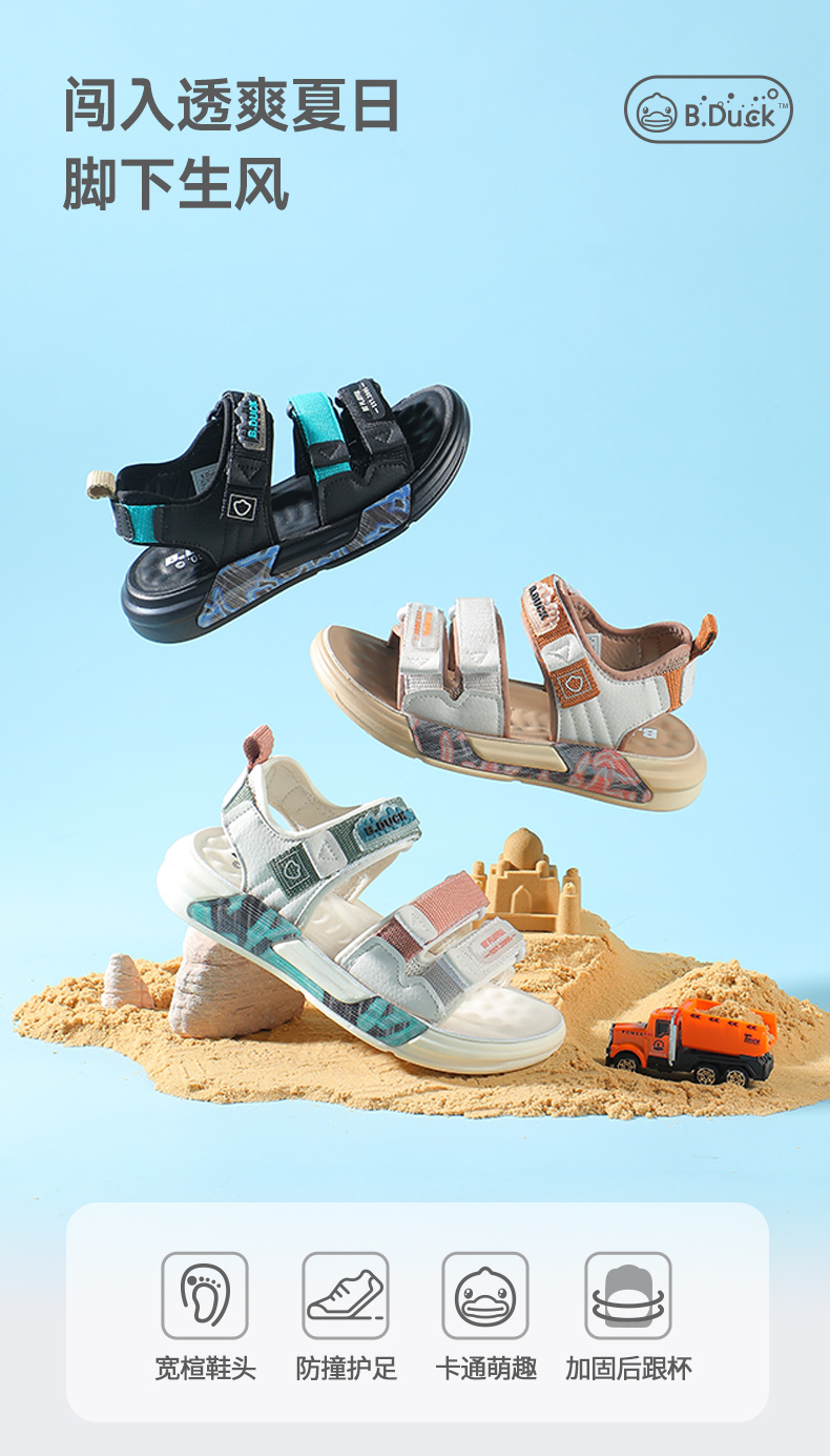 B.Duck小黄鸭童鞋儿童夏季新款男童凉鞋软底防滑潮鞋子 B2483020