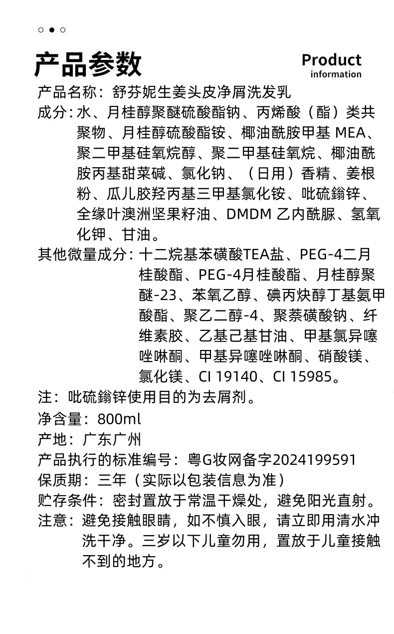 舒芬妮生姜头皮净屑洗发乳800ml(满一件赠同品洗发乳10ml)