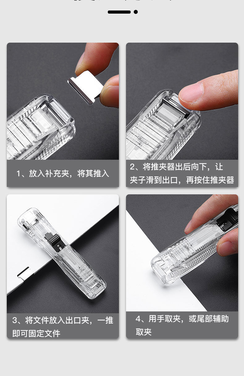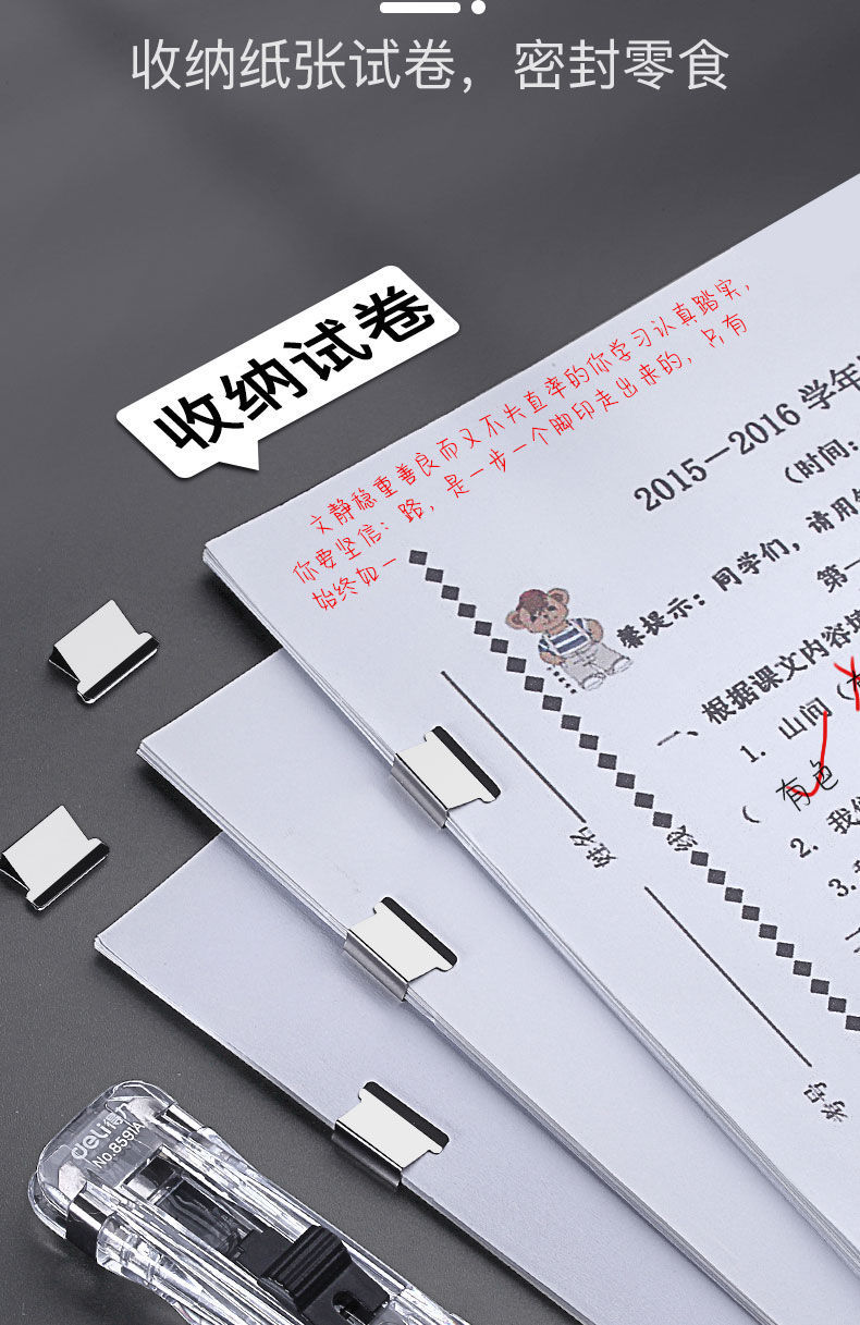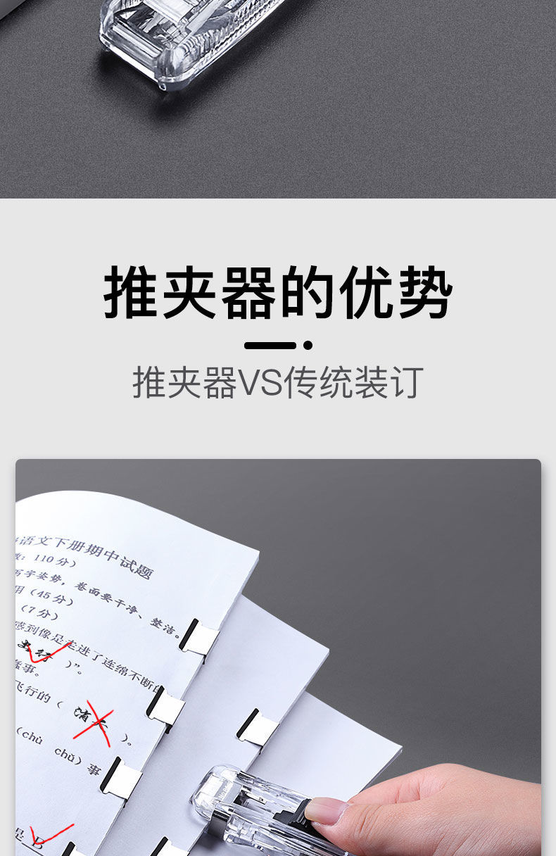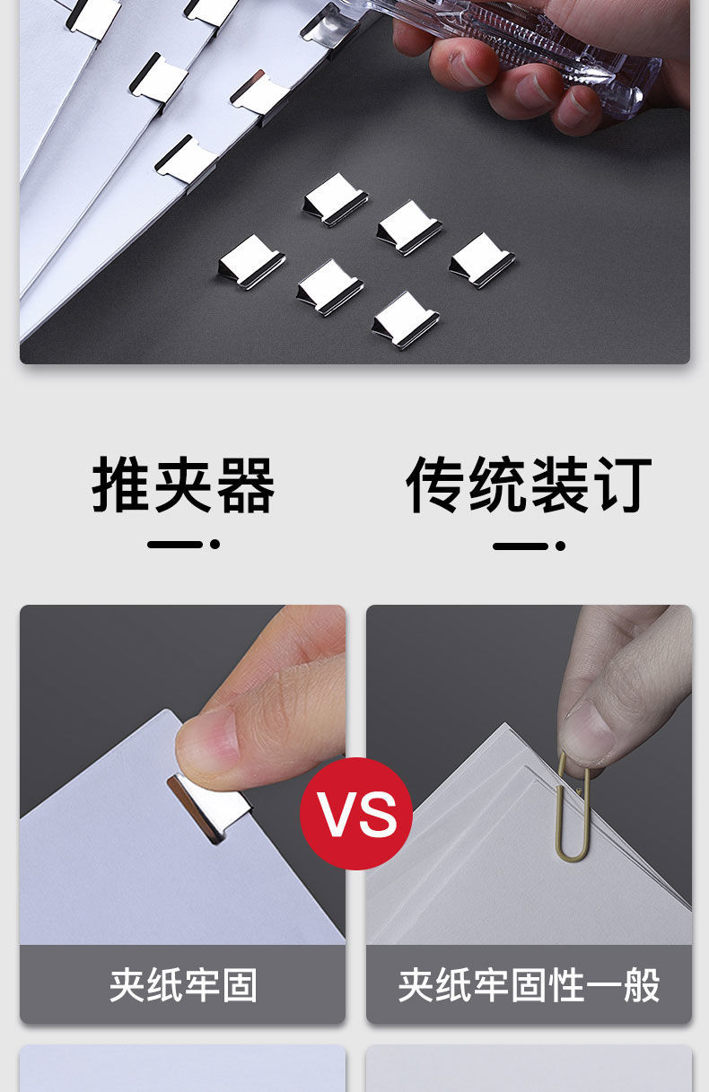 开学季福利!【不打孔的装订神器】得力推夹器补充夹文具订书机试卷装订纸张固定文件资料夹子金属小票夹订书补充钉燕尾铁夹整理神器