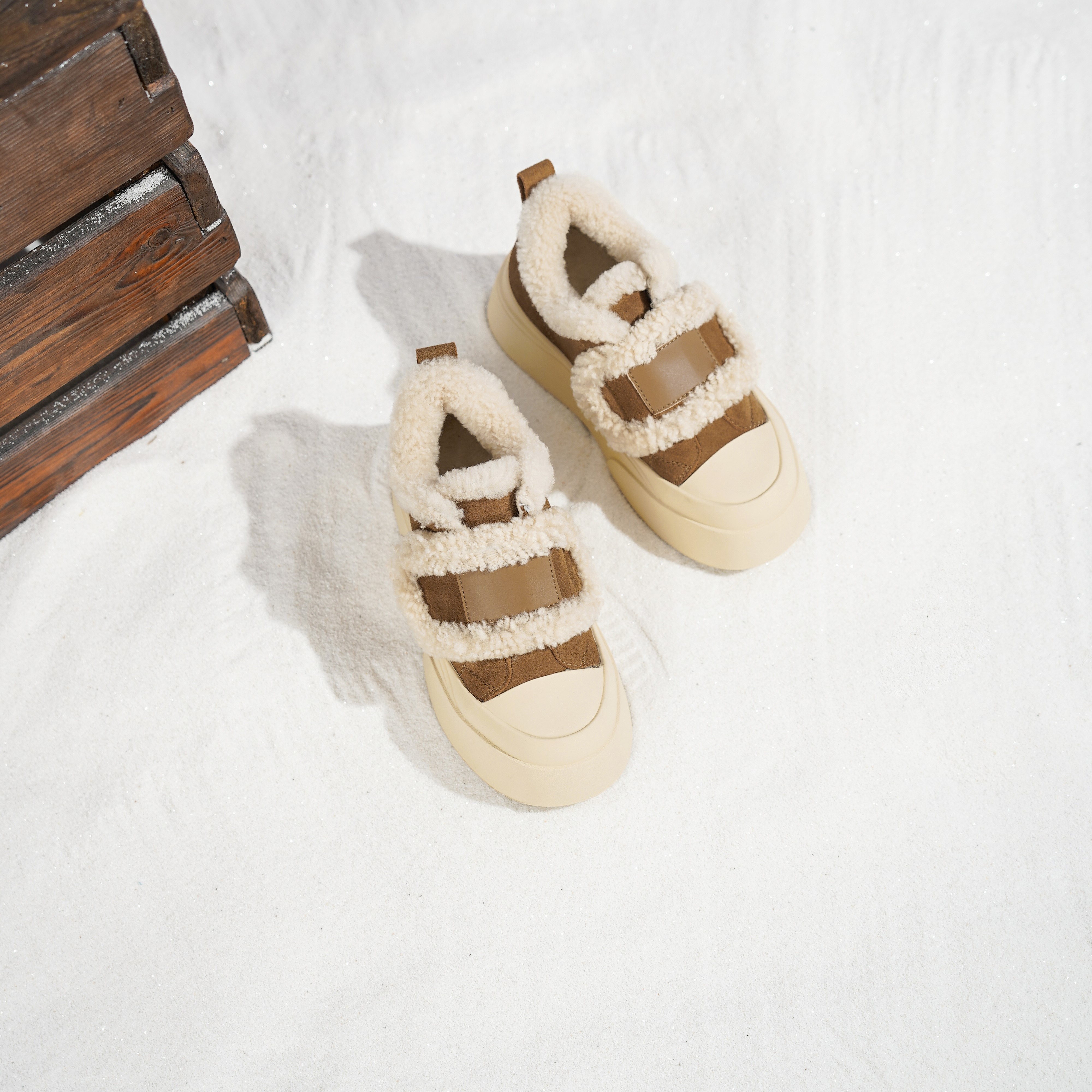 西村名物2025年冬季新款加绒百搭大头厚底毛毛板鞋面包鞋摩卡慕斯T25DS49331