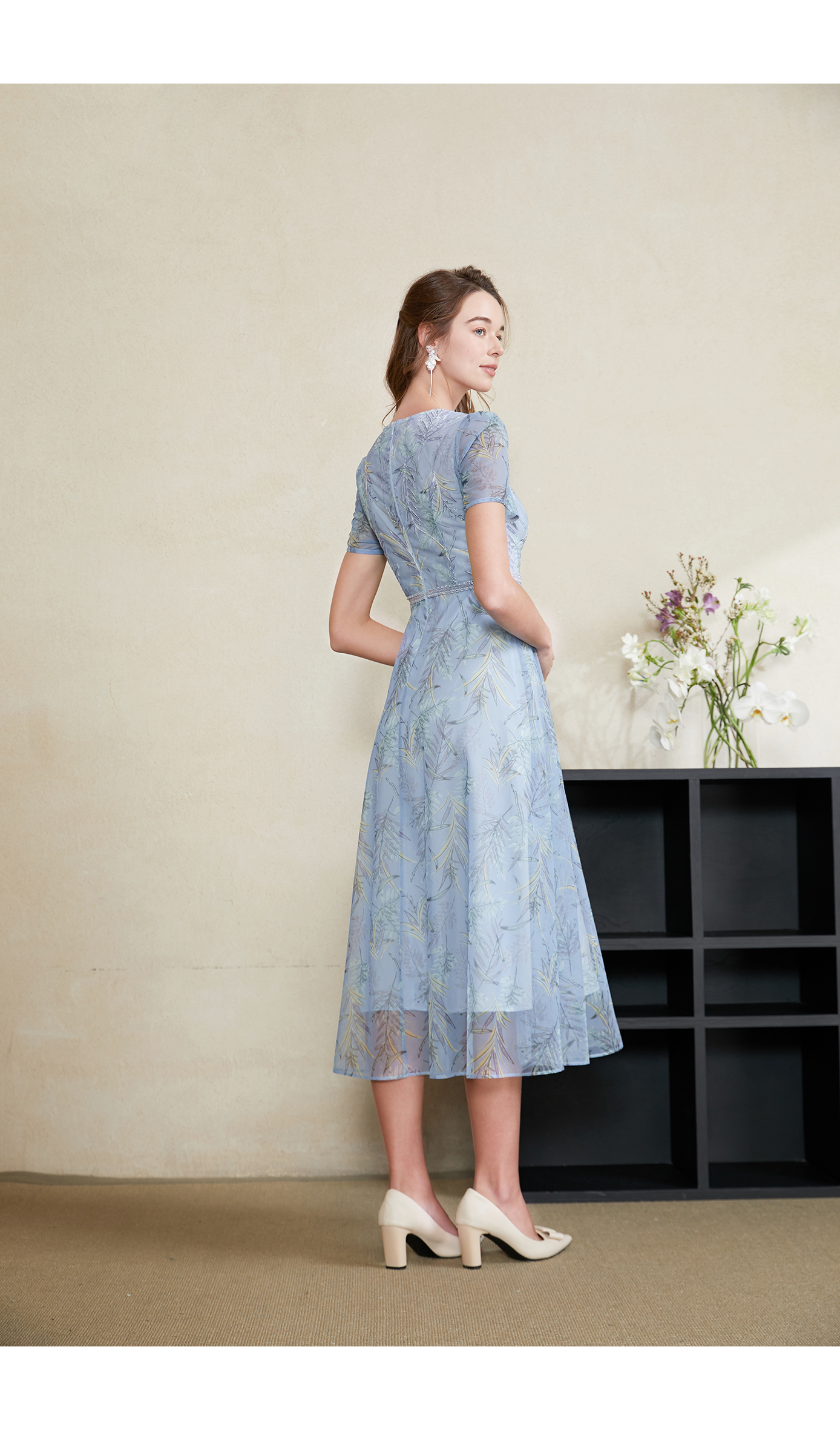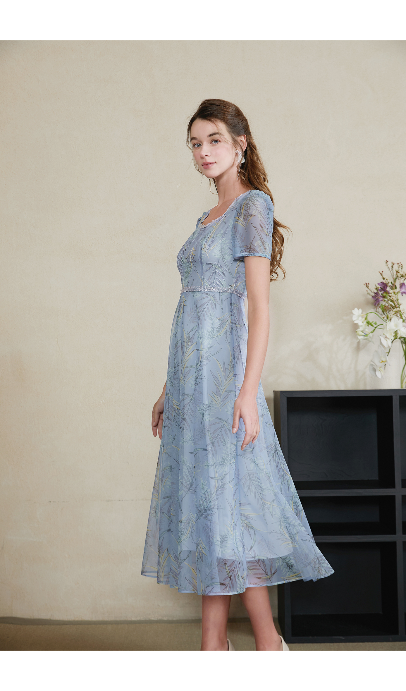 司歌V领荷叶袖修身连衣裙A871080