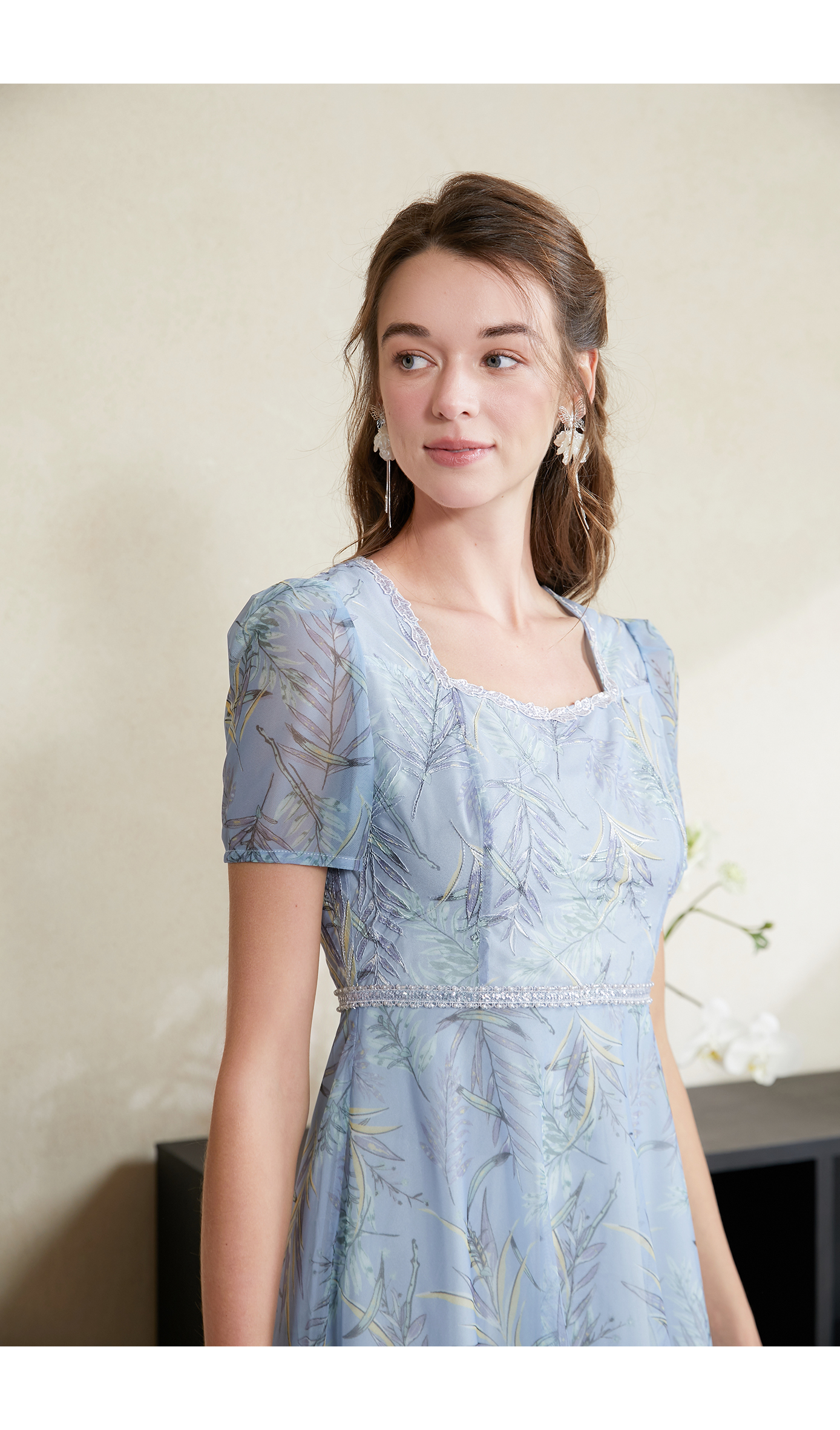 司歌钉珠仙气白连衣裙A911164X