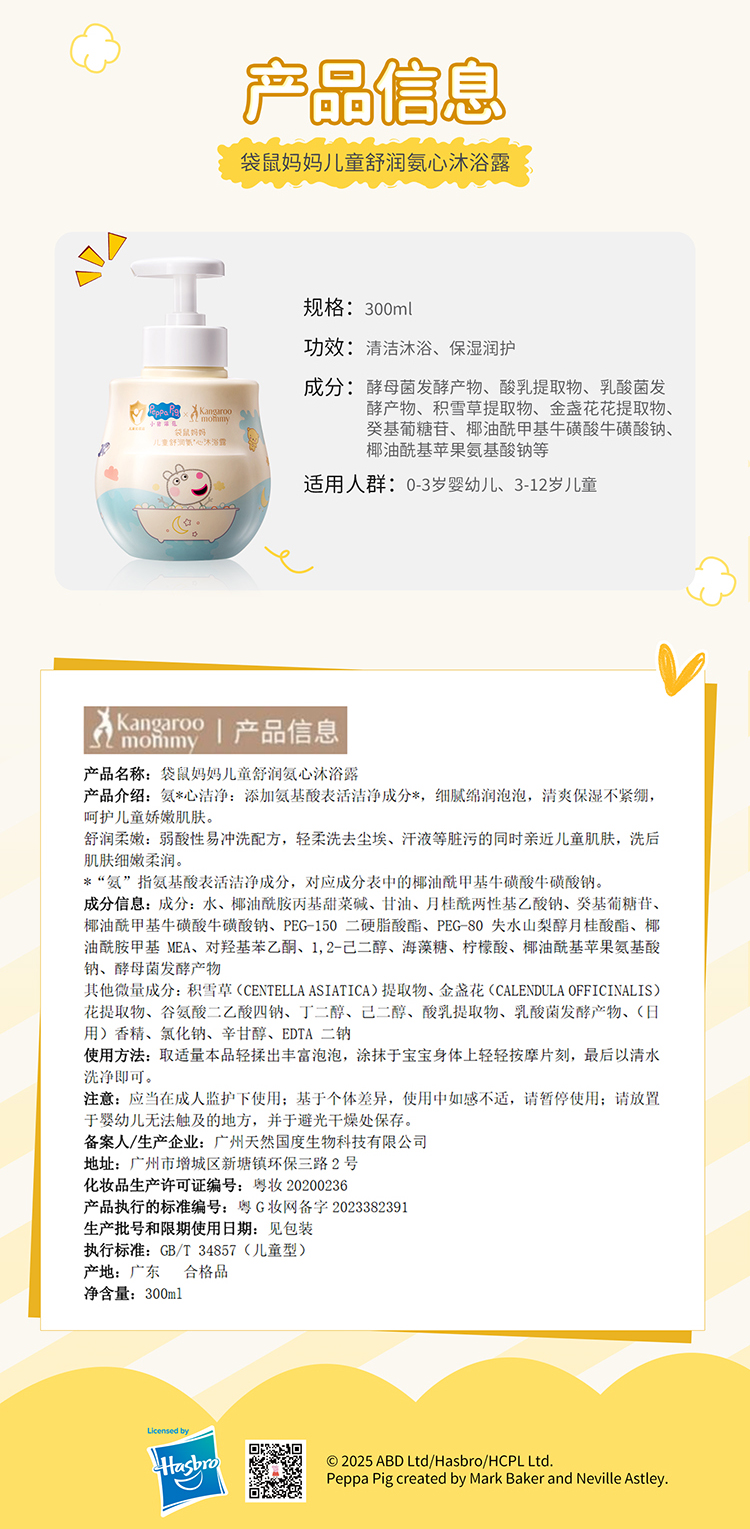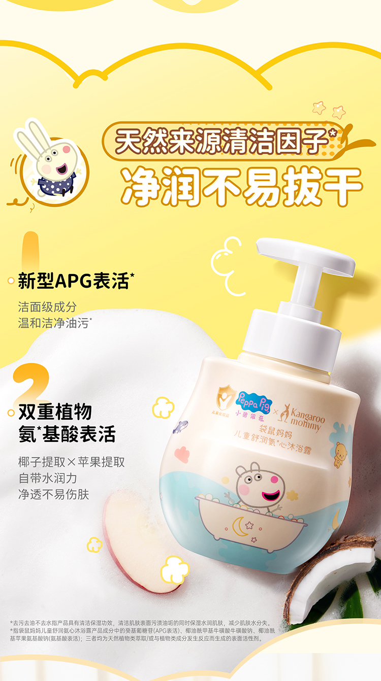 【小猪佩奇联名款】新生儿可用 温和清洁 浴后舒缓 水润不紧绷 儿童舒润氨心沐浴露300ml