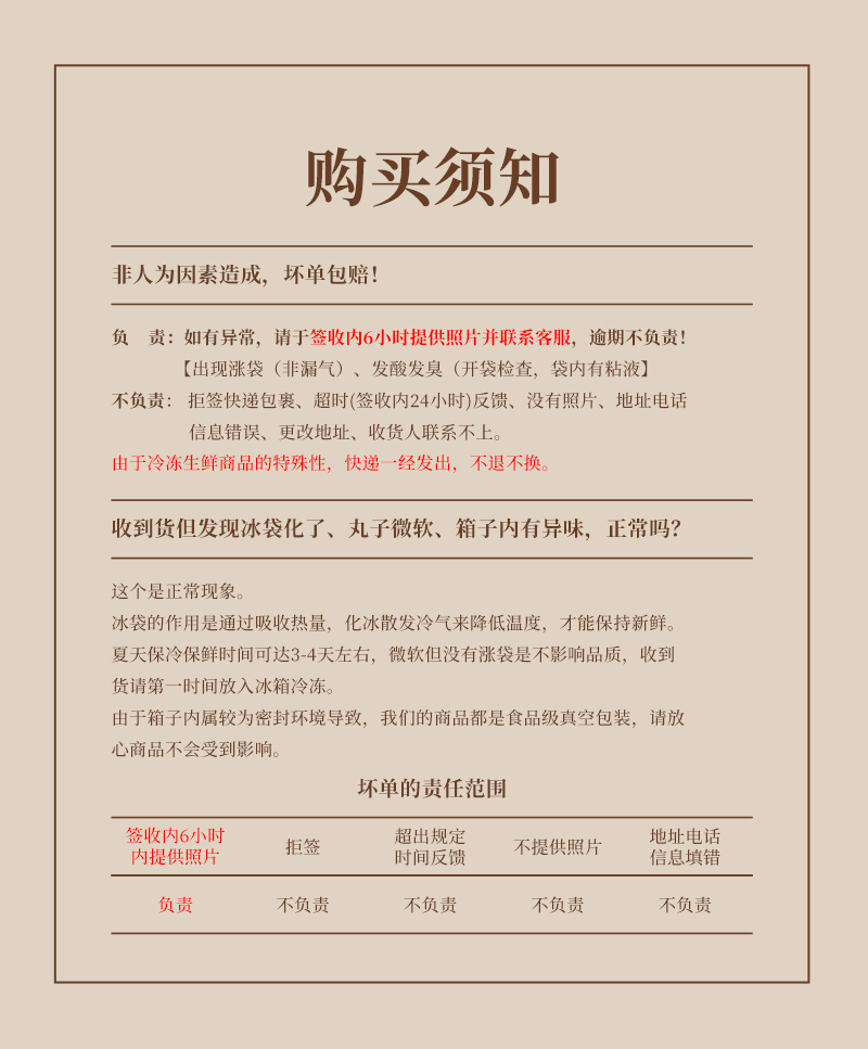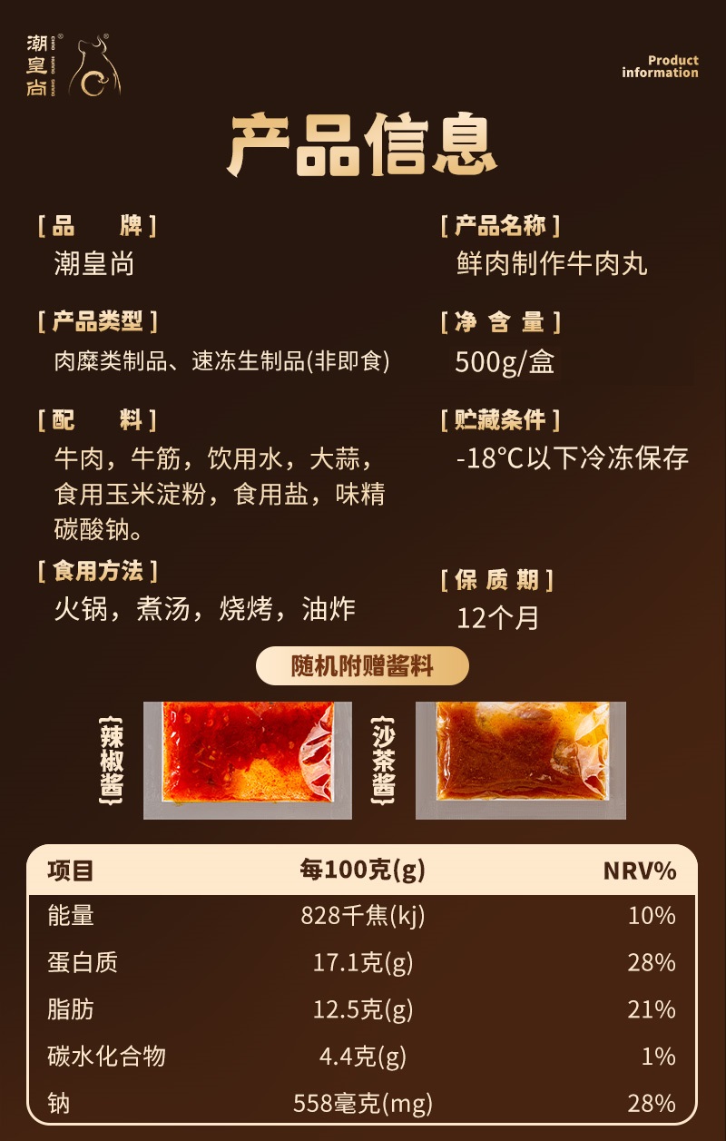 品名:鲜肉制作牛肉丸规格:500g*2盒(内袋250g*4袋) 注:赠送辣椒酱*2包,沙茶酱2包 包装方式:冰袋+保温袋+盒装+泡沫箱 快递:顺丰 运费模板:内蒙古、甘肃、宁夏、青海、吉林、黑龙江、 辽宁+15元;新疆、西藏+25元,港澳台不发货 发货时效:48-72h 发货地/产地:广东潮州 保质期:12个月,冷冻保存 生产日期:11月(随批次更新) 销售售卖期:长期 周六周天、节假日除外,早上十点之前的订单是48小时发货 ,到货时间约为2-5天,请您耐心等待 |